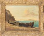 Léon-Rodolphe BERTHOUD (1822-1892), "Paysage italien de bord de mer"