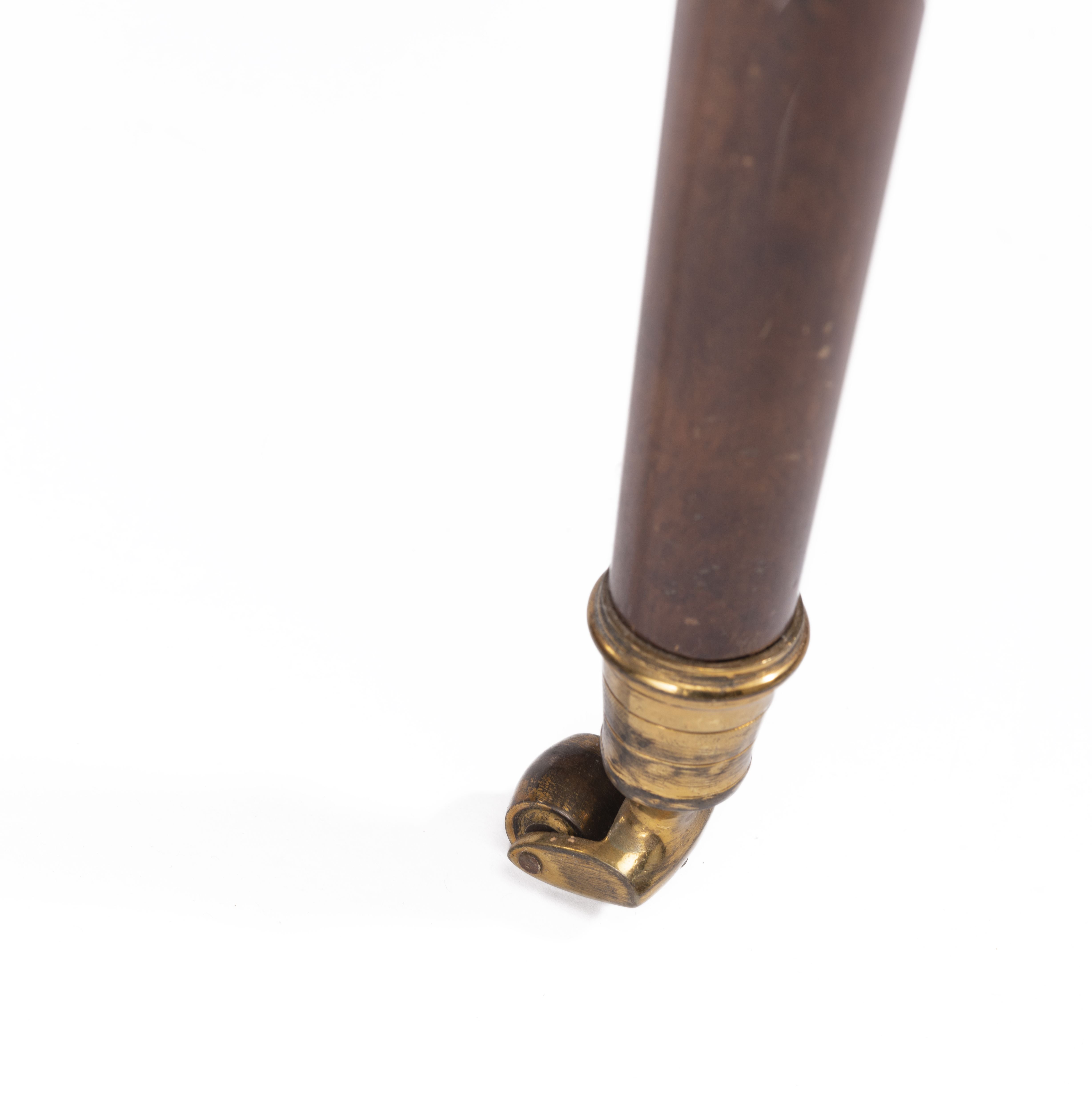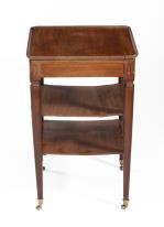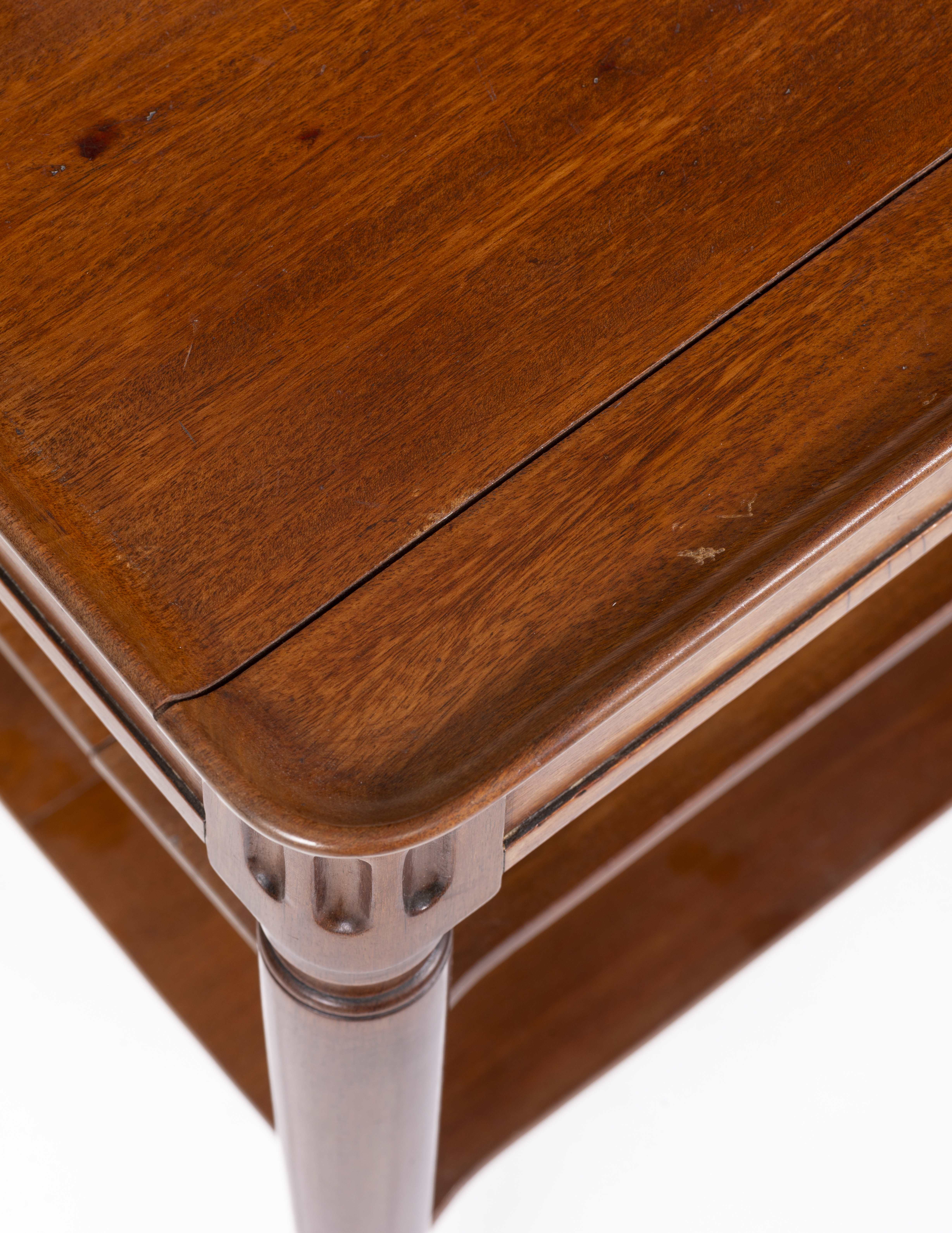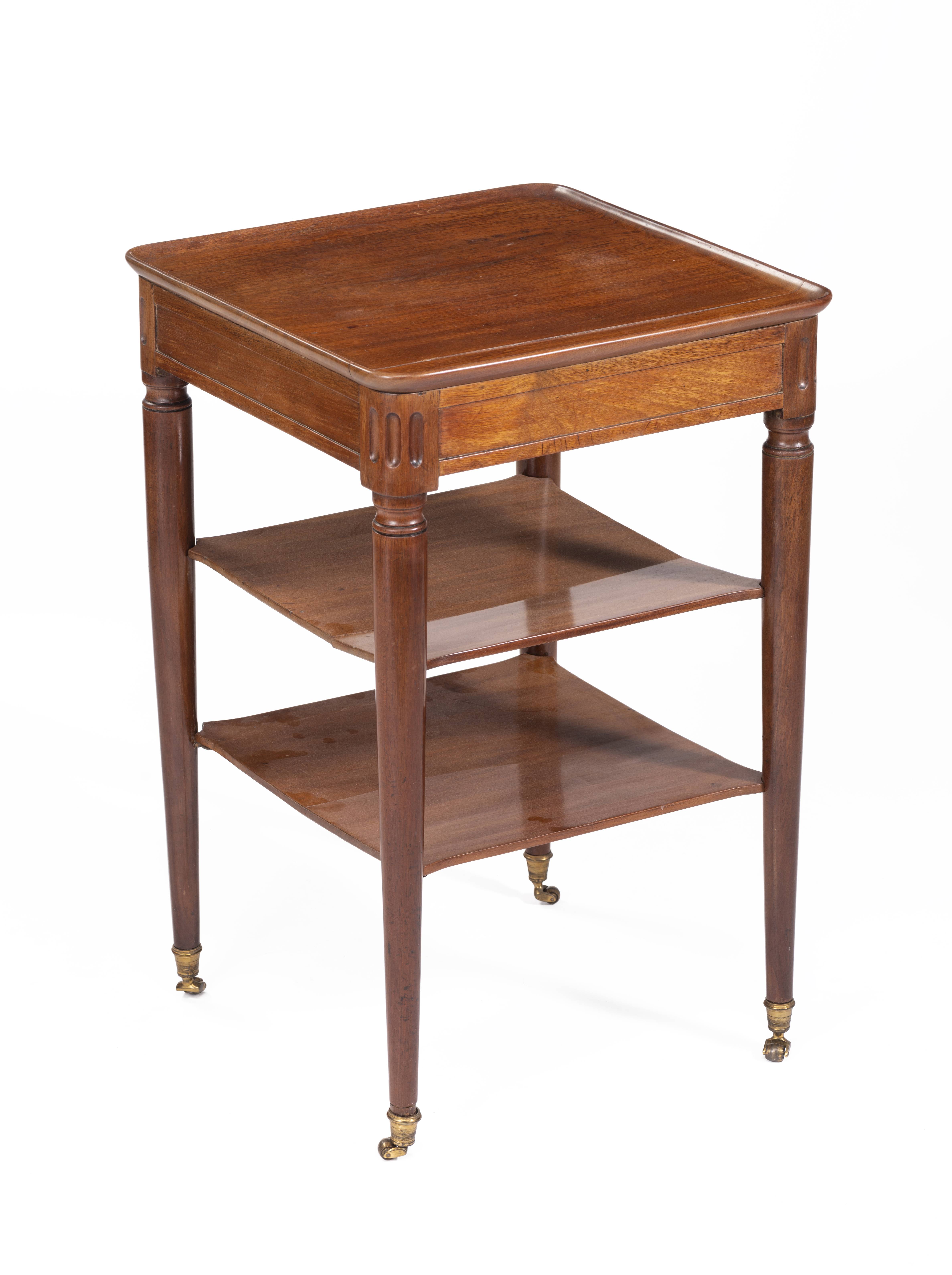 Petit meuble volant en acajou de Cuba massif sur roulettes en laiton, coiffé d'un épais plateau à cuvette creusée. Epoque Directoire.