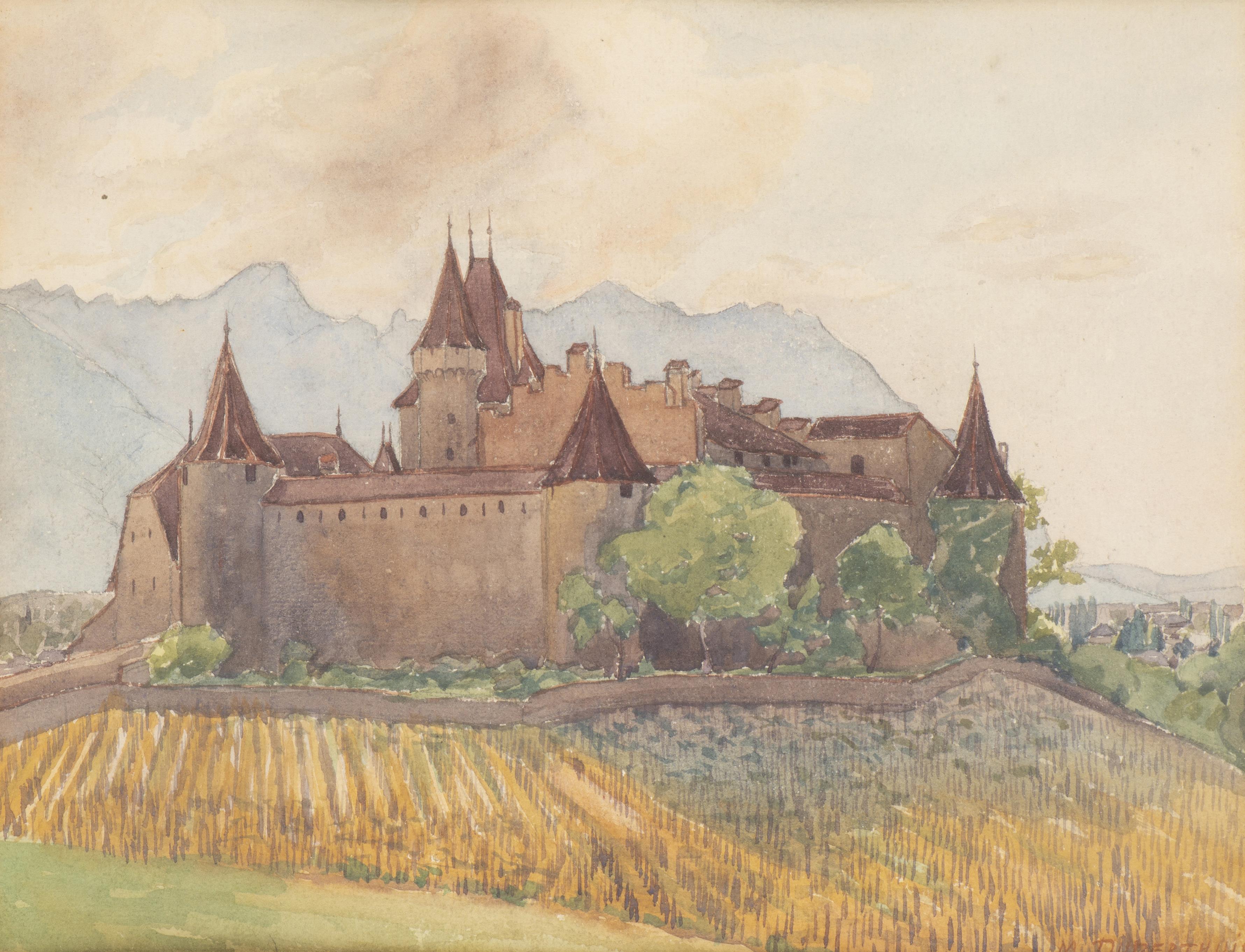 - "Château d'Aigle" aquarelle sur papier sbd M Duperthuis en rouge