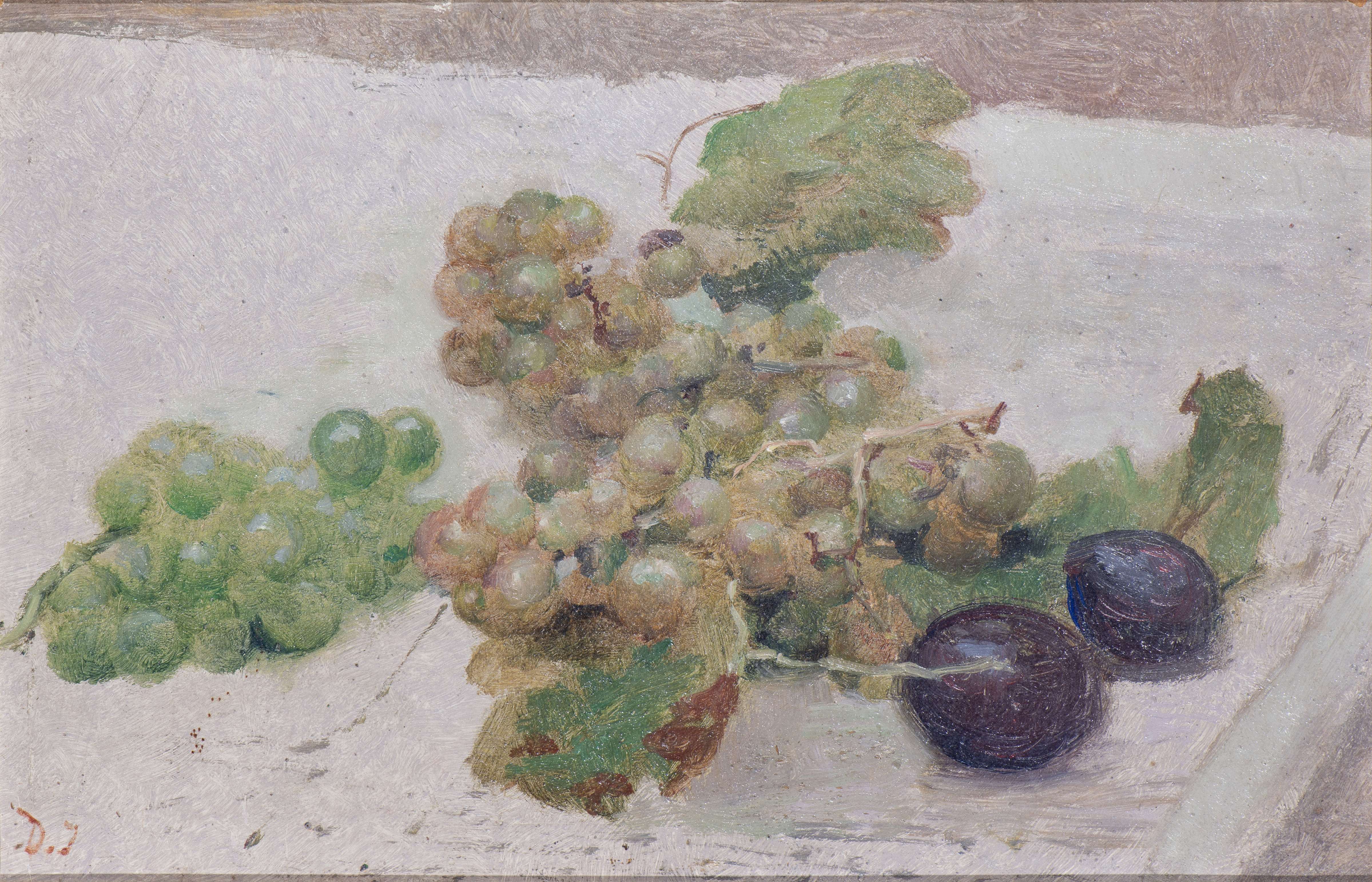 Anonyme,"Nature morte aux raisins et prunes", XXe