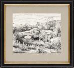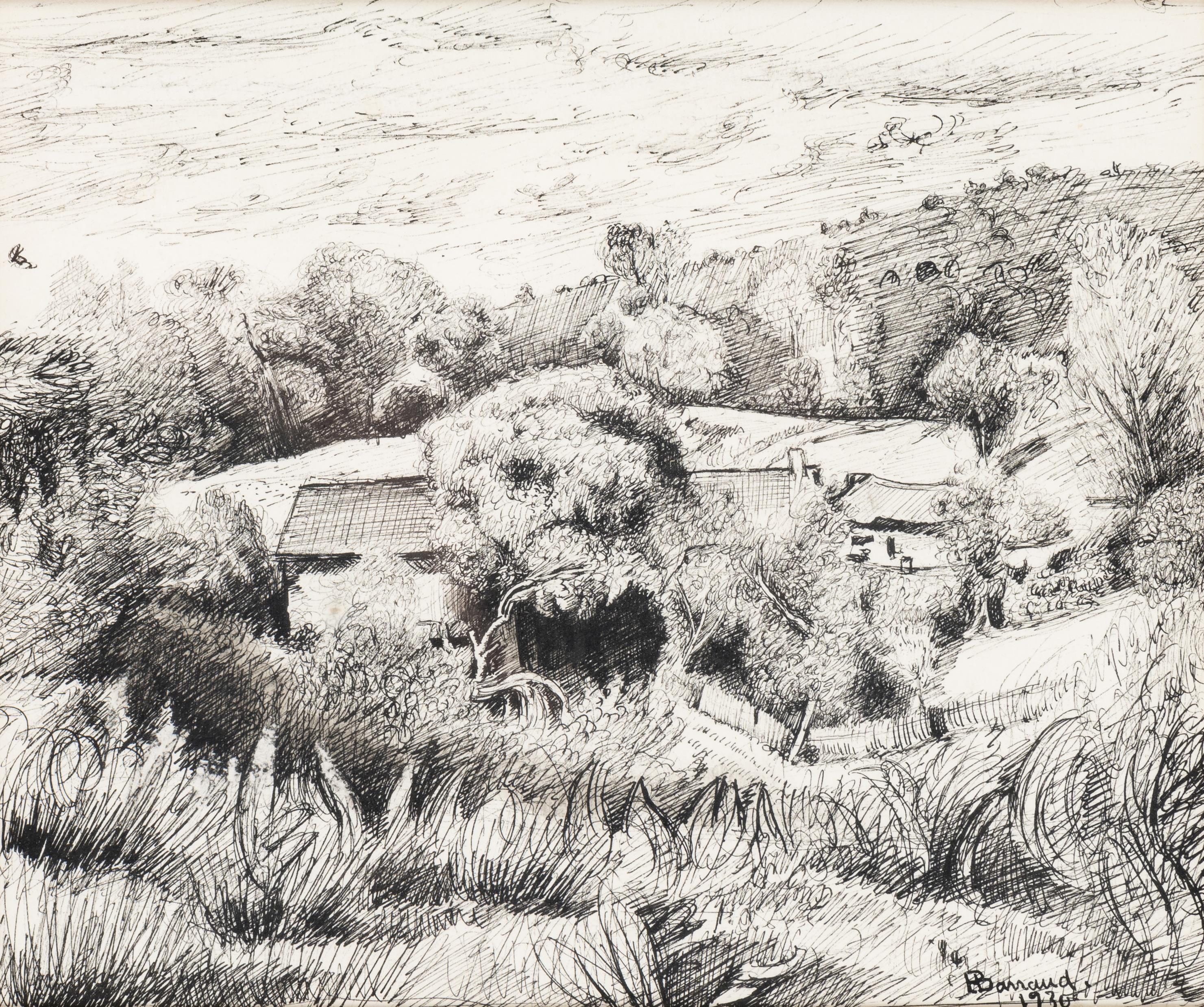 François Emile BARRAUD (1899-1934) "Paysage de Provence", dessin à la plume sur papier sbd et daté 1930.
