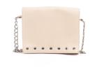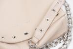 LONGCHAMP Paris, sac Rock en cuir beige orné d'œillets sur le rabat, à bandoulière en chaîne et fermeture à bouton aimanté.