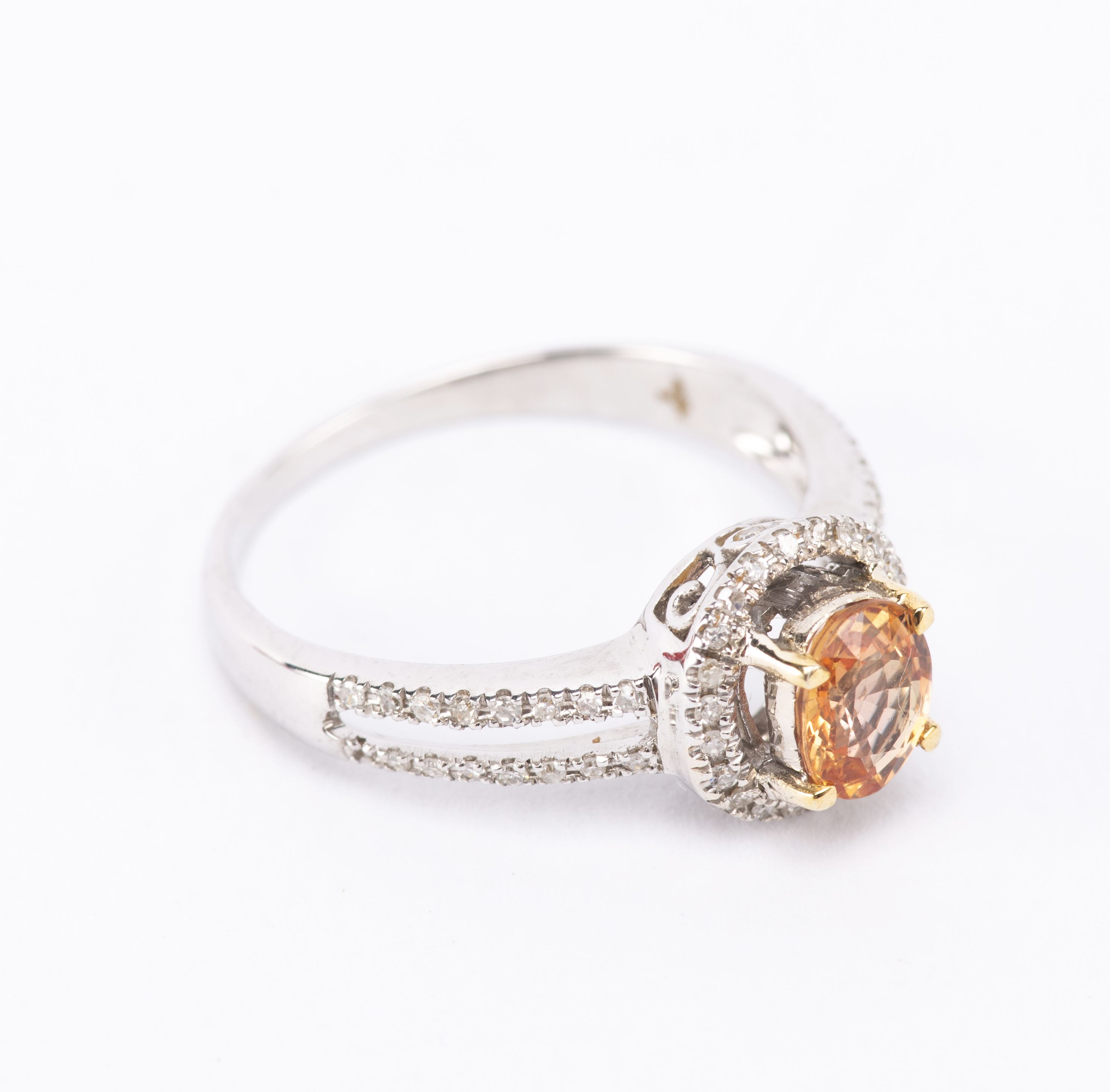 *Bague en or blanc .375 avec au centre un saphir jaune serti à griffes et un entourage de diamants pour un total de 0.2 ct.