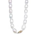 Collier de perles d'eau douce de forme olive (ovale, egg shaped pearl) avec fermoir en or .585.