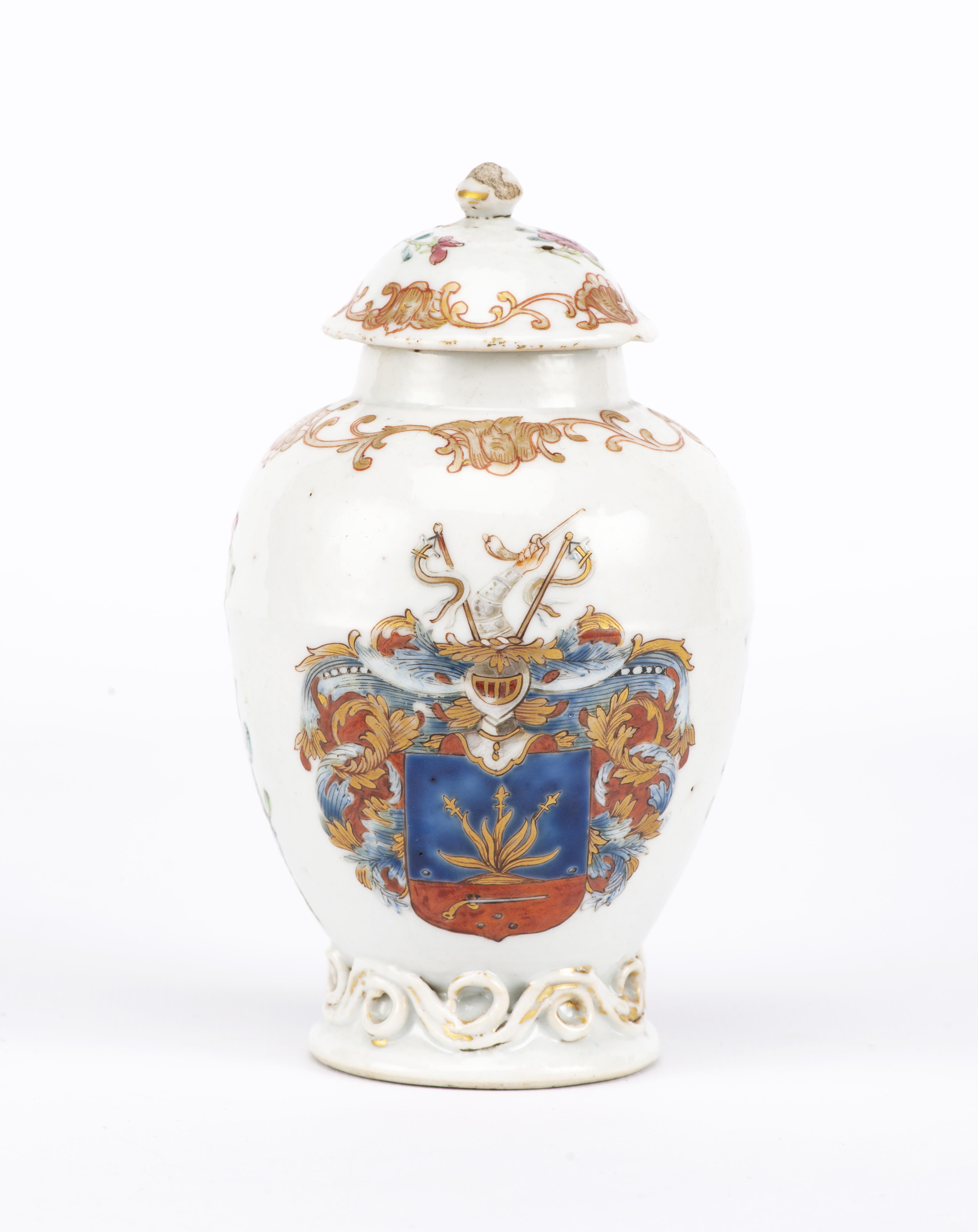 Flacon à thé en porcelaine de Chine de la Compagnie des Indes d'époque Qianlong avec armoiries.