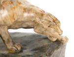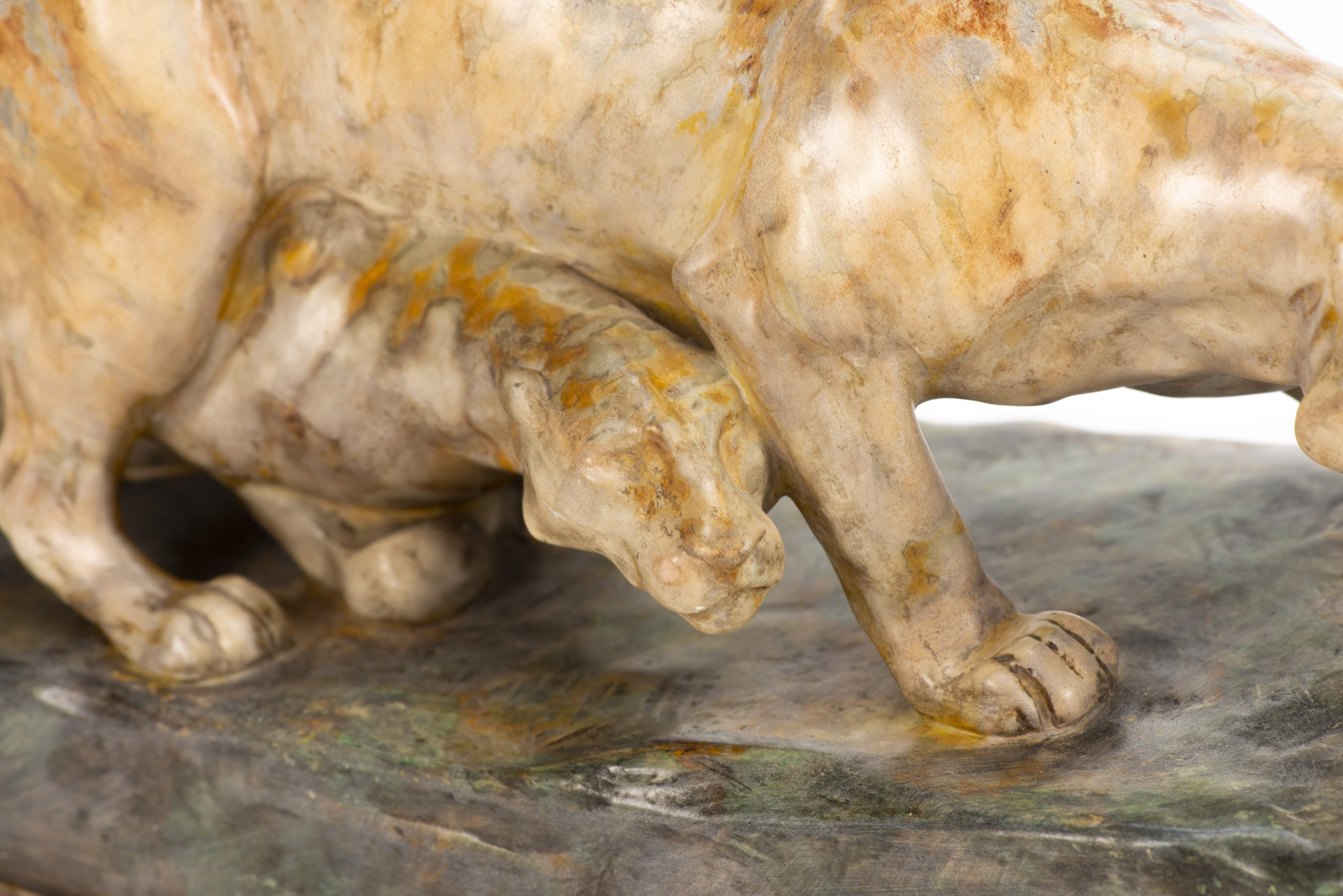 Friedrich GOLDSCHEIDER (1845-1897) "Deux pumas" barbotine signée sur la base Gernignani et inscrit en creux sur le socle Friedrich GOLDSCHEIDER WIEN reproduction réservée n° 8855 /4/ 69.