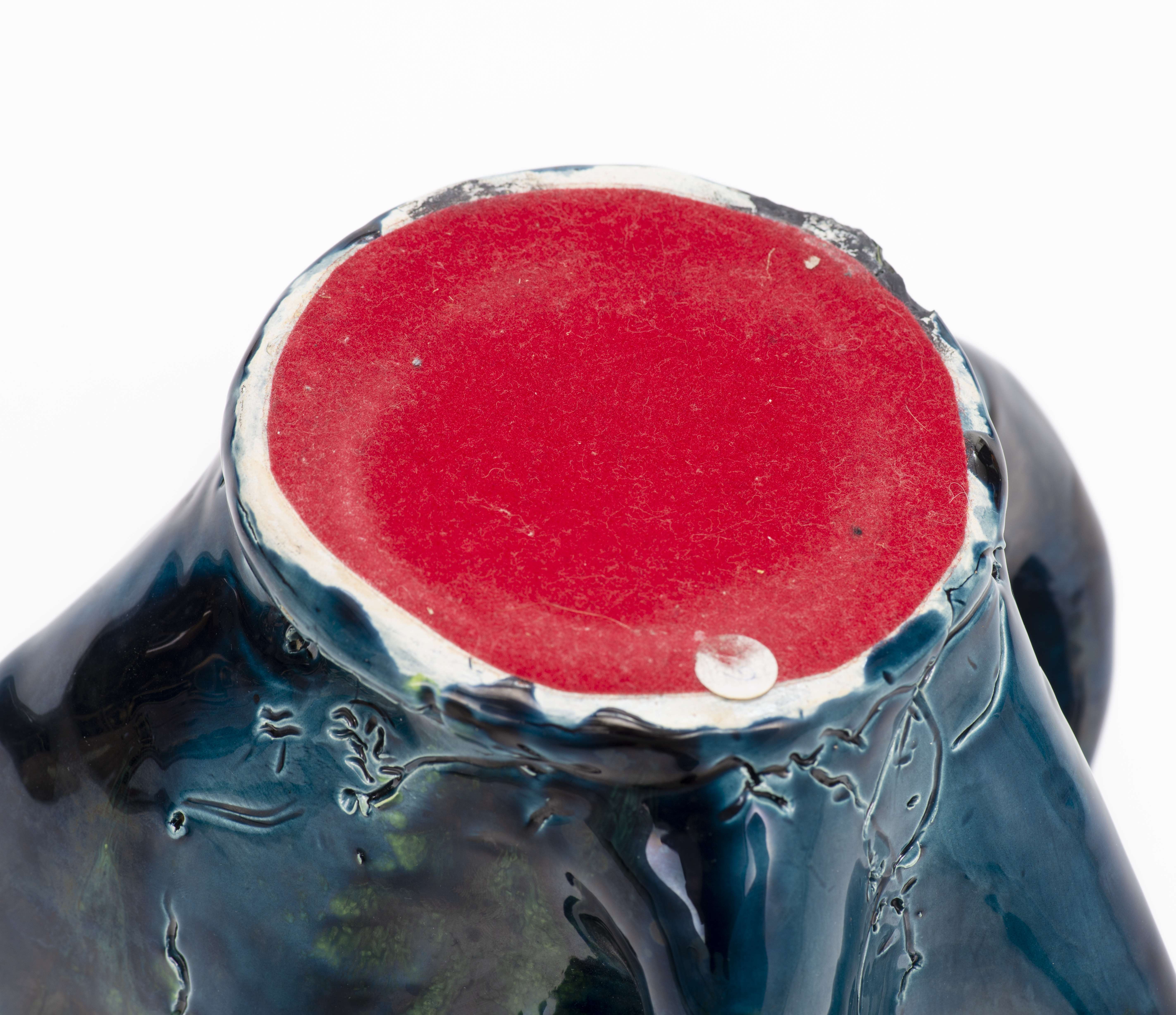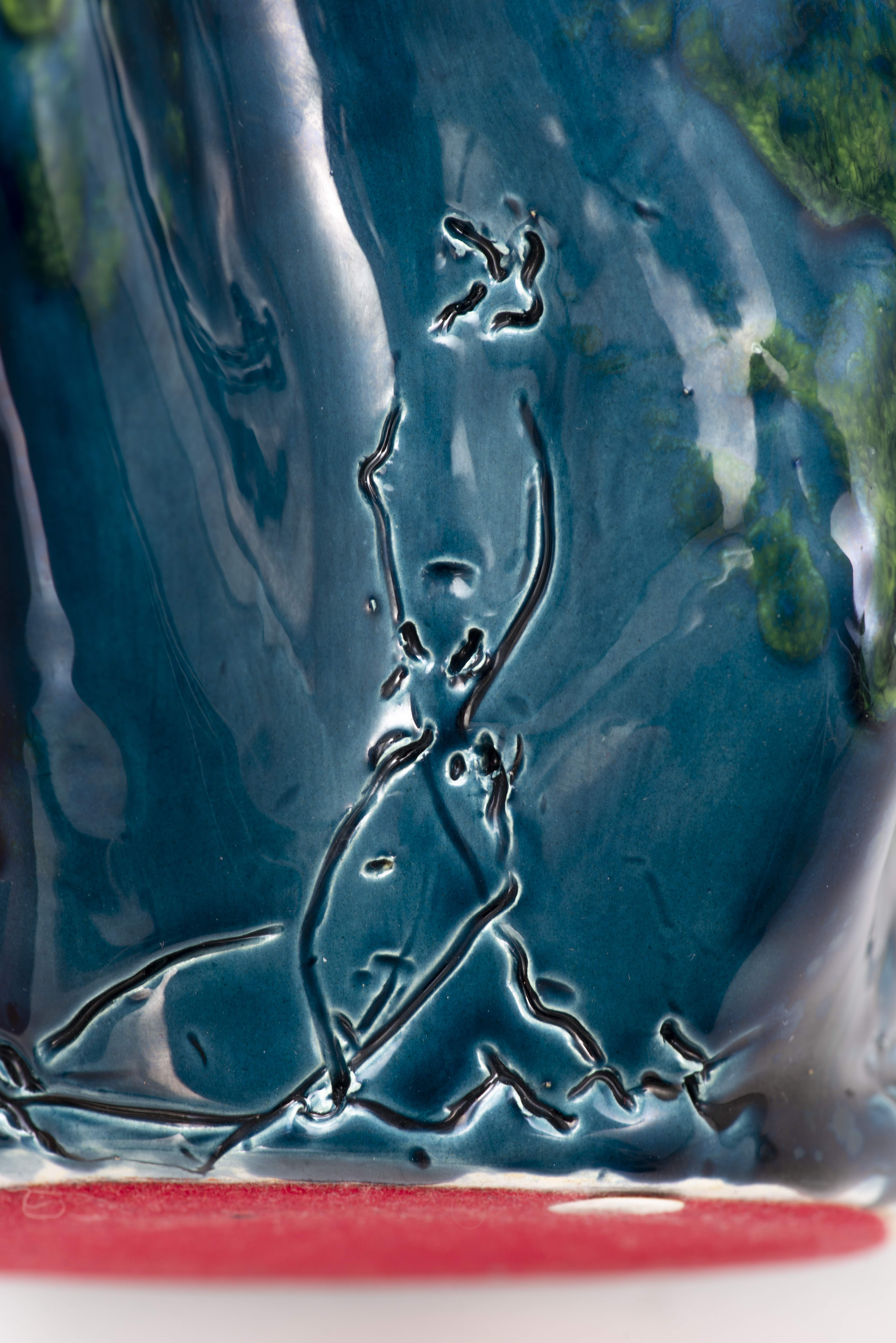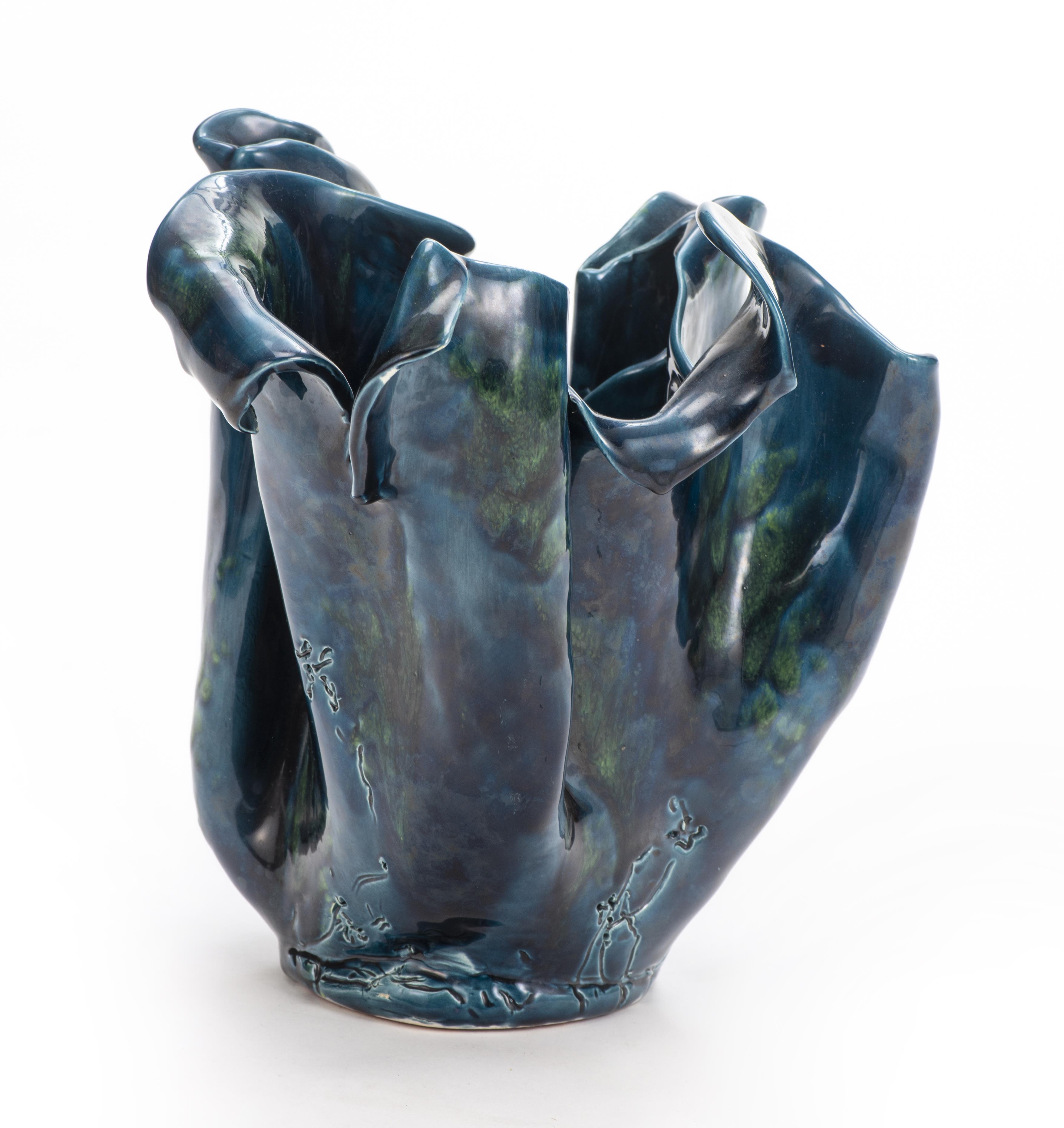 Françoise Emery XXe "Vase cornet" en faïence à glaçure bleu et vert océan.