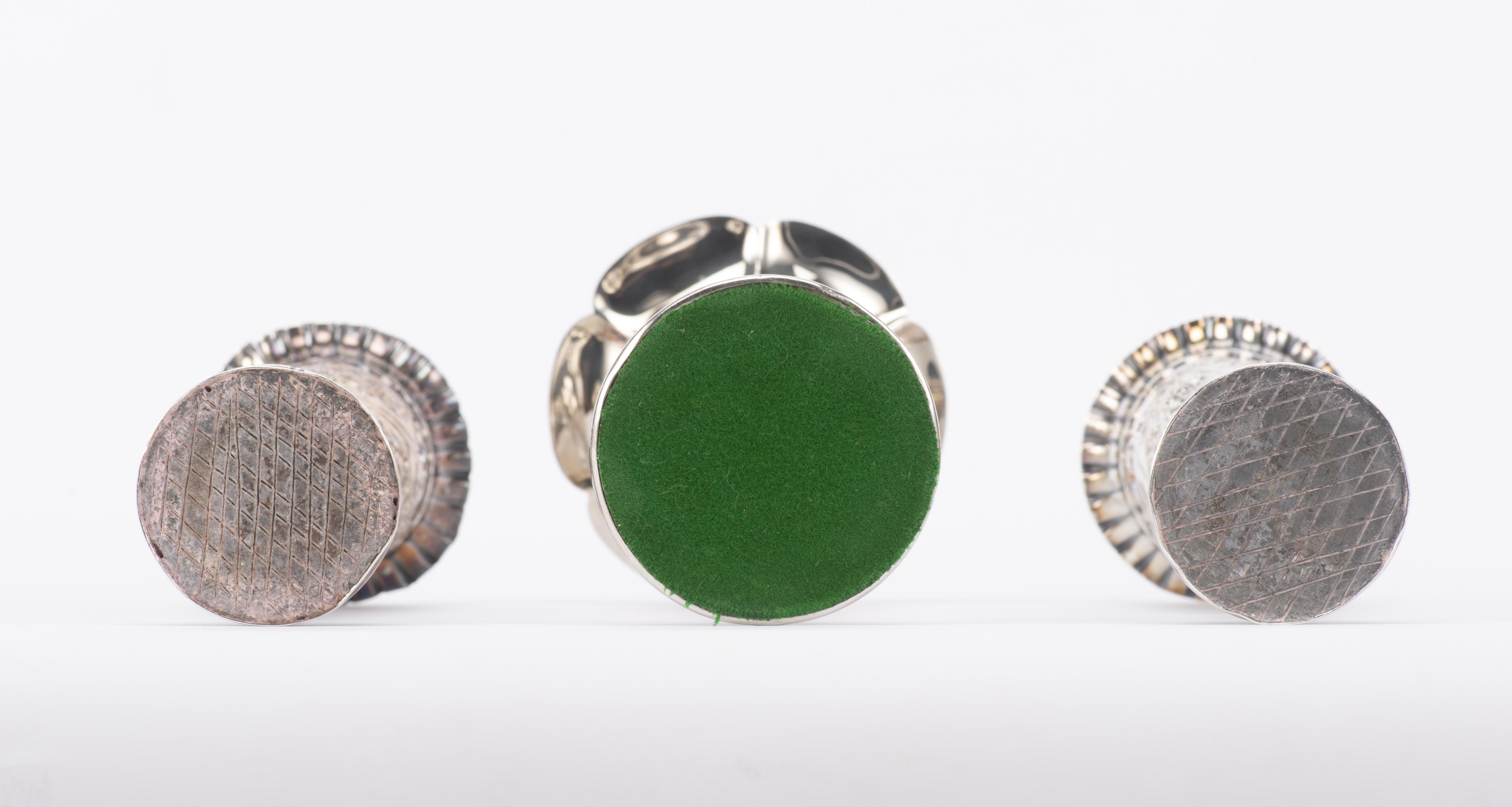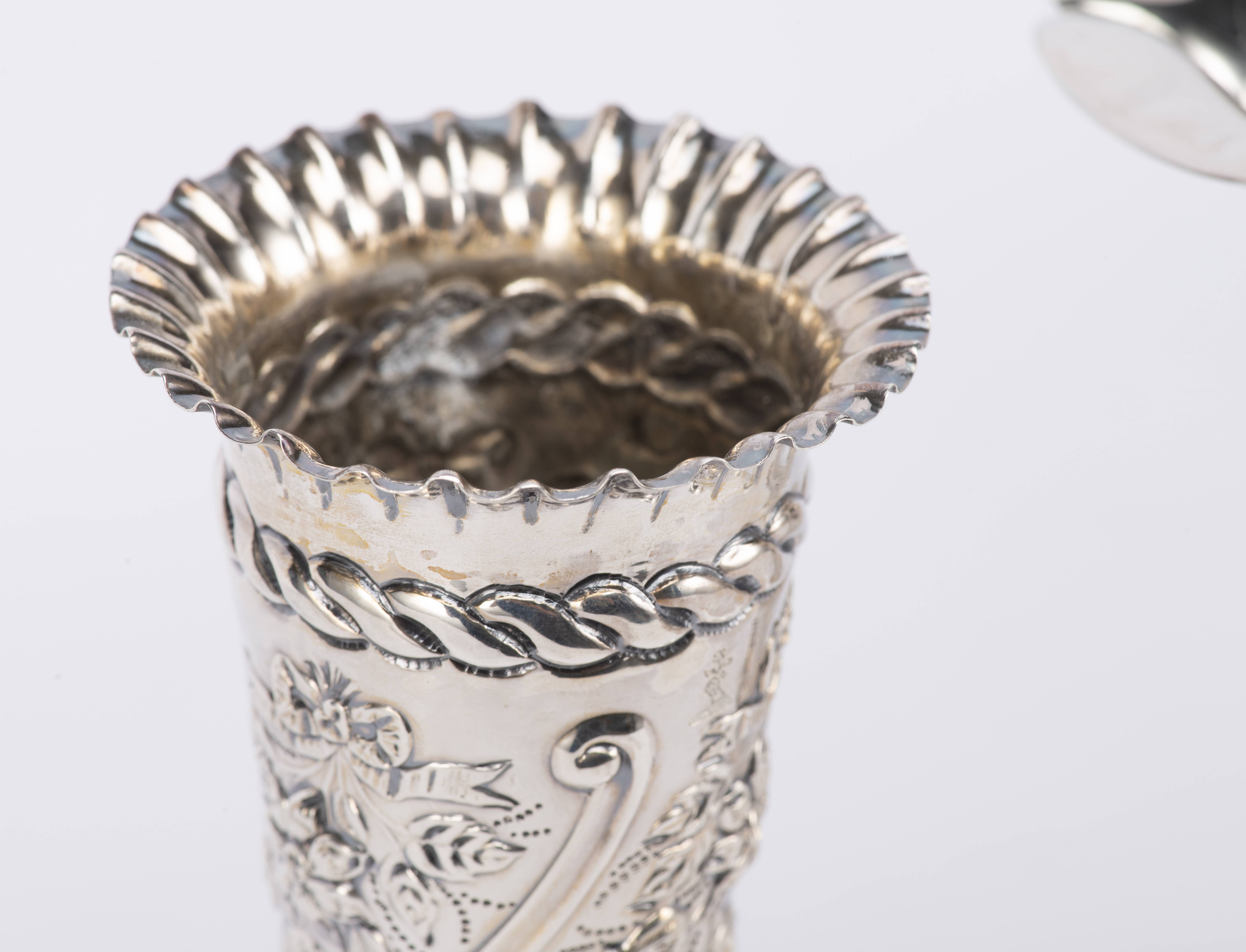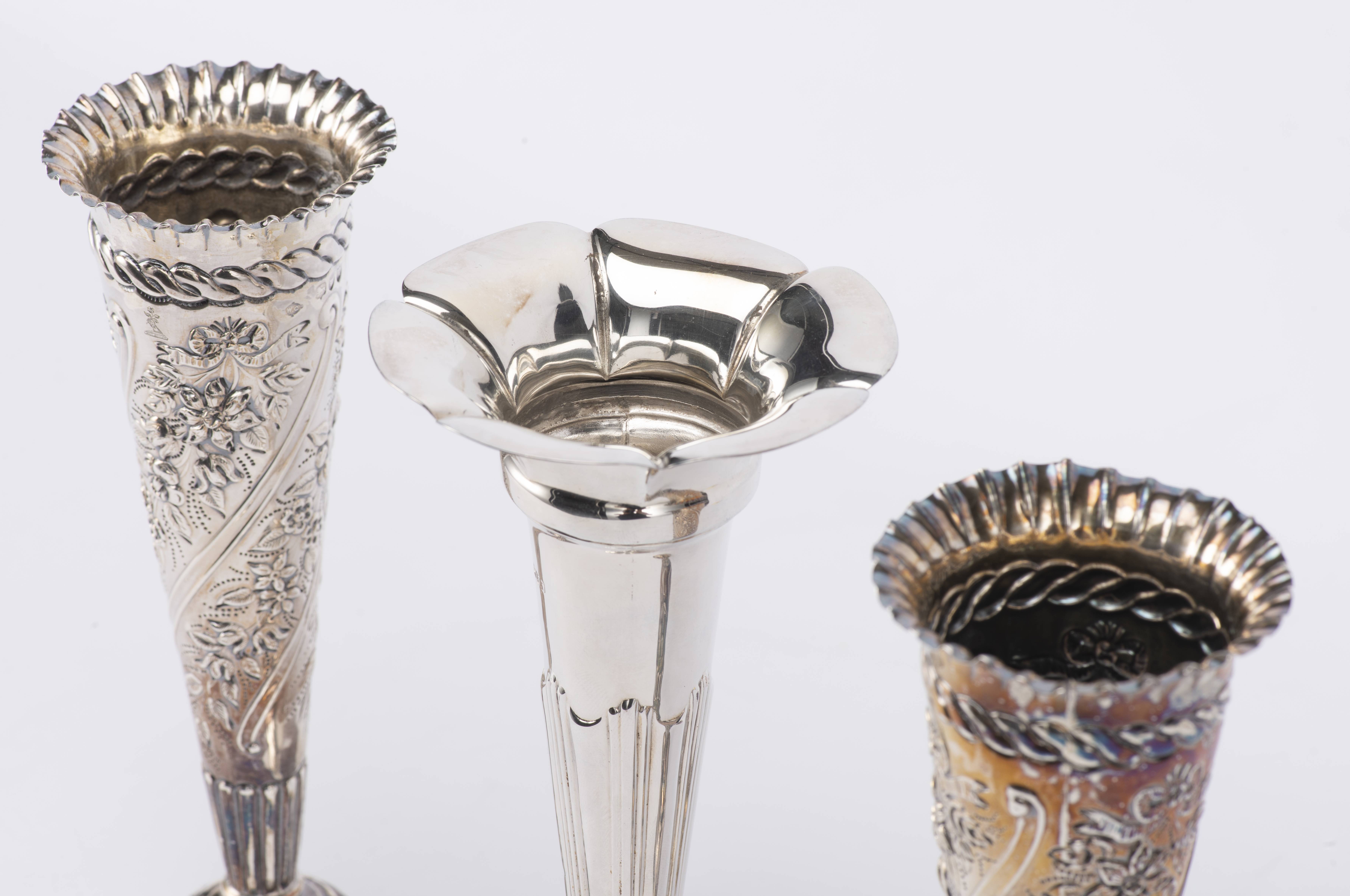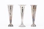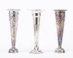 - un troisième vase de forme cornet à lèvre polylobée sur piédouche en argent .925 sterling de Chester par WN également lesté.