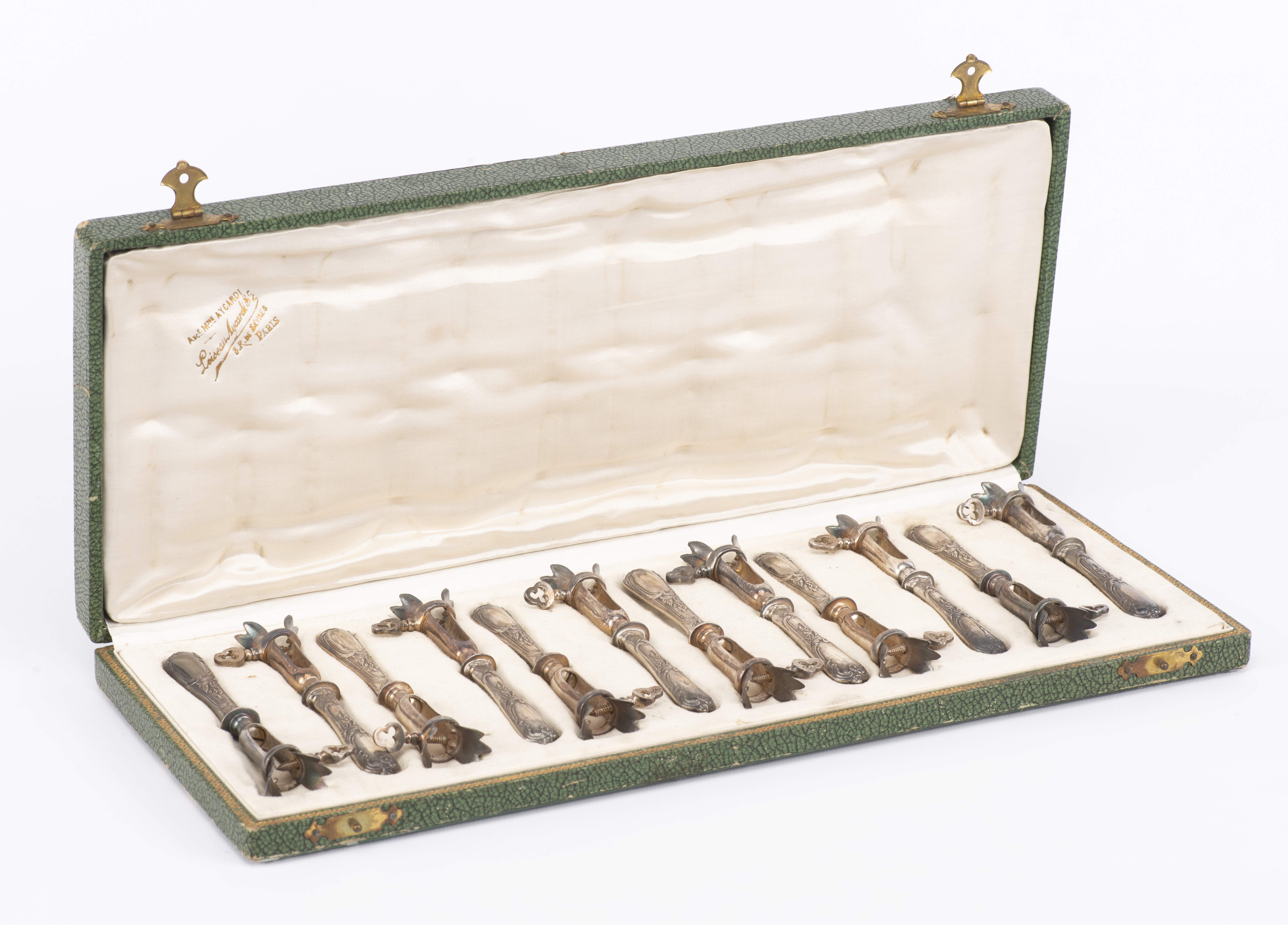 Douze manches à gigot en argent, dans leur boîte