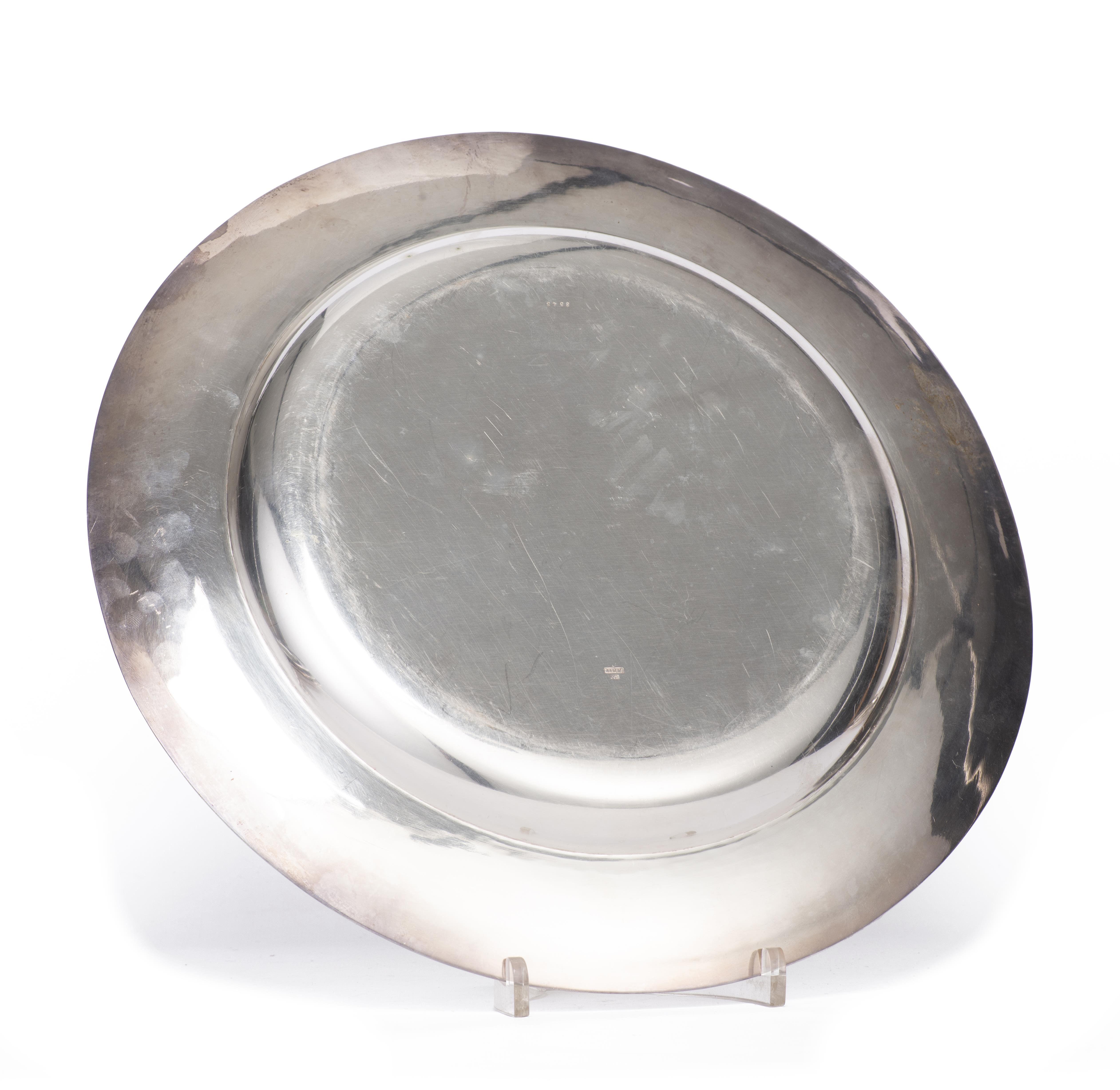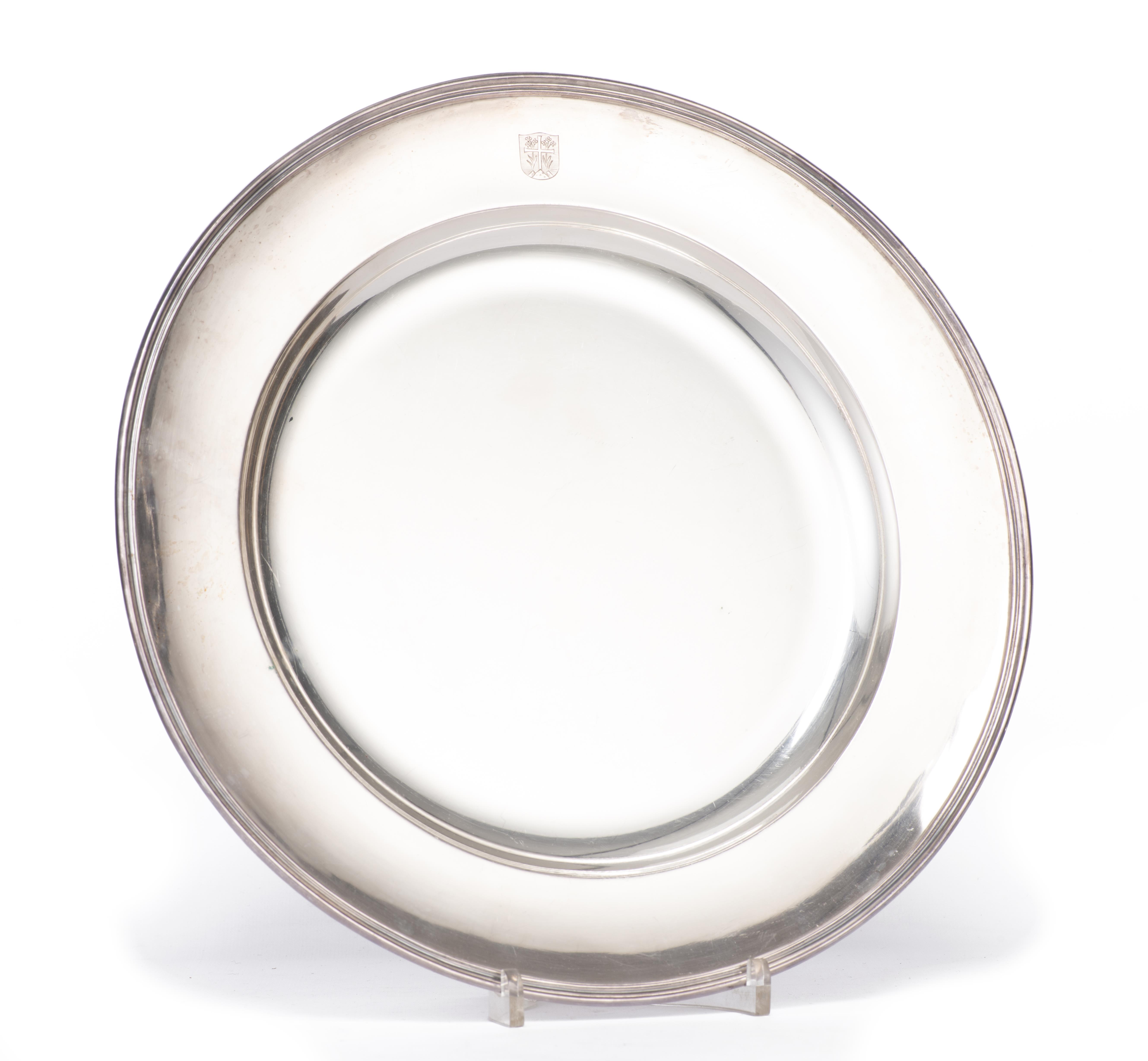 Plateau en argent .800 Jezler n°8545 de forme ronde aux armoiries de Luthy ou Foetisch ou Millasson ou Amiguet