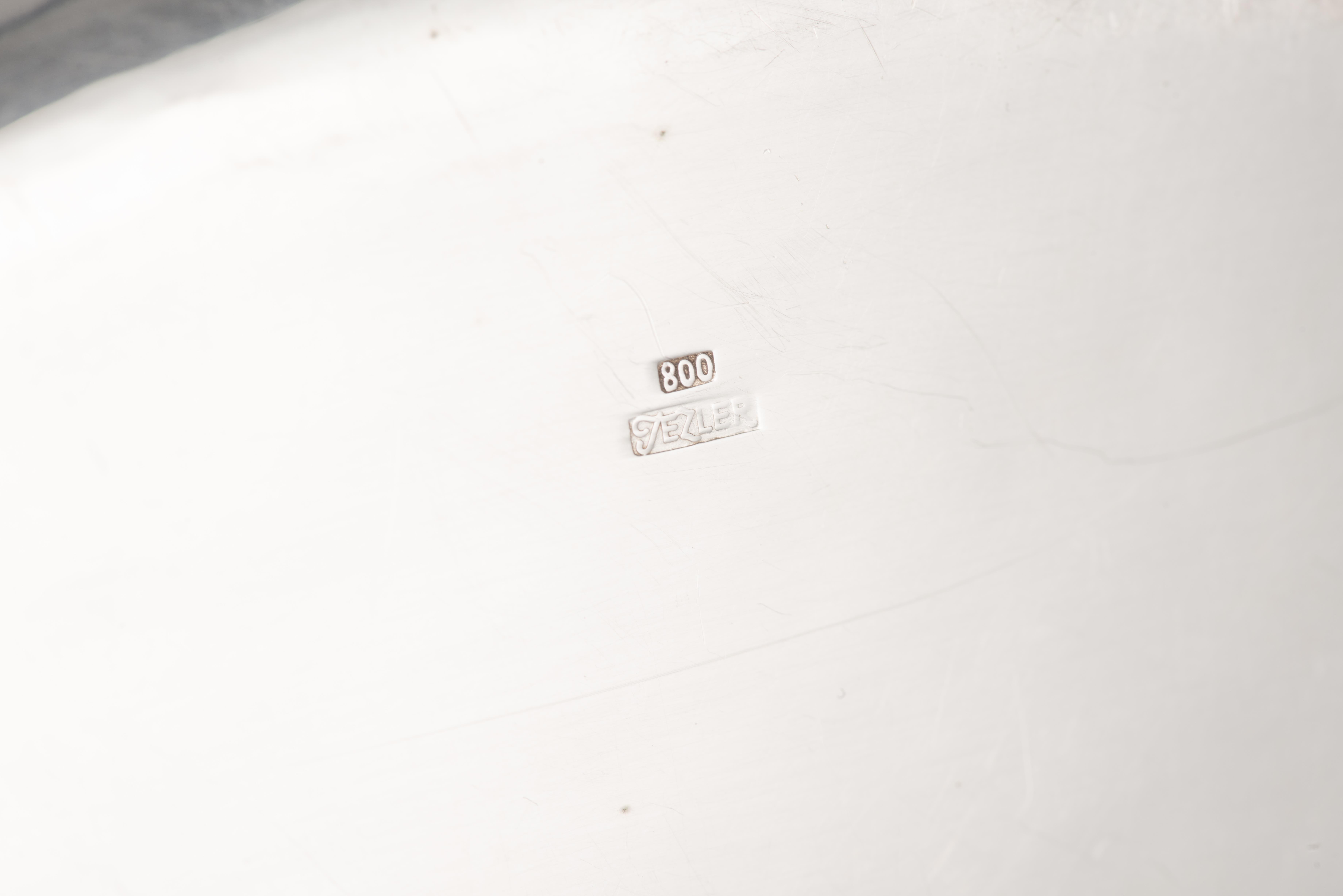 Plateau en argent .800 Jezler n° 8553 de forme ovale aux armoiries de Luthy ou Foetisch ou Millasson ou Amiguet