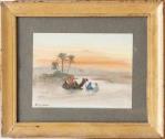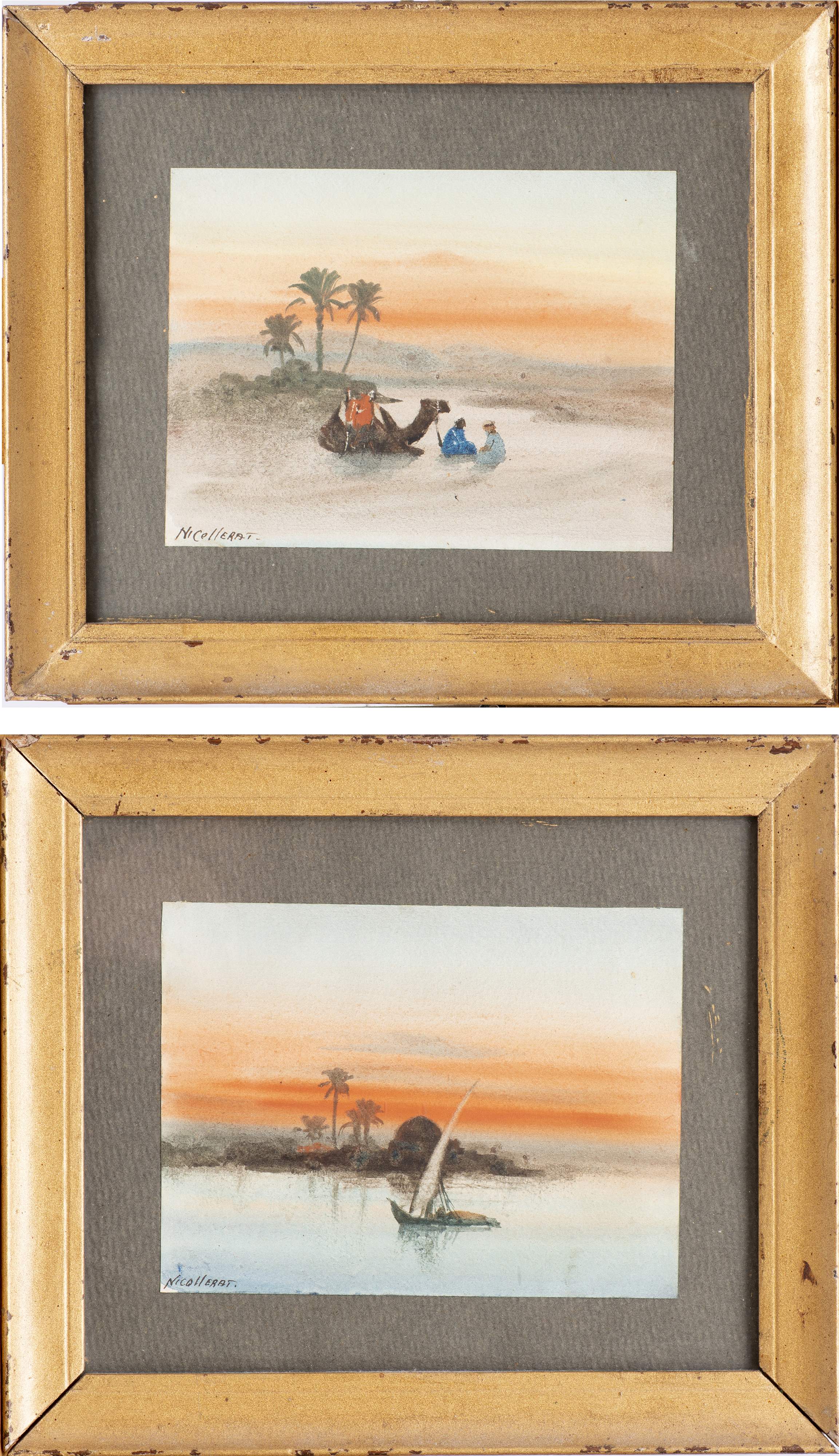 Aimé-Félix NICOLLERAT (1876-1946) "Bédouins devant des palmiers" et "Bateau sur le Nil", aquarelles