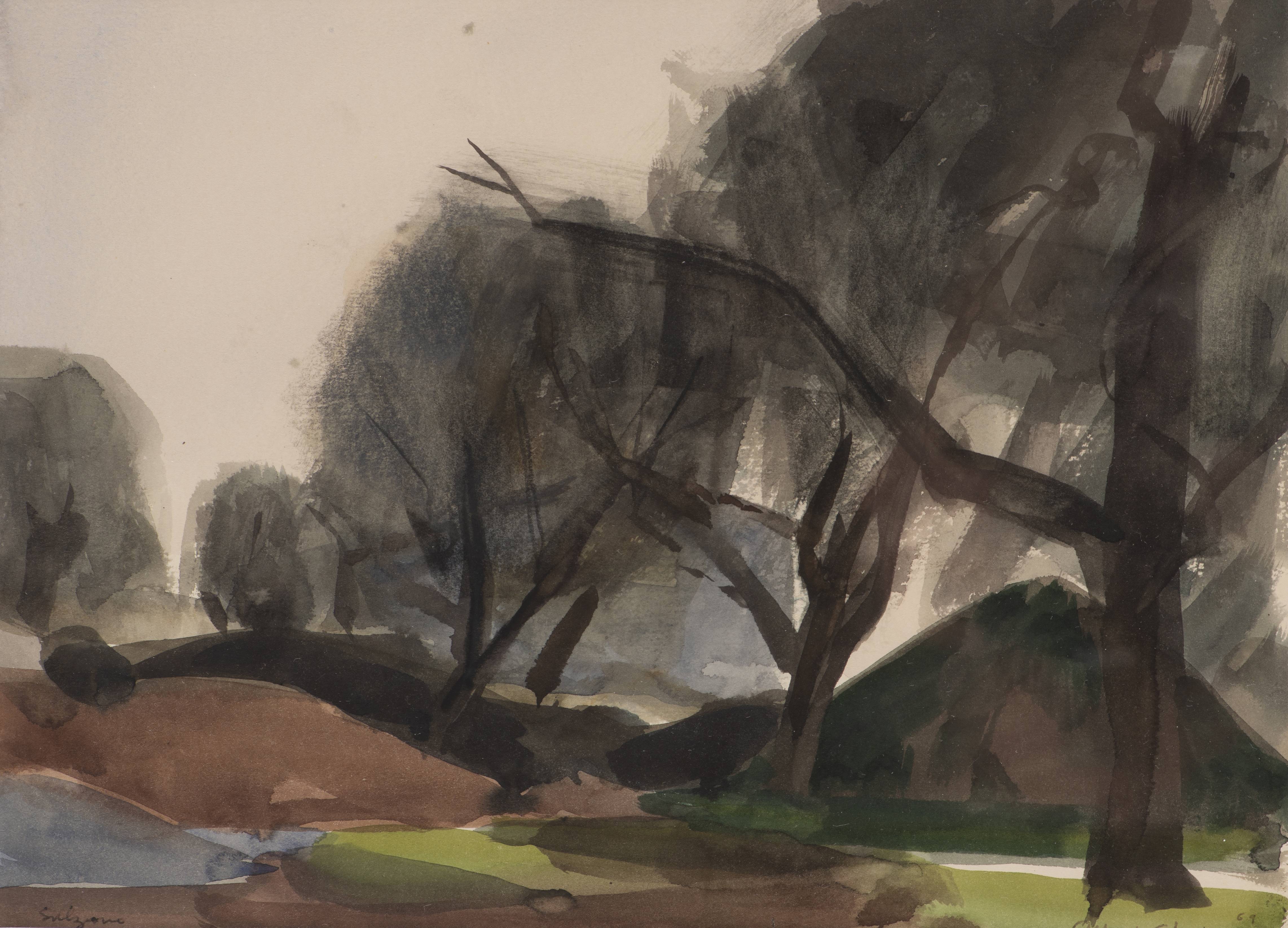 Albert CHAVAZ (1907-1990) "Paysage vert", aquarelle sur papier, sbd, daté 1969 et localisé bg.