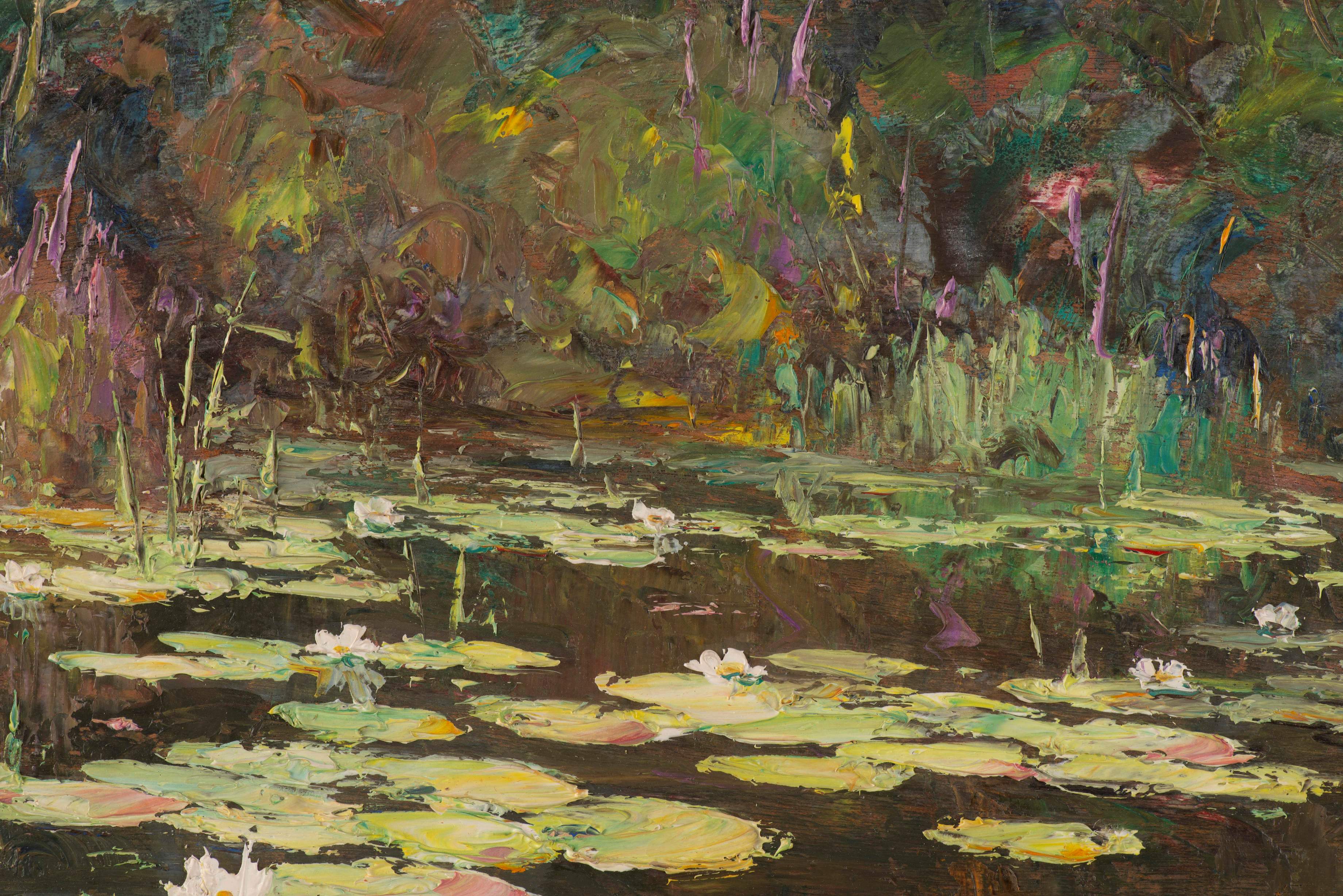 - "Nénuphars à l'Etang du Léon (Landes)", signé en bas à gauche (27x34.6 cm)