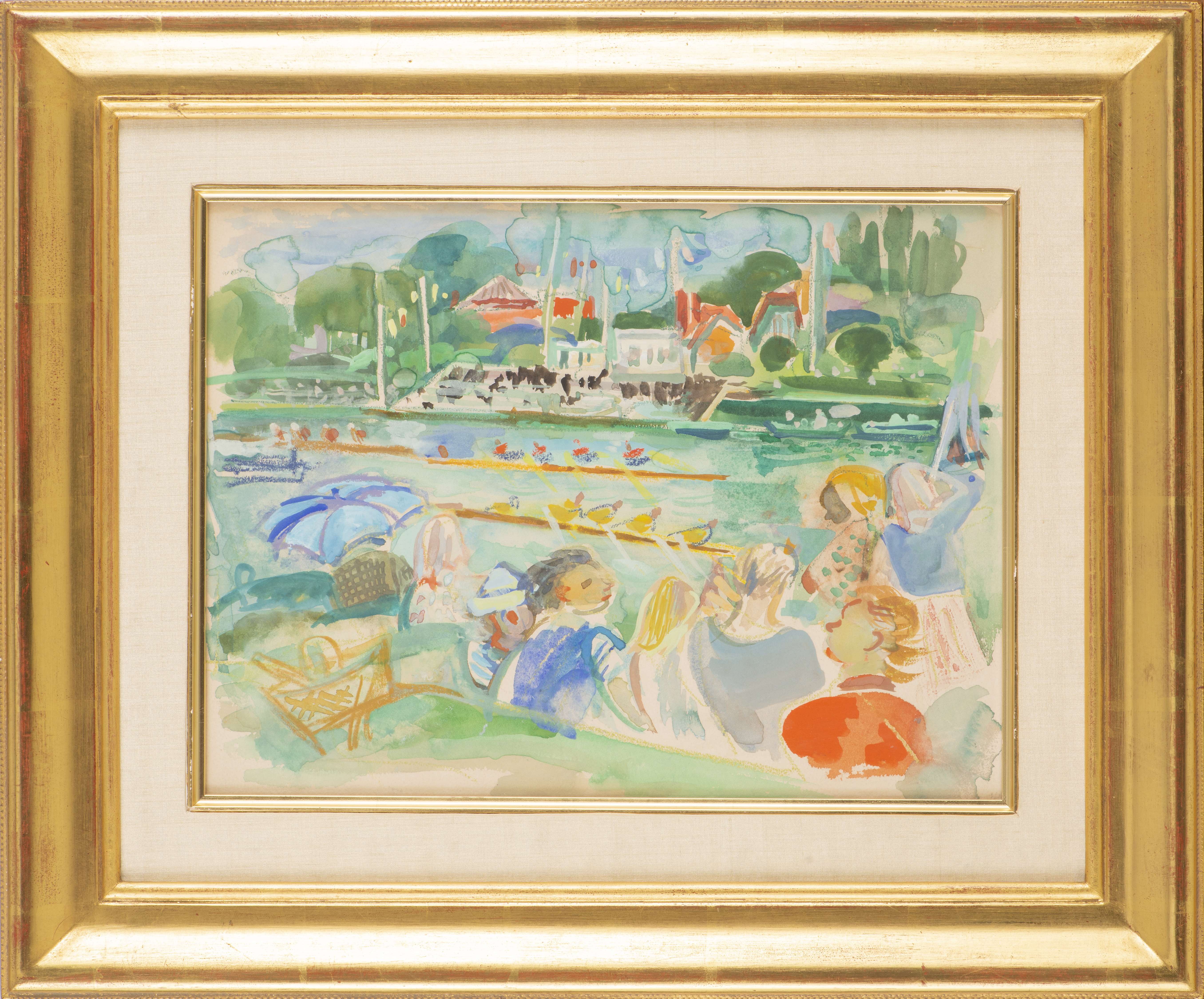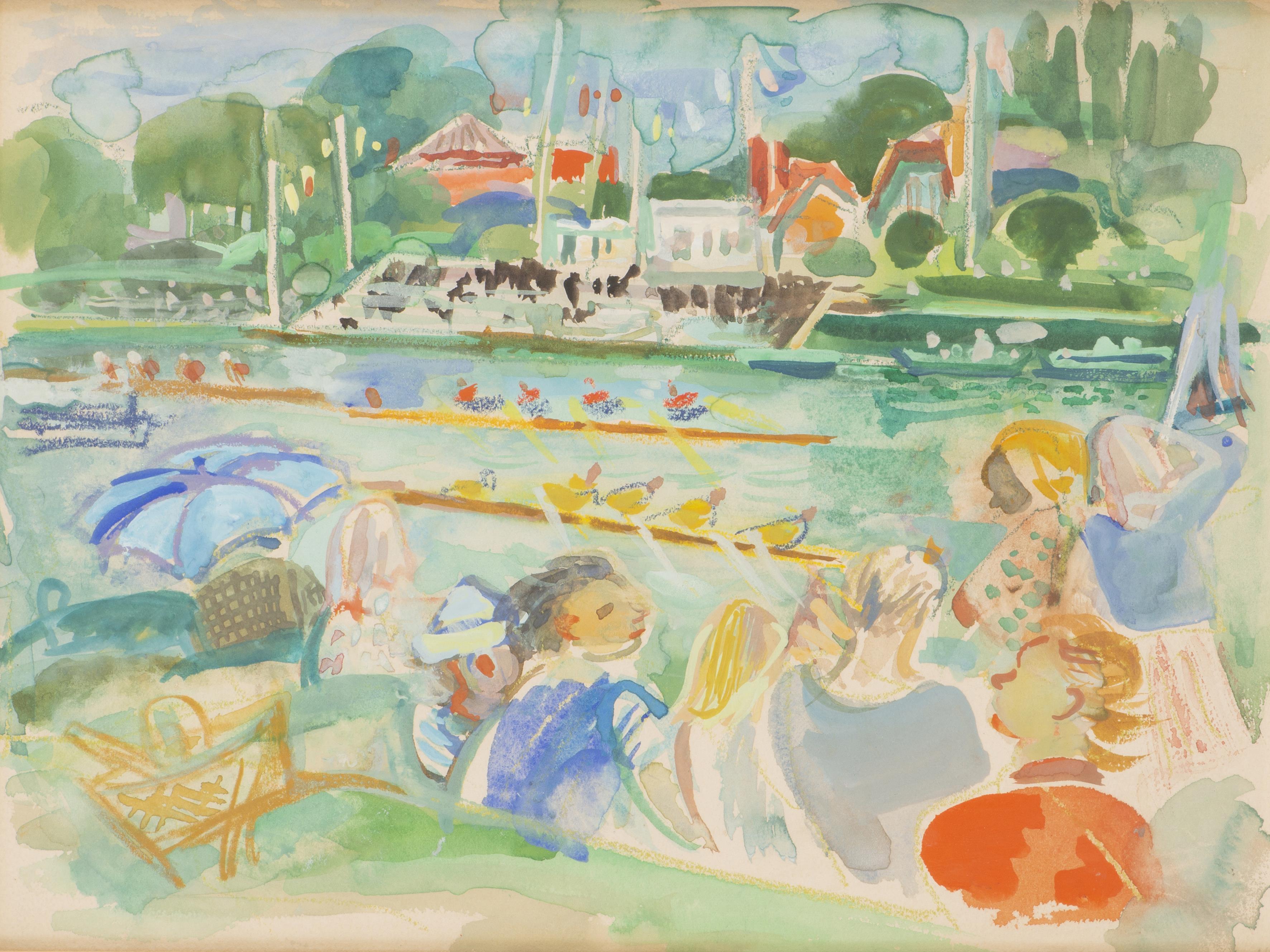 André PLANSON (1898-1981) "Course d'avirons", aquarelle sur papier, trace de signature en bas à droite au crayon.
