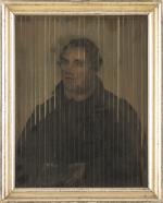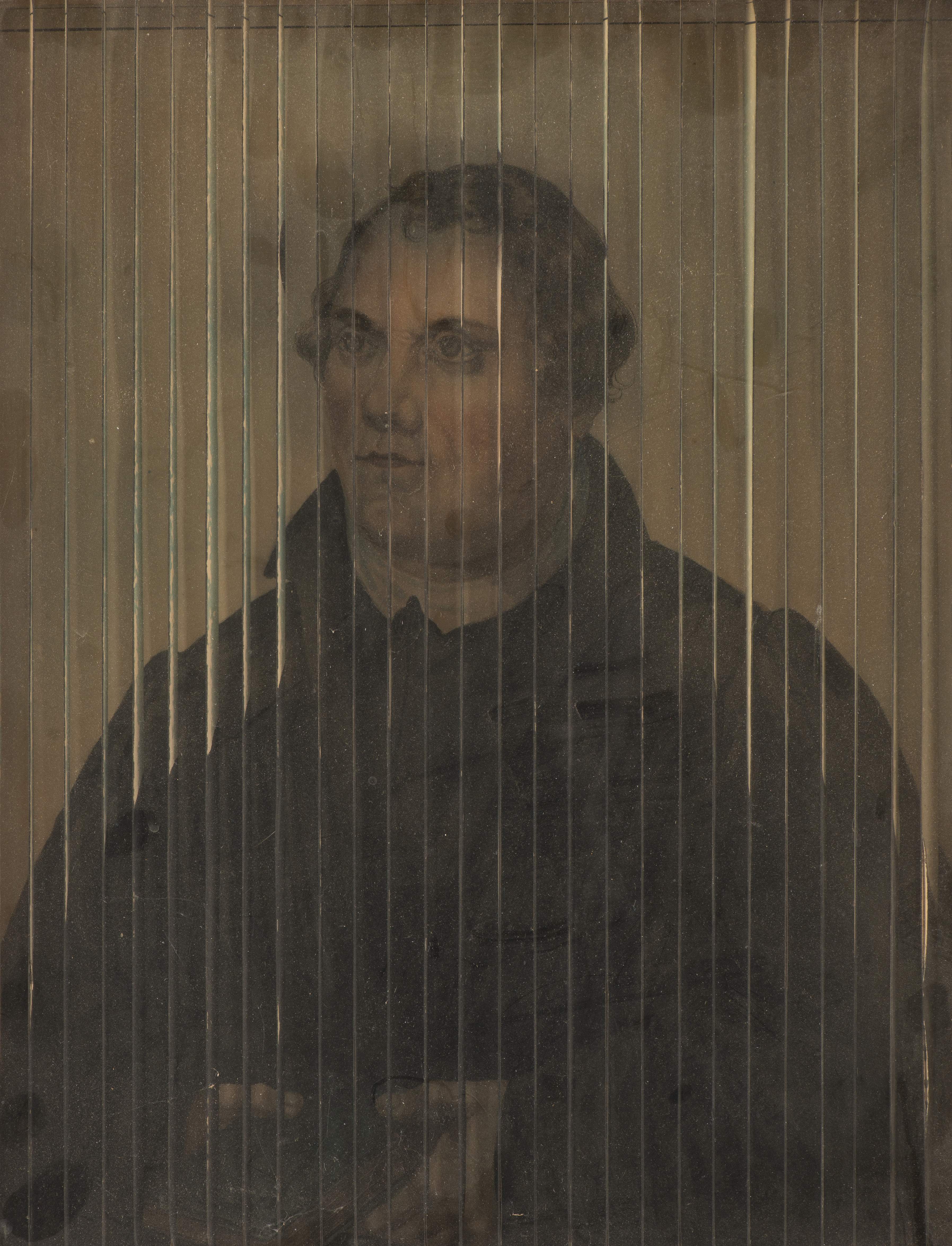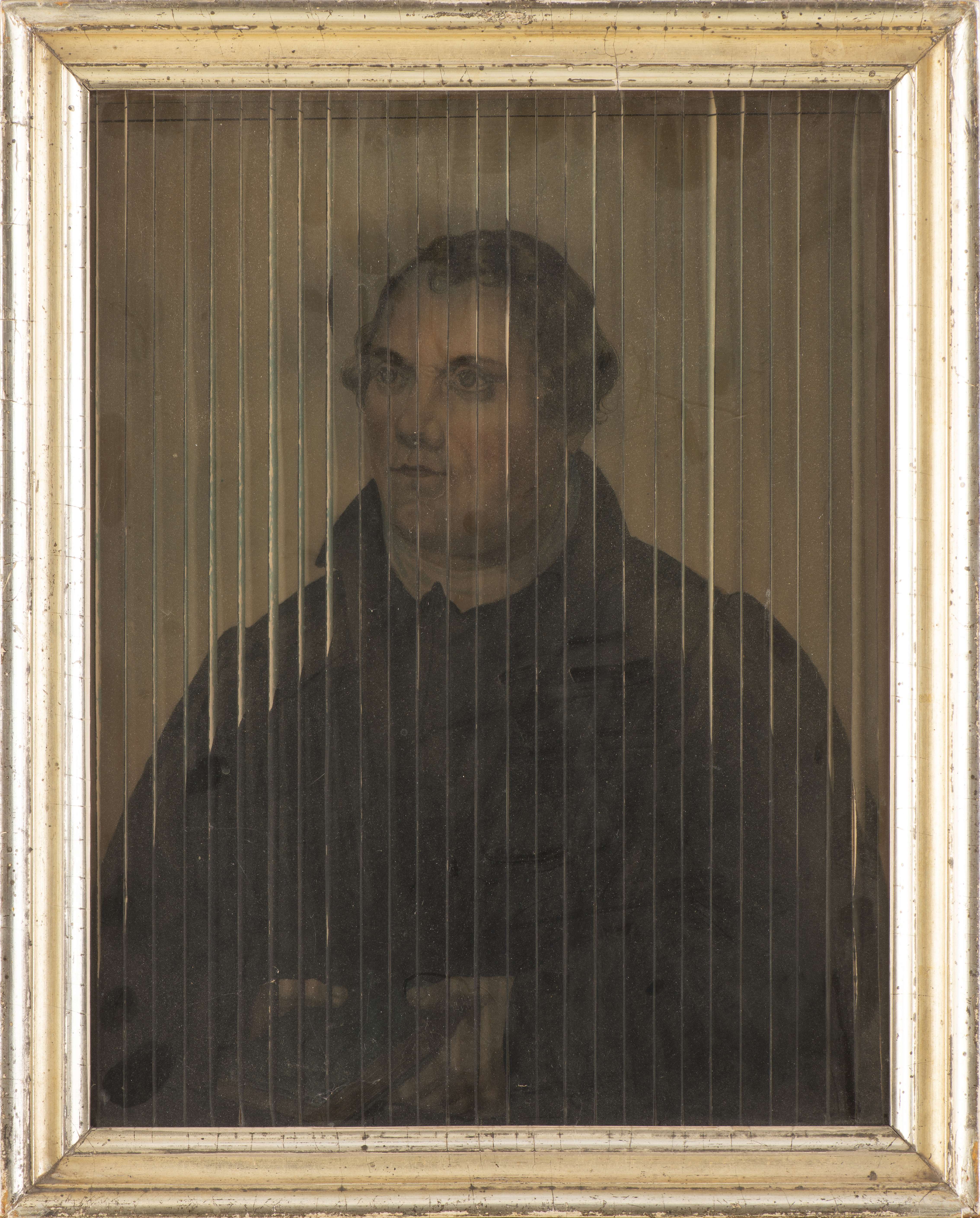 Anonyme, Œuvre cinétique représentant trois portraits d'homme, XXe.