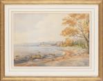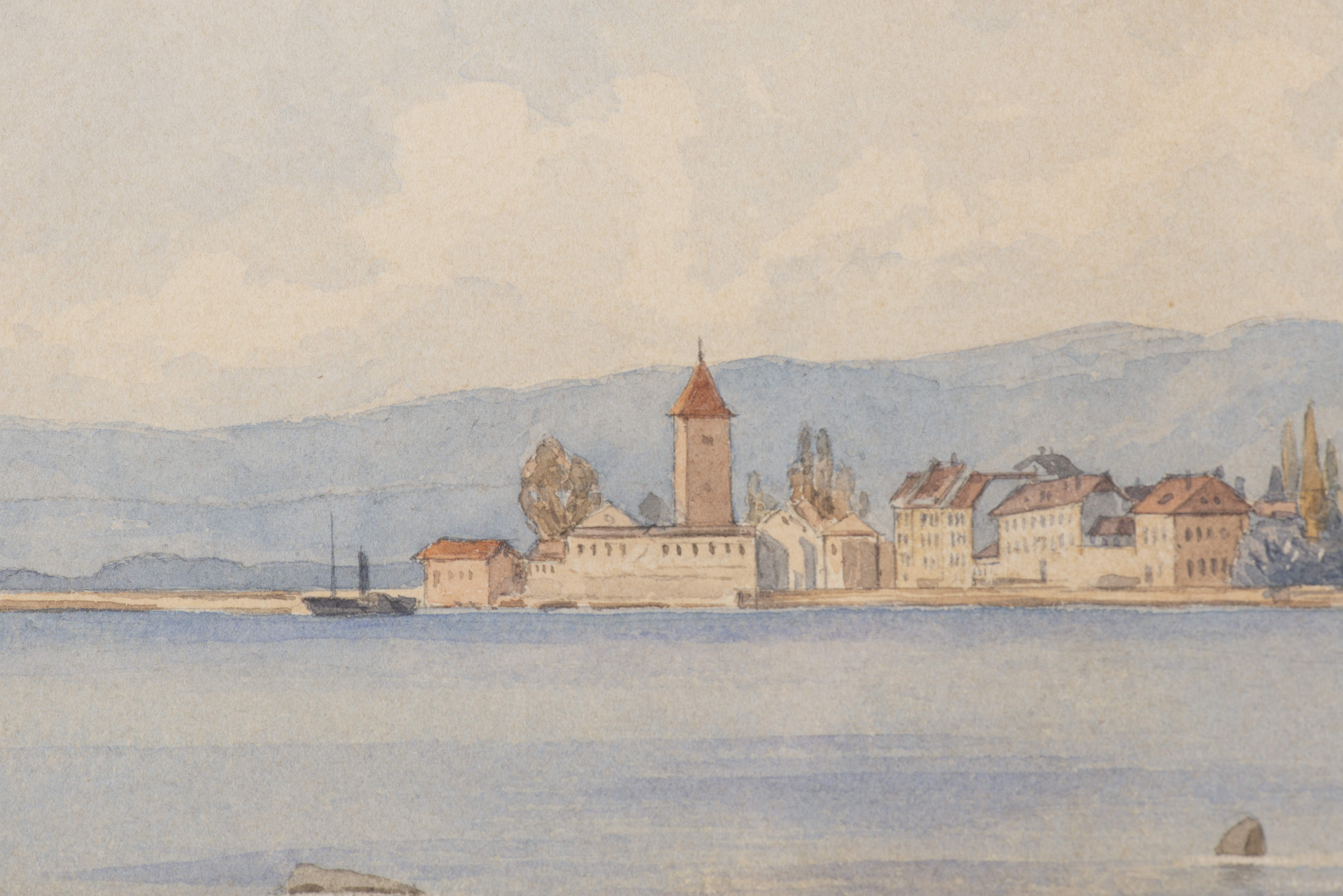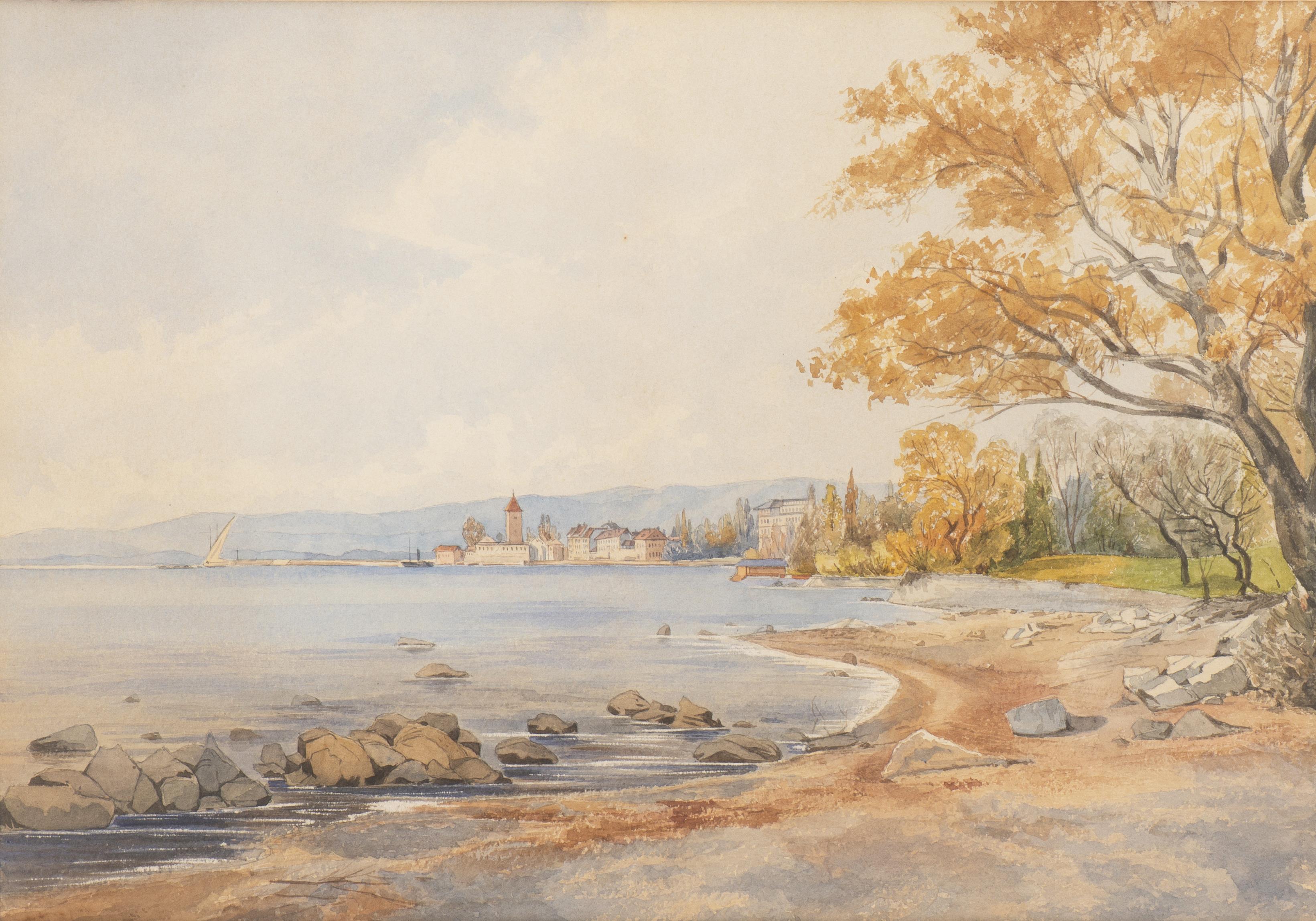Anonyme XIXe "Rives d'Ouchy", aquarelle sur papier, non signée.