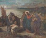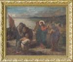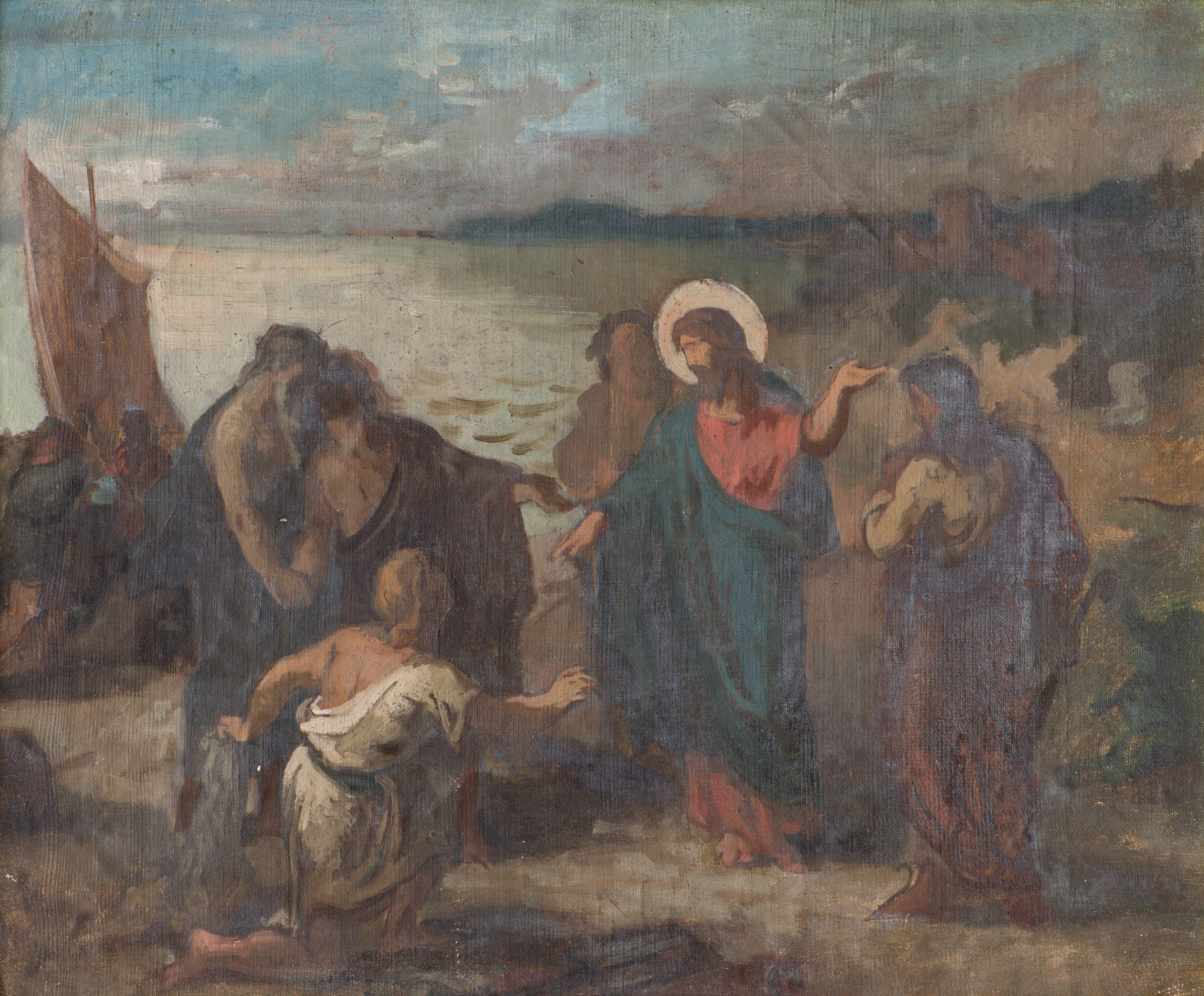 Anonyme XXe,"La pêche miraculeuse". Huile sur toile marouflée sur carton, ns.