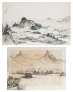 Anonymes XIX-XXe "Paysages", aquarelles chinoises