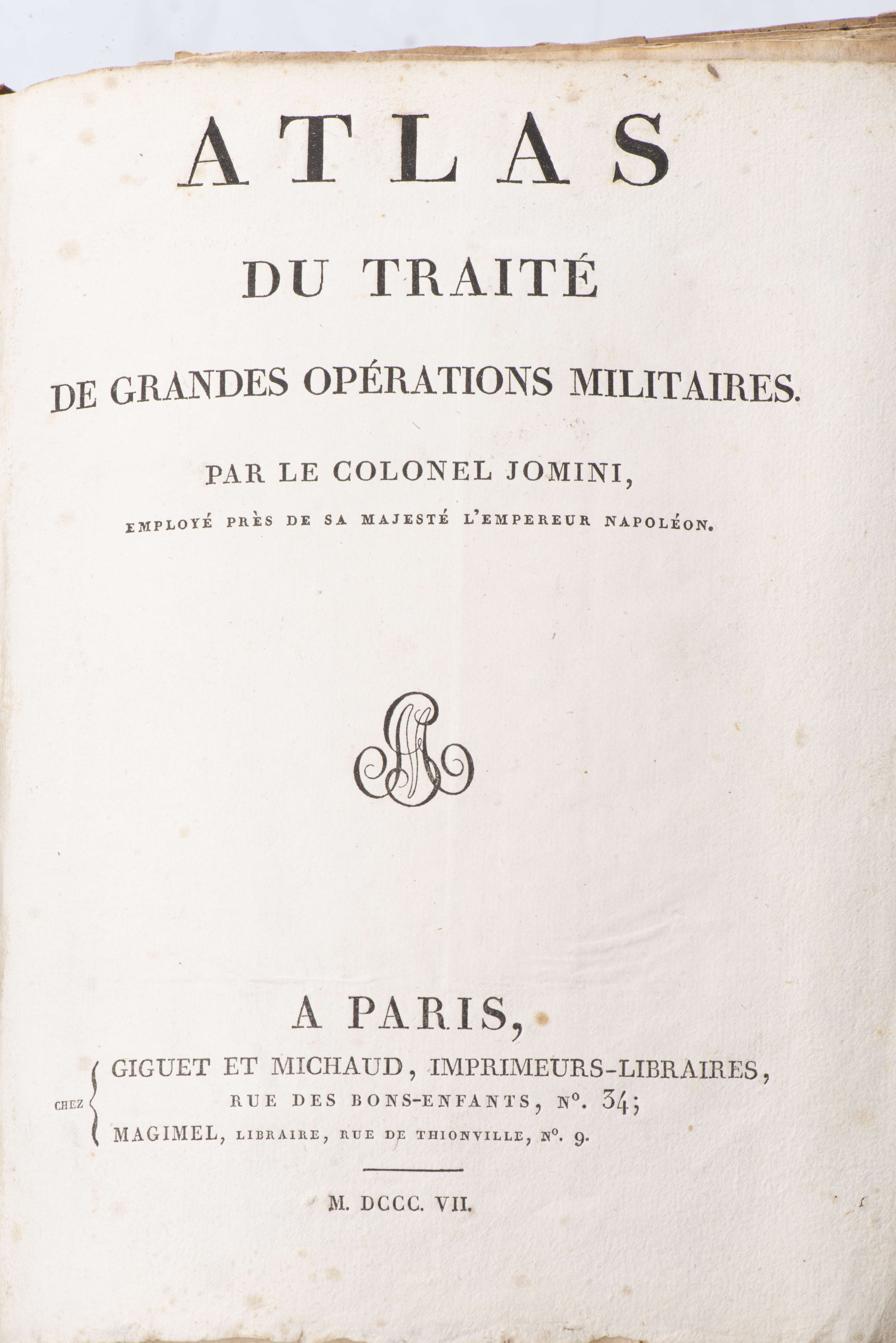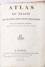 Antoine Henri JOMINI (Baron de) (1779-1869), "Atlas du traité de grandes opérations militaires", Paris, 1807, contenant de nombreuses cartes dépliantes en noir et blanc.
