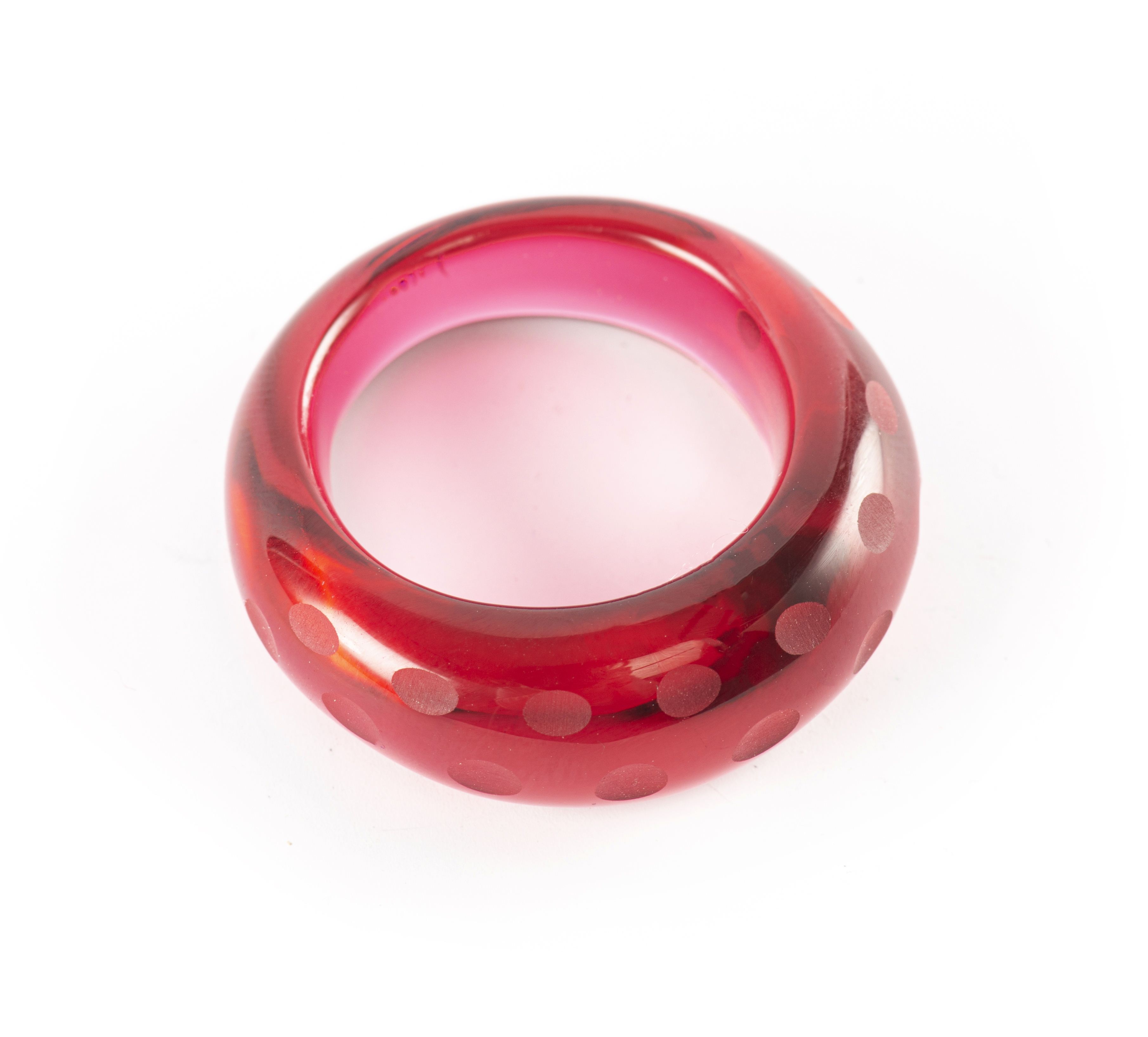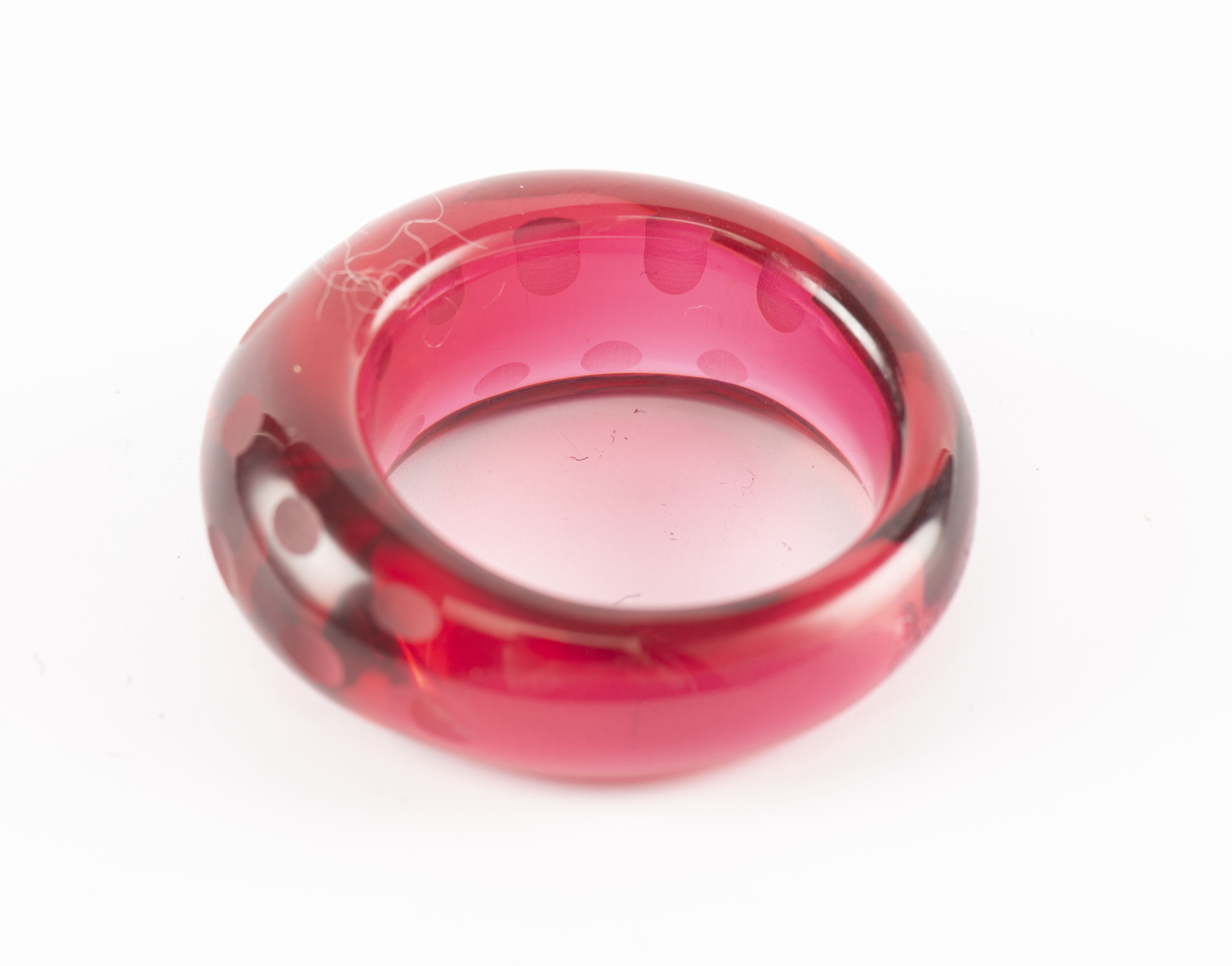 BACCARAT,bague anneau en verre rouge, repris à la roue, signé