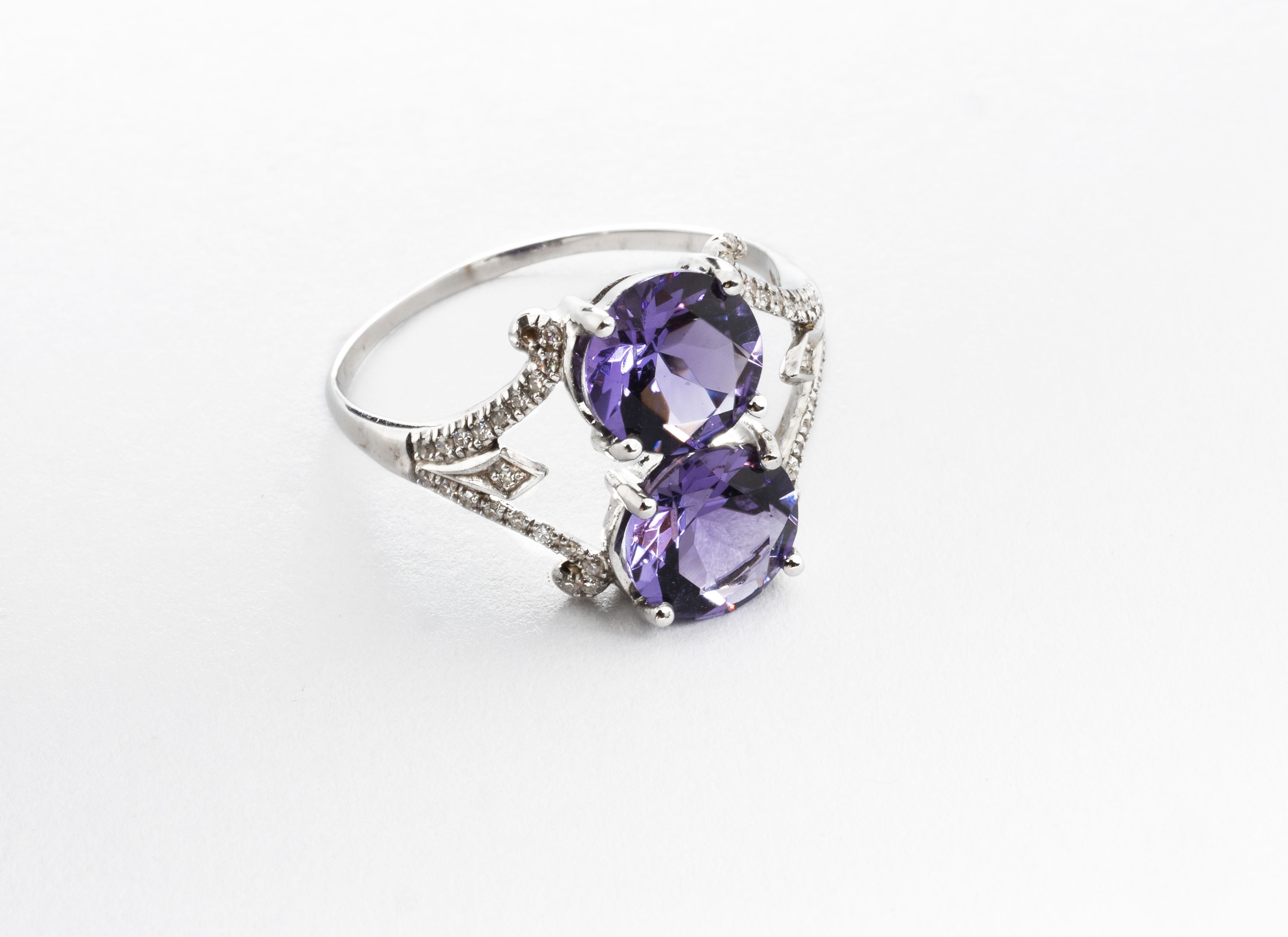 *Bague à 2 améthystes de taille brillant et diamants sur or gris .375