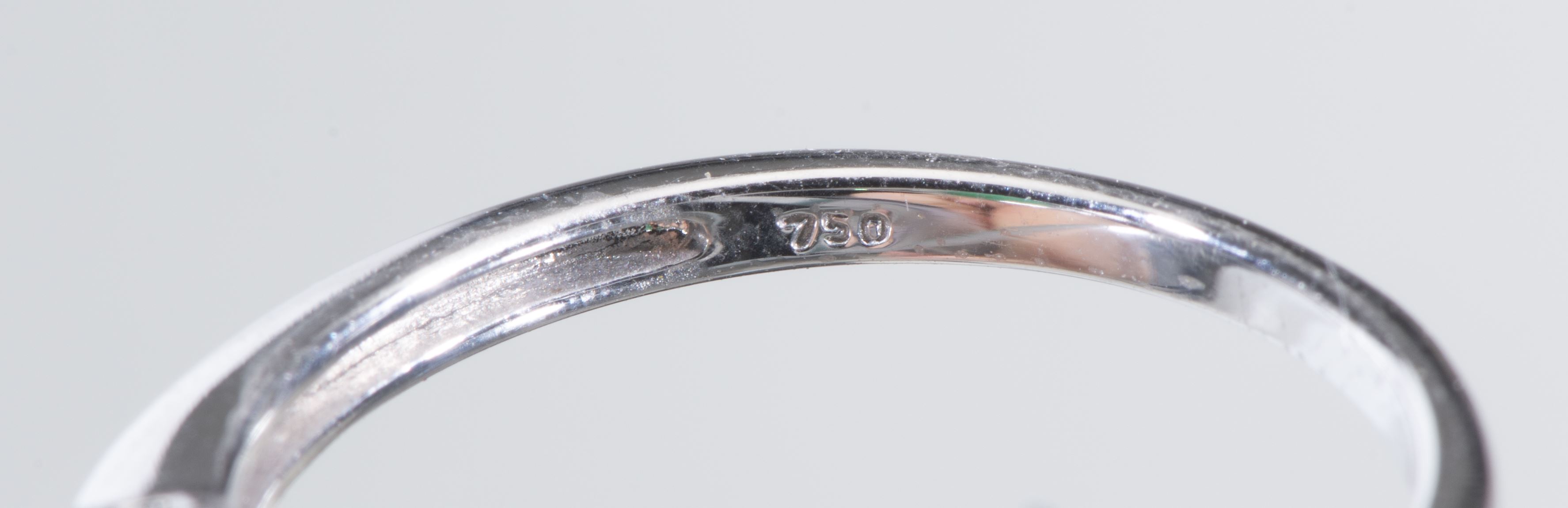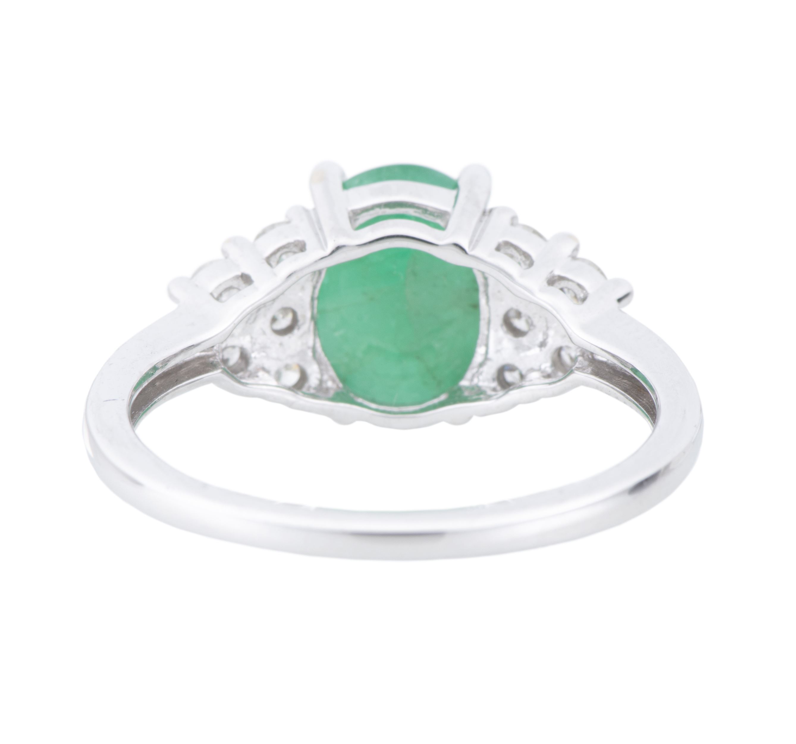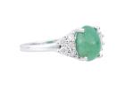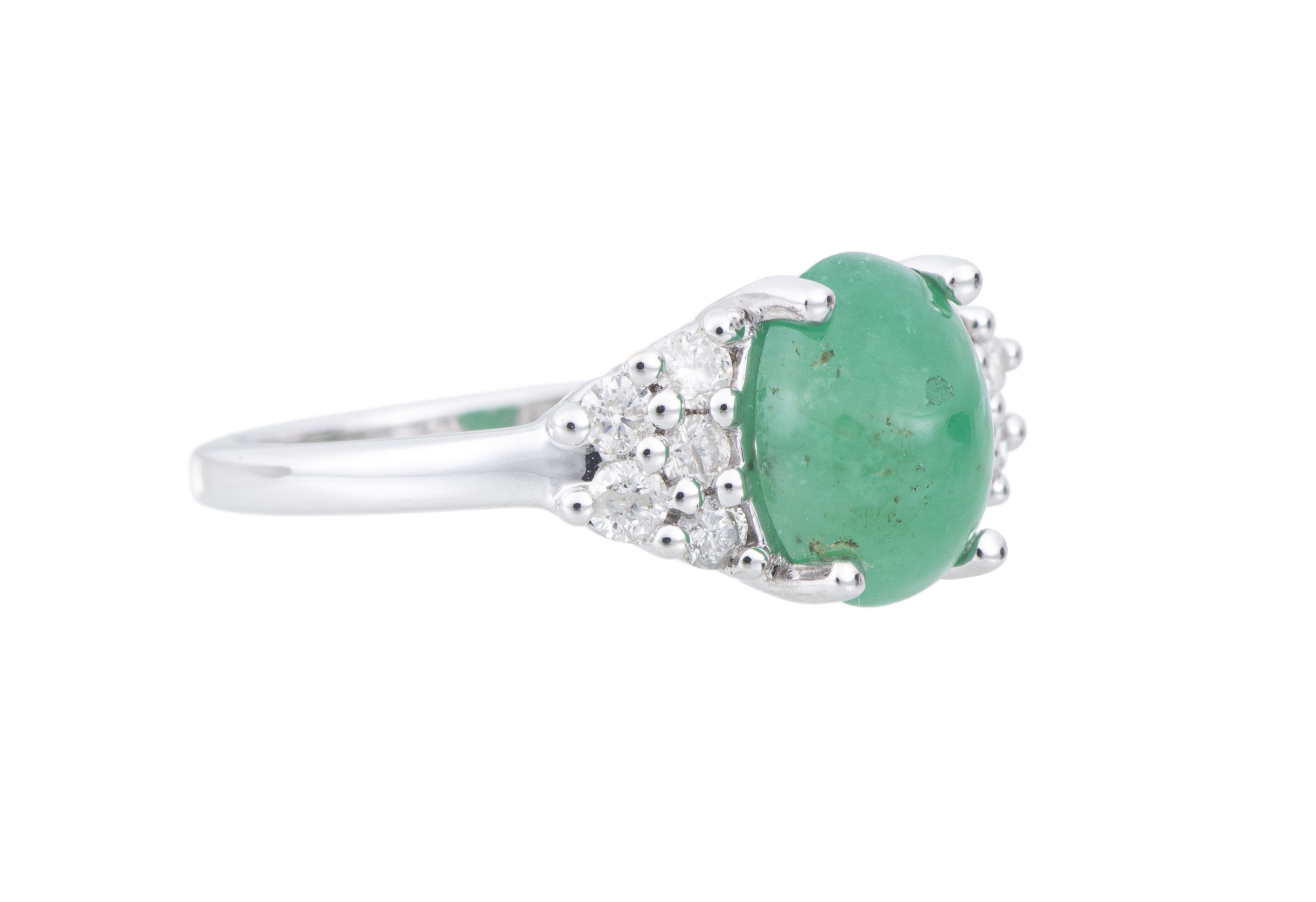 *Bague en or gris .750 avec une émeraude cabochon de 2.2 cts et 0.33 ct de diamants.