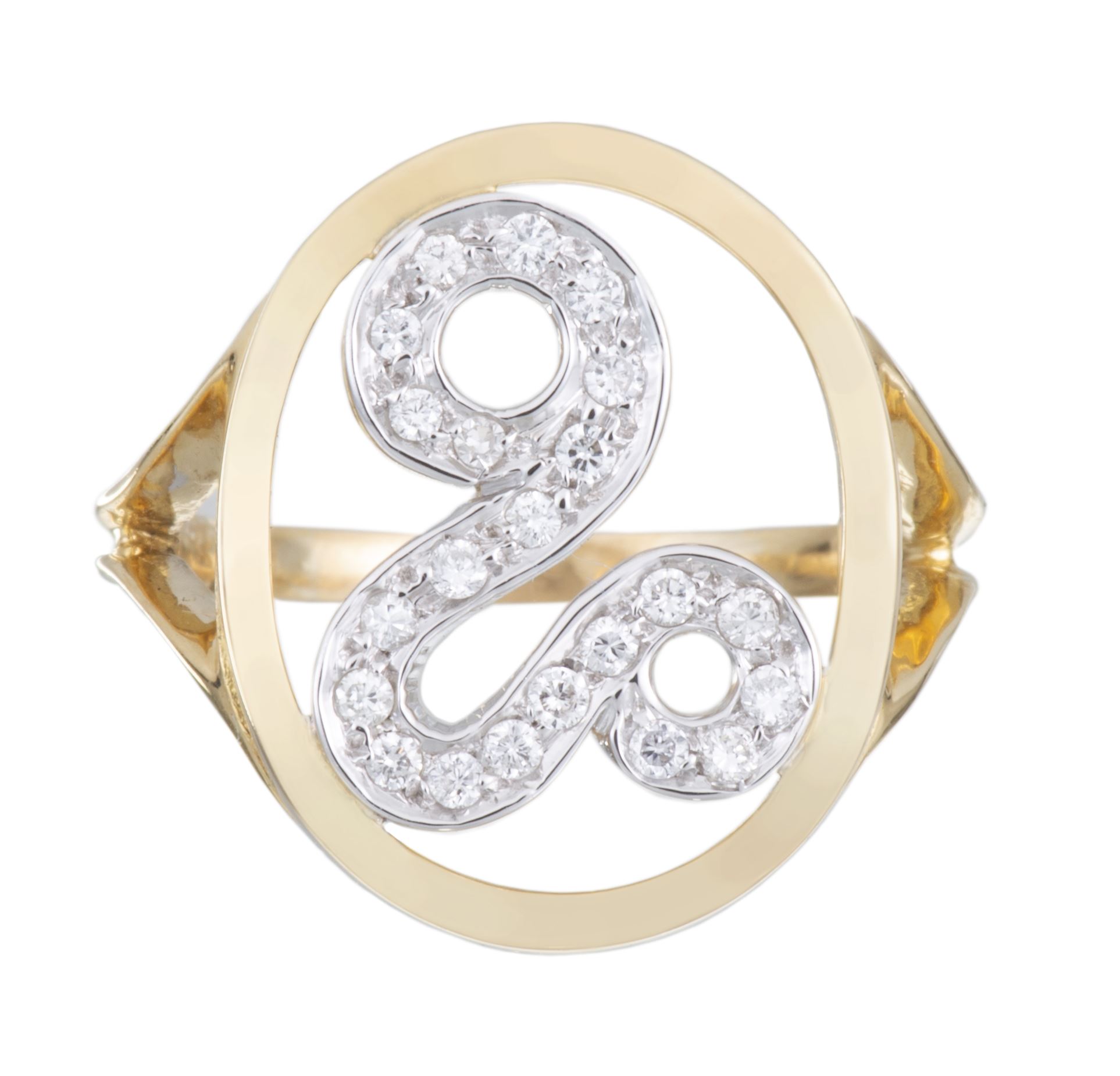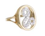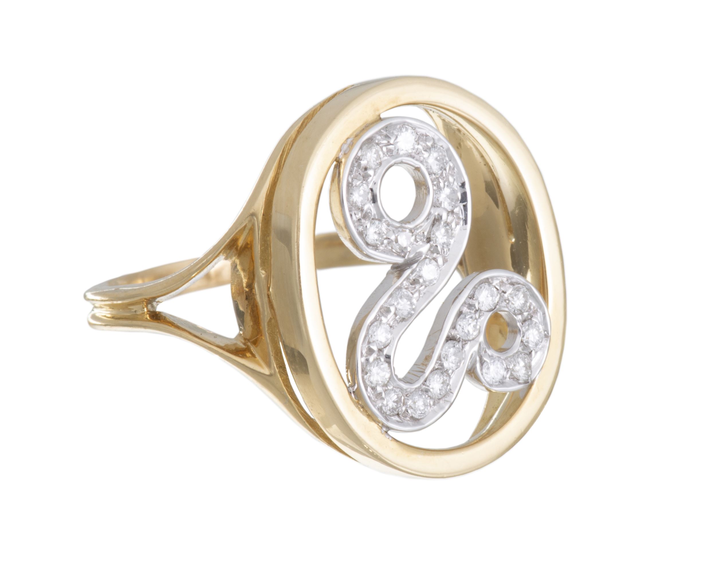 Bague en or gris et or jaune .750 au symbole du zodiaque Taureau avec 22 diamants pour un total de 0.22 ct.