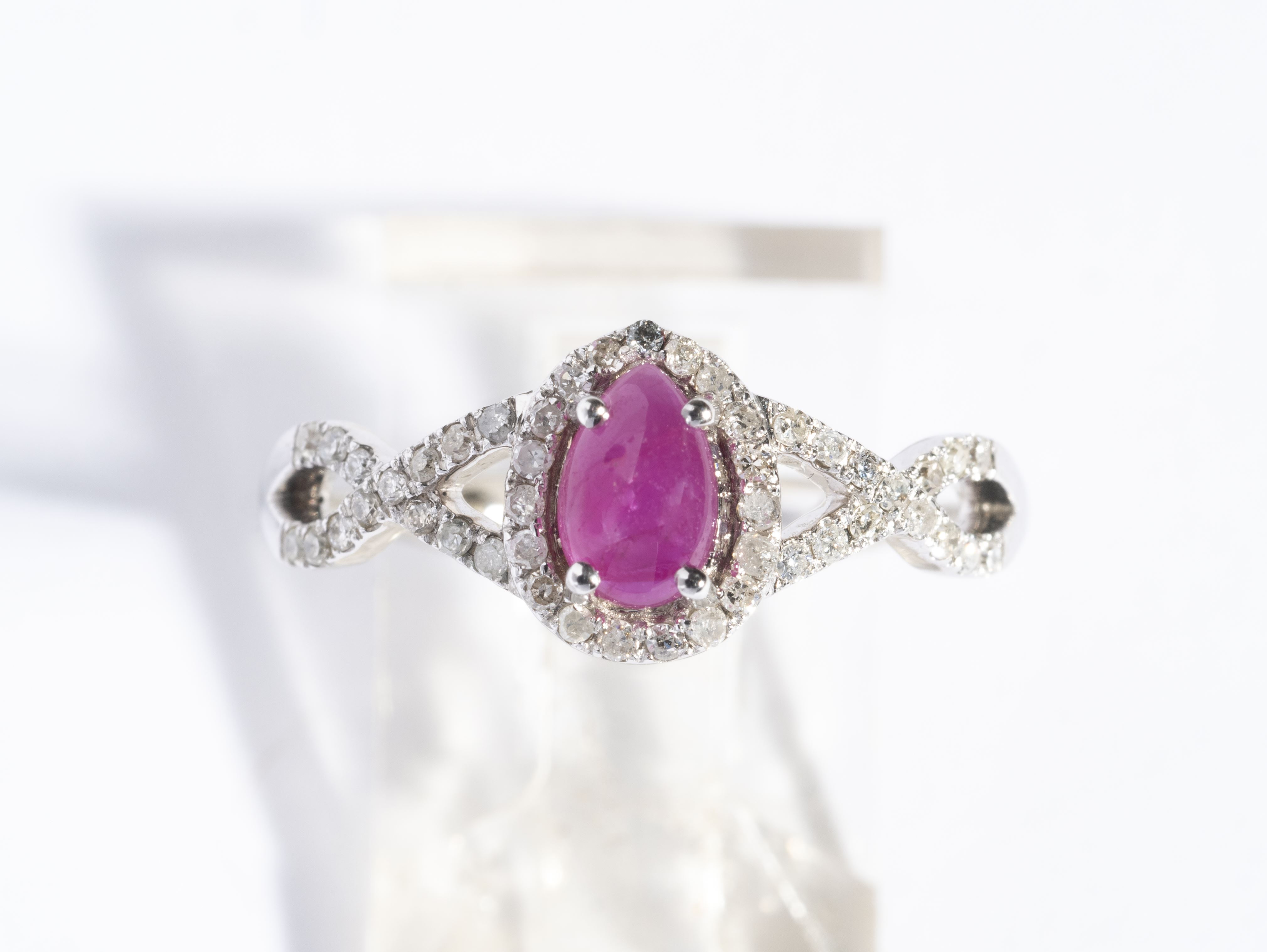 Bague en or gris et rubis cabochon