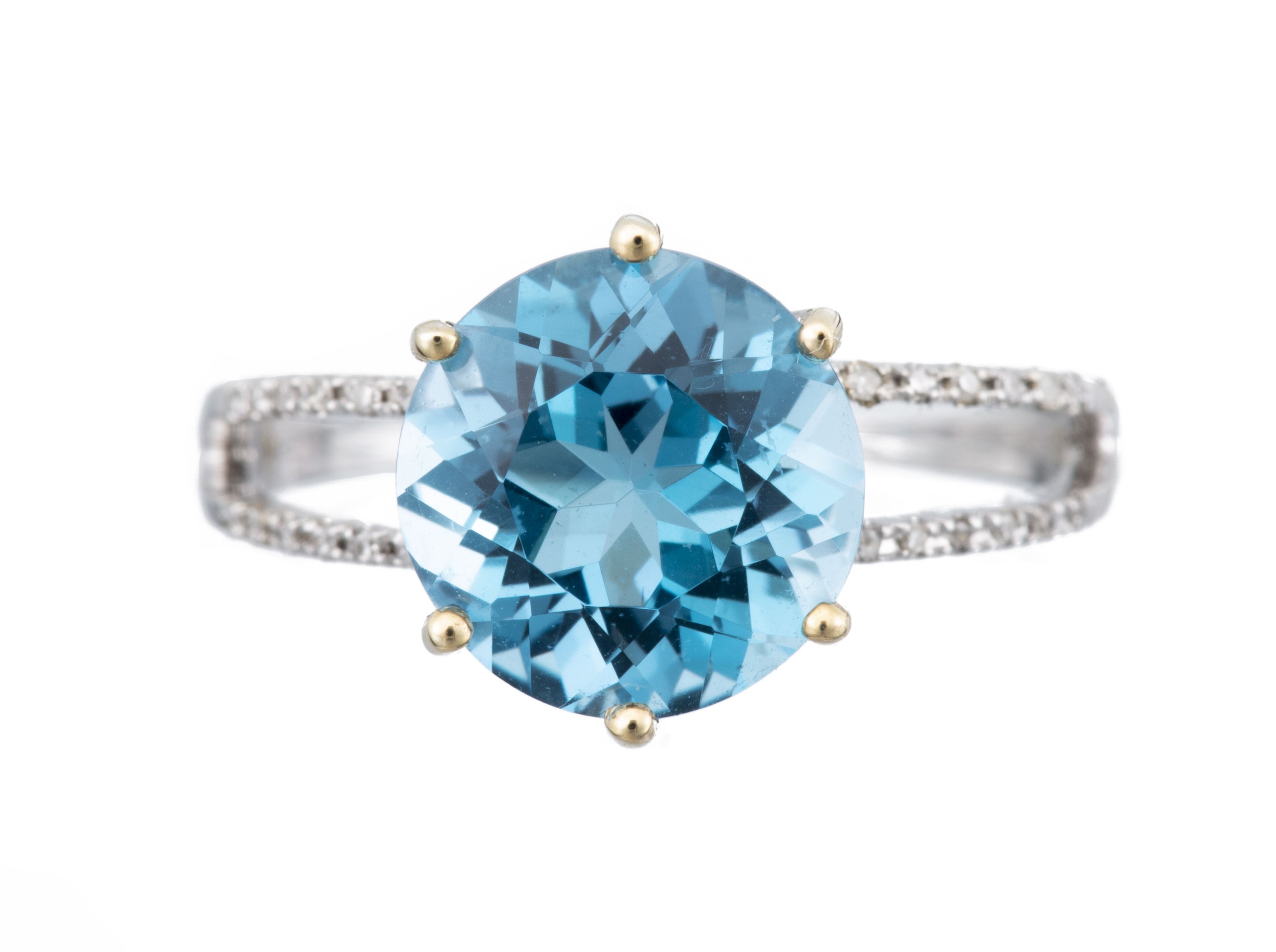 *Bague en or gris .375 avec une topaze bleue de 3,19 cts et un total de 0.15 ct de diamants sur l'épaule de l'anneau.
