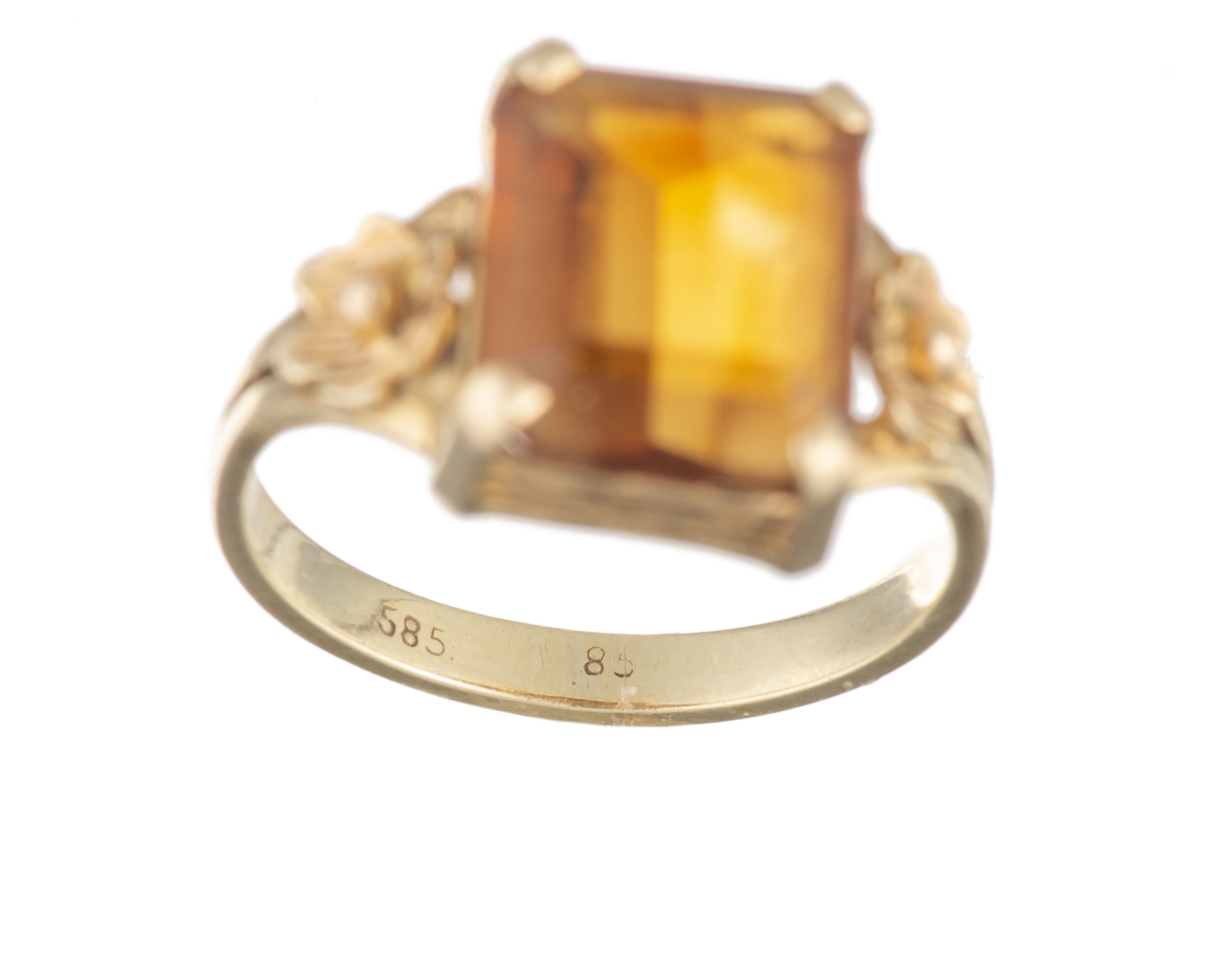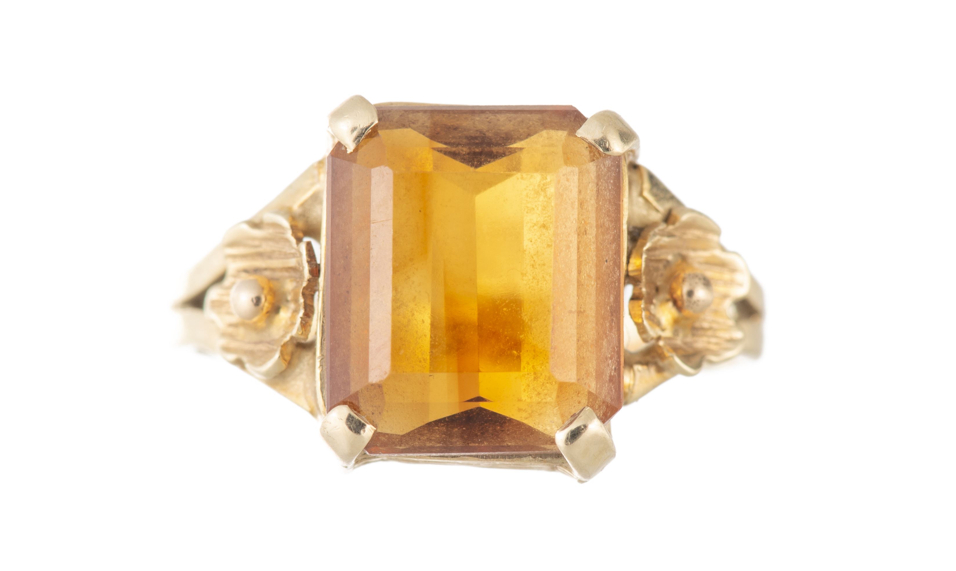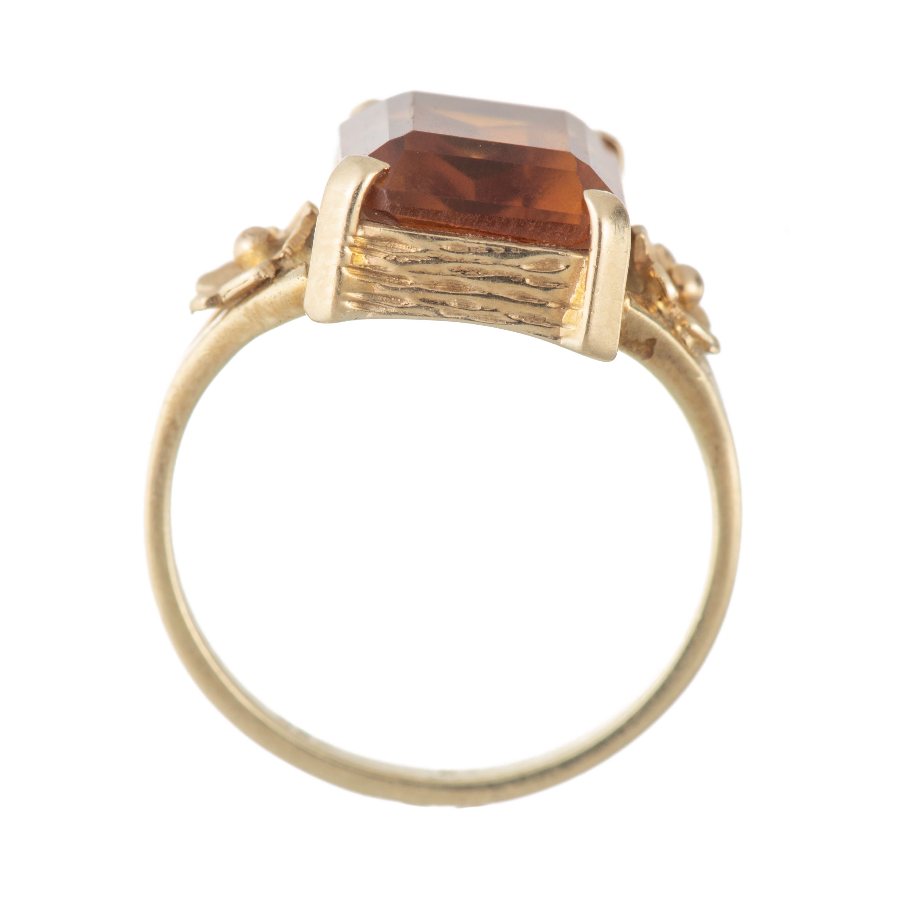 Bague en or jaune .585 avec une citrine de taille émeraude