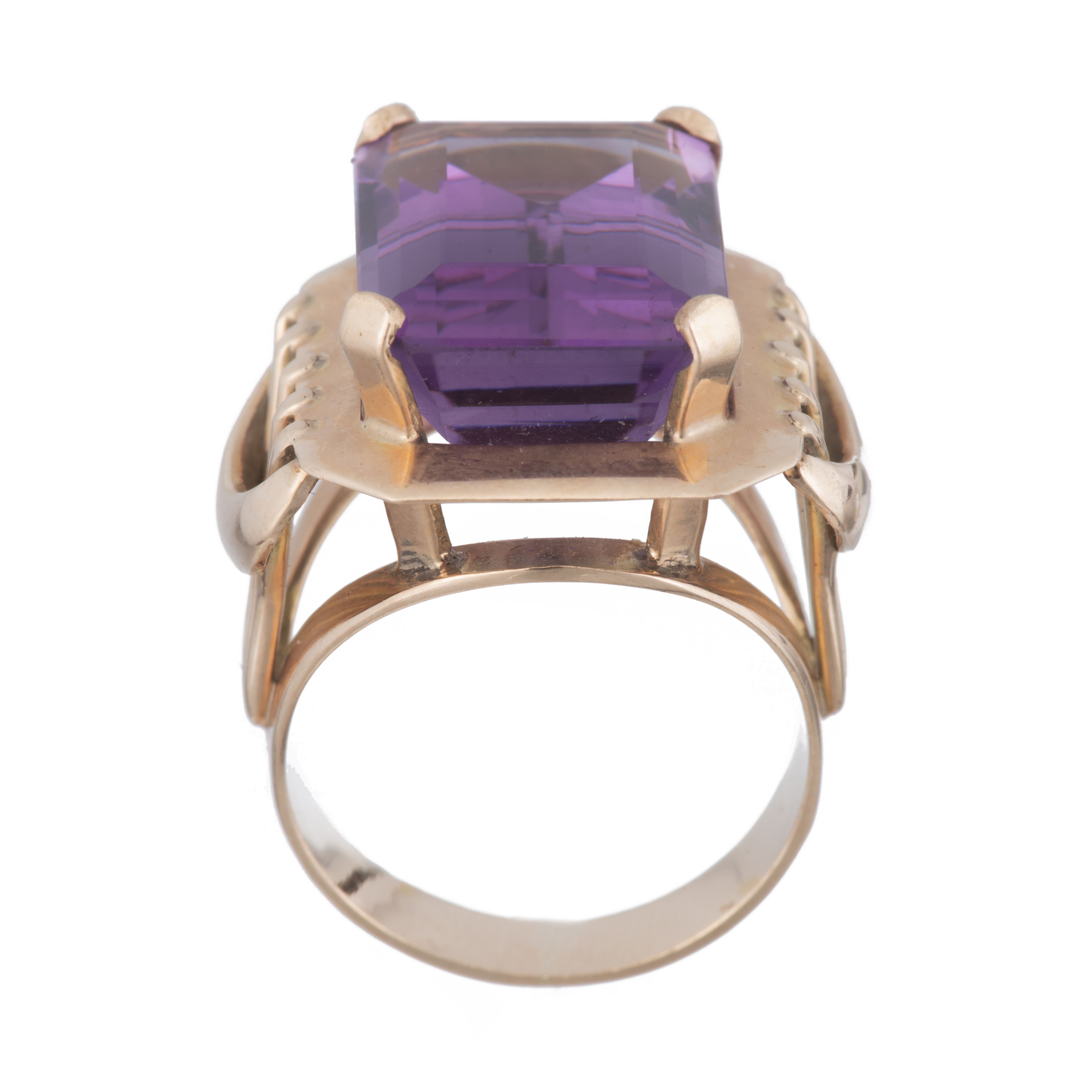 Bague en or rose .750 avec une améthyste de taille émeraude pour env. 12 ct.