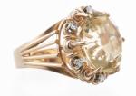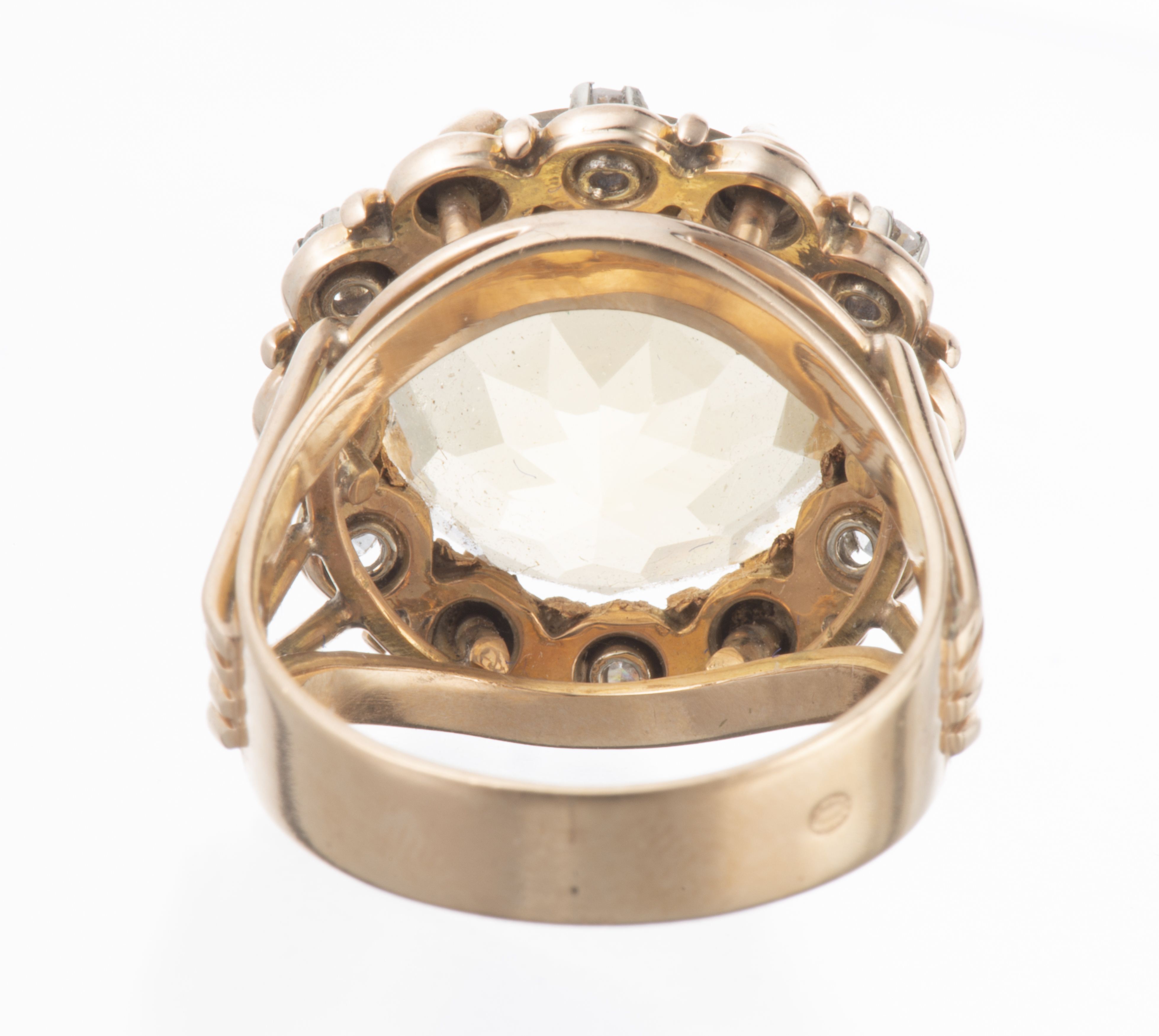 Bague en or rose .585 des années 1940 sertie d'une citrine d'env. 10 cts entourée de 6 diamants de taille 8/8 pour un total de 0.15 ct.