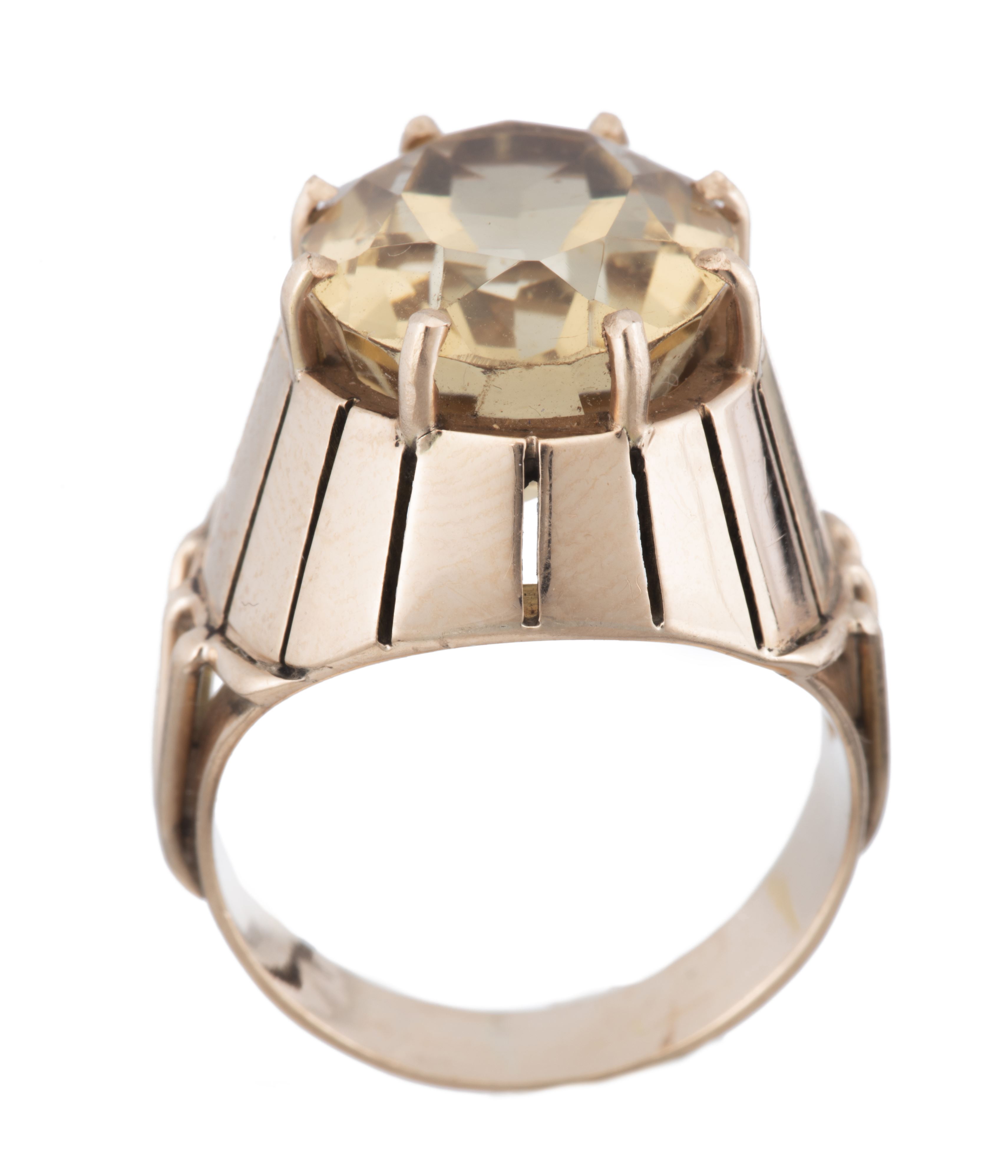 Bague en or rose avec une citrine ovale