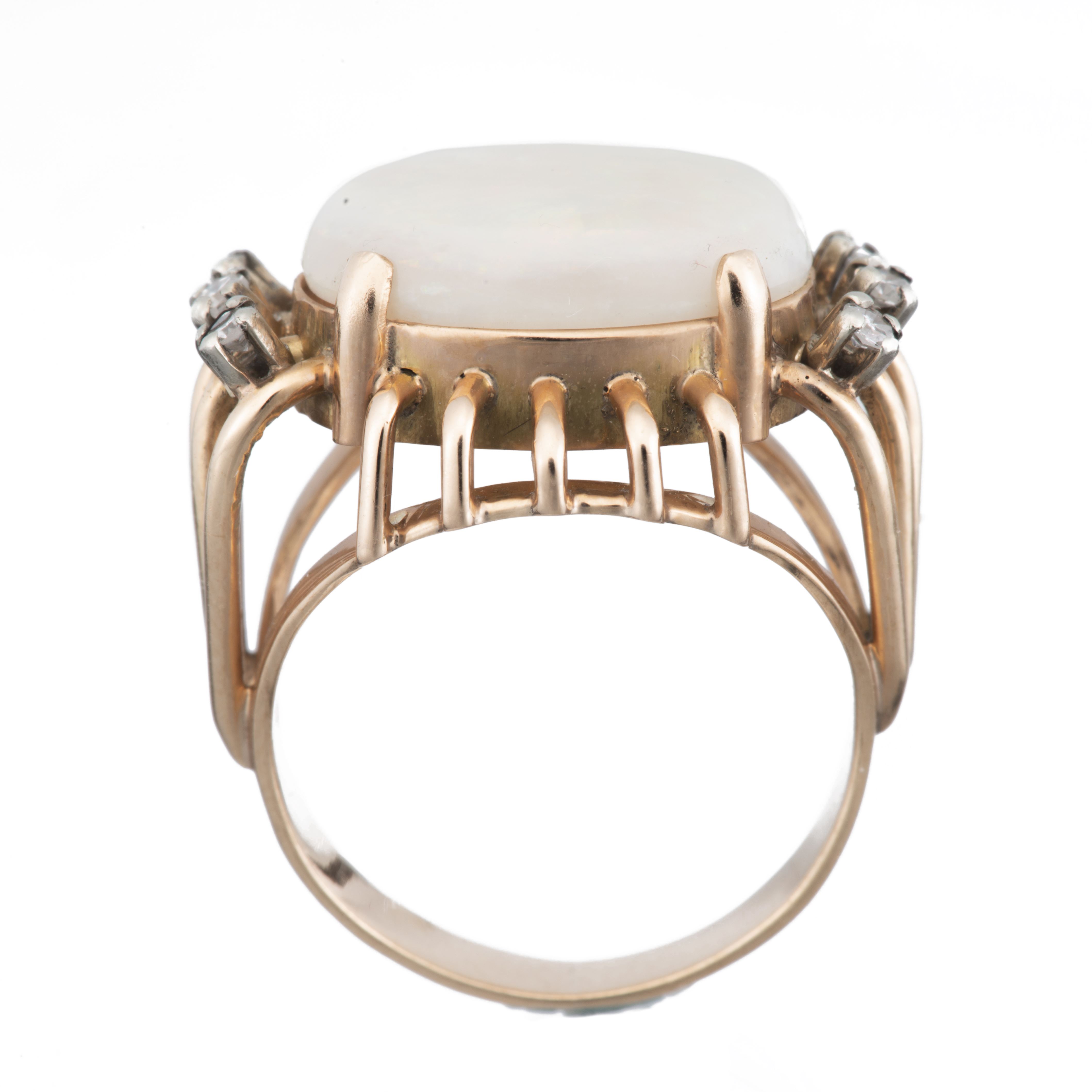 Bague en or rose .585 avec une opale d'Australie et 6 diamants de taille 8/8 pour un total de 0.06 ct.