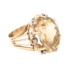 Bague en or rose .585 avec une citrine ovale de 12 cts entourée de six diamants pour 0.10 ct.