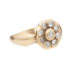 Bague fleur en or jaune .585 avec 9 diamants sertis clos de taille ancienne pour un total de 0.35 ct.