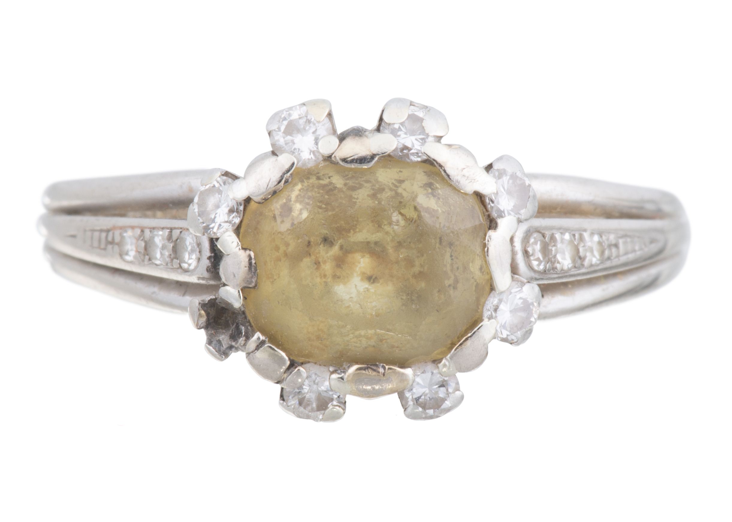 Bague en or gris .750 avec une citrine sertie close.