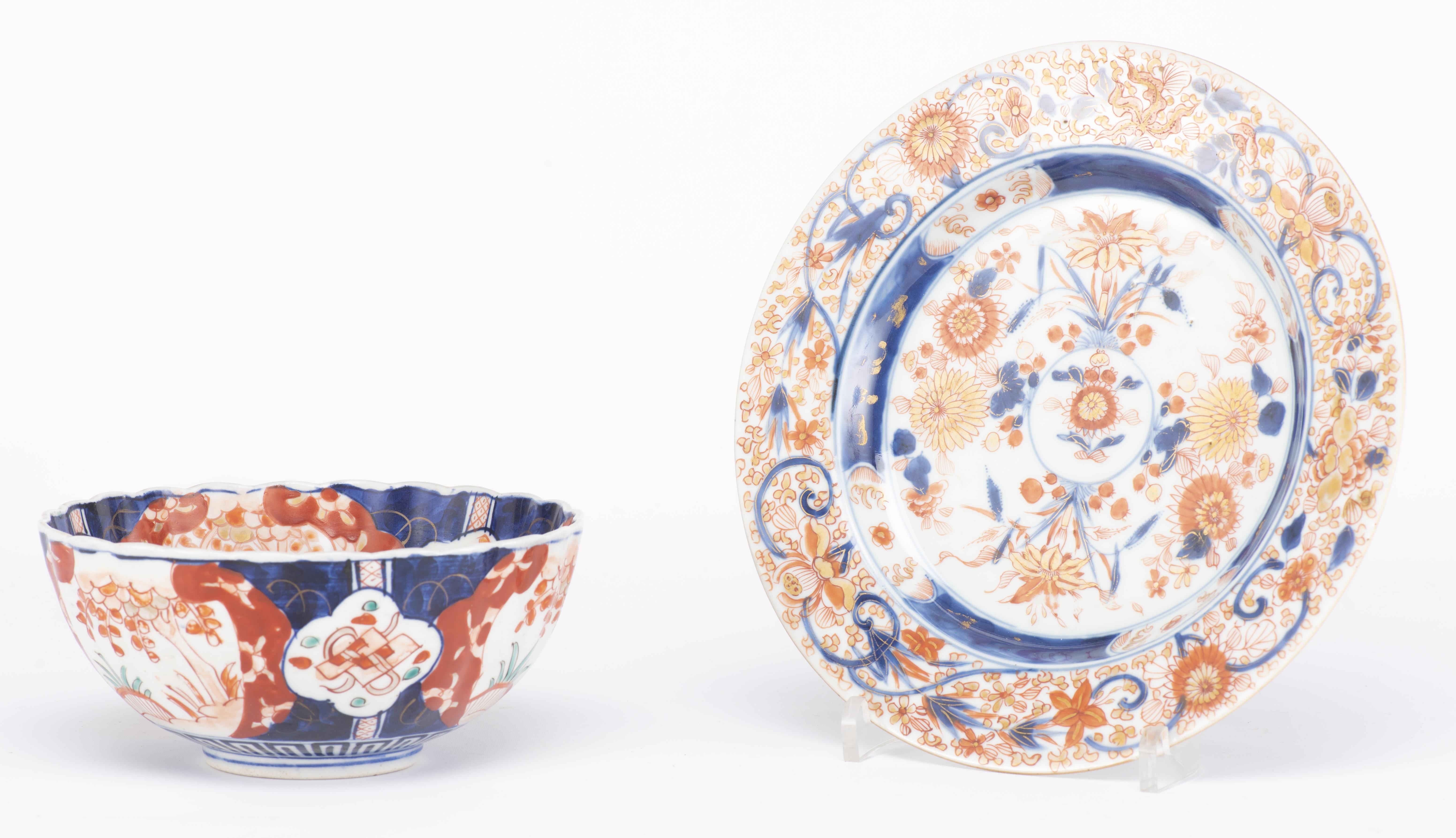 On y joint 1 assiettes en porcelaine de Chine du XVIIIe à décor Imari.