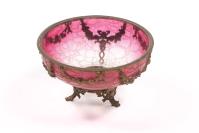 Bol sur pied en bronze de style Nap. III en verre dégradé rose et blanc