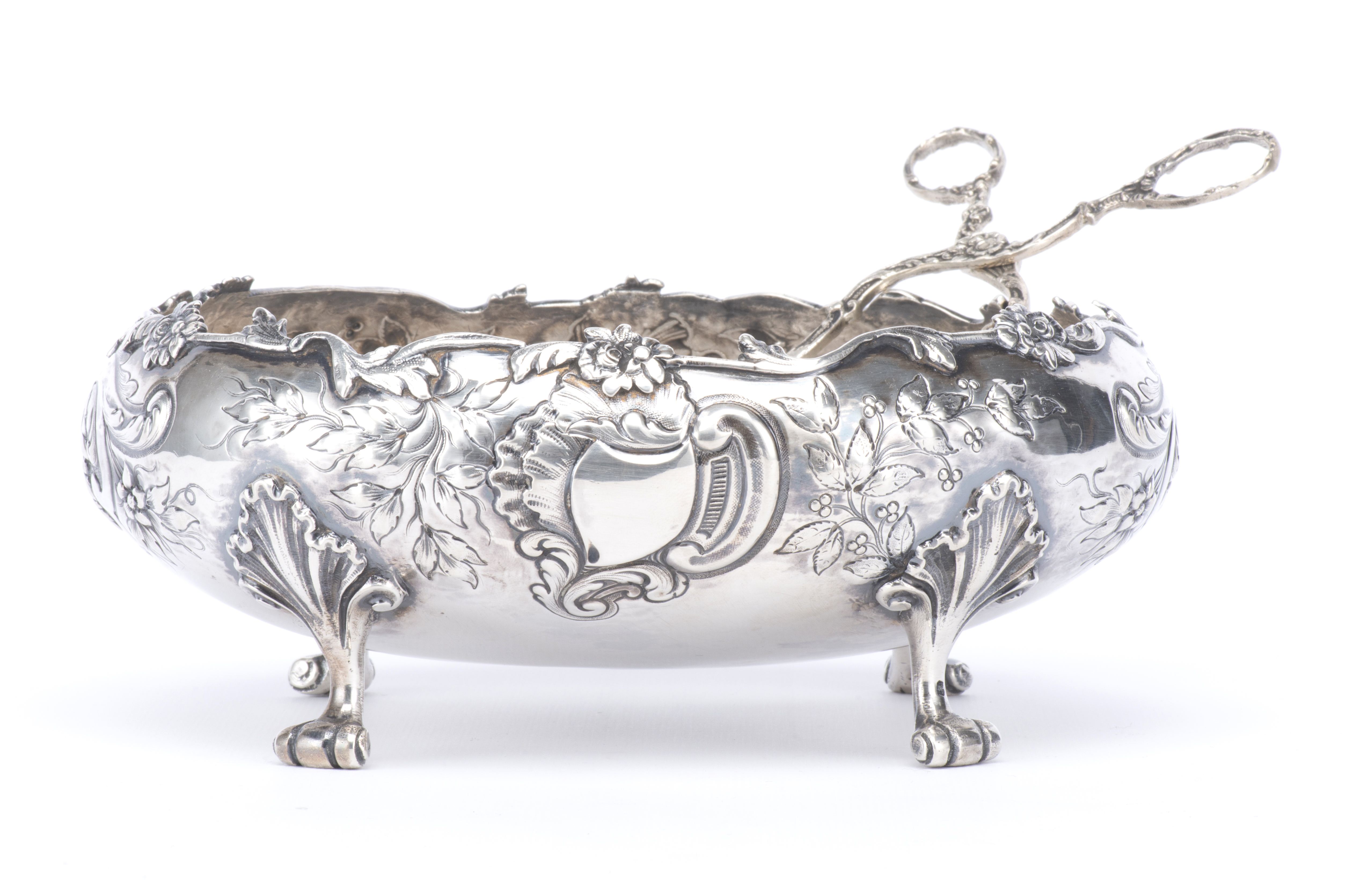 Bonbonnière et pince à pâtisserie en argent