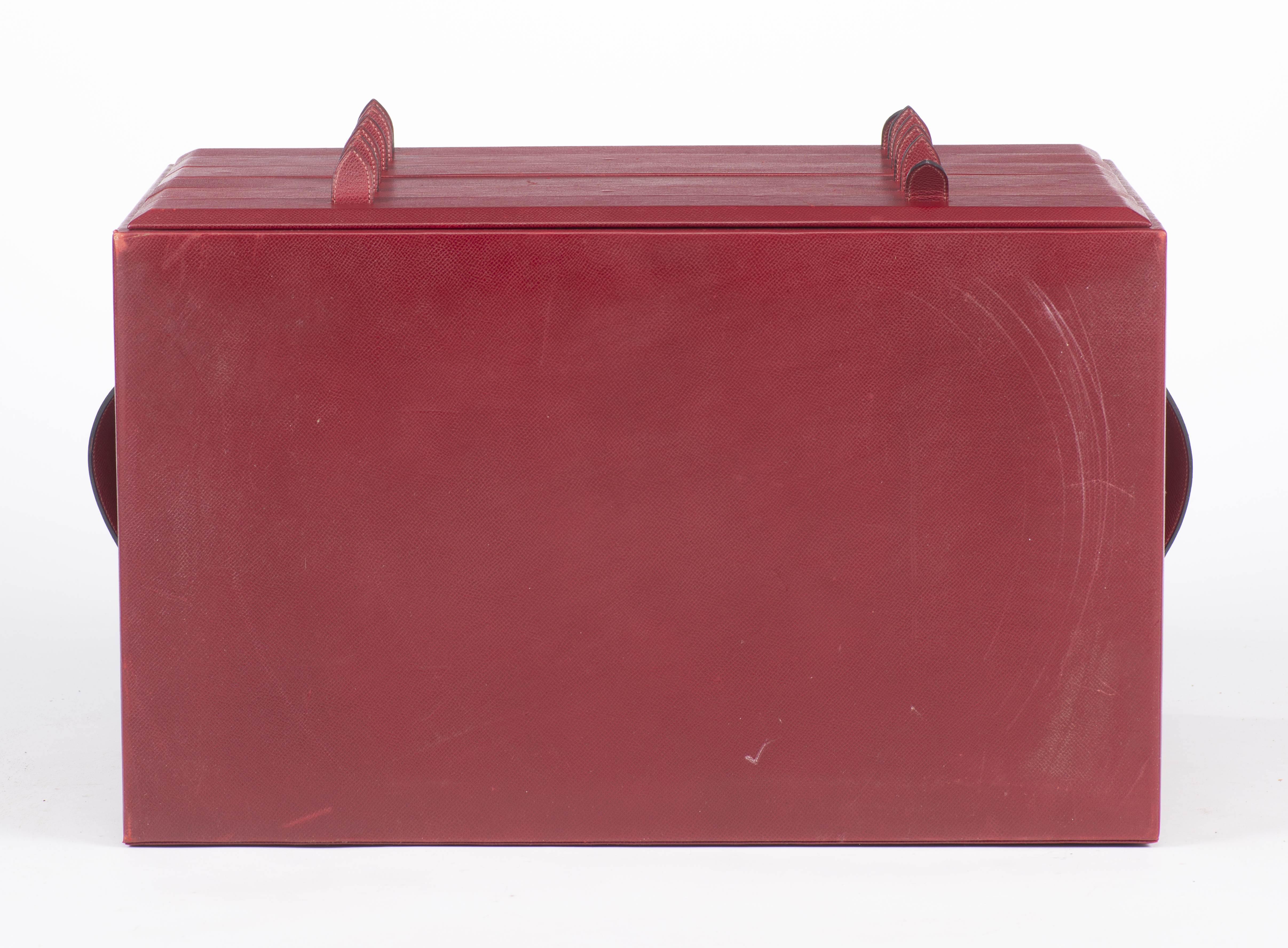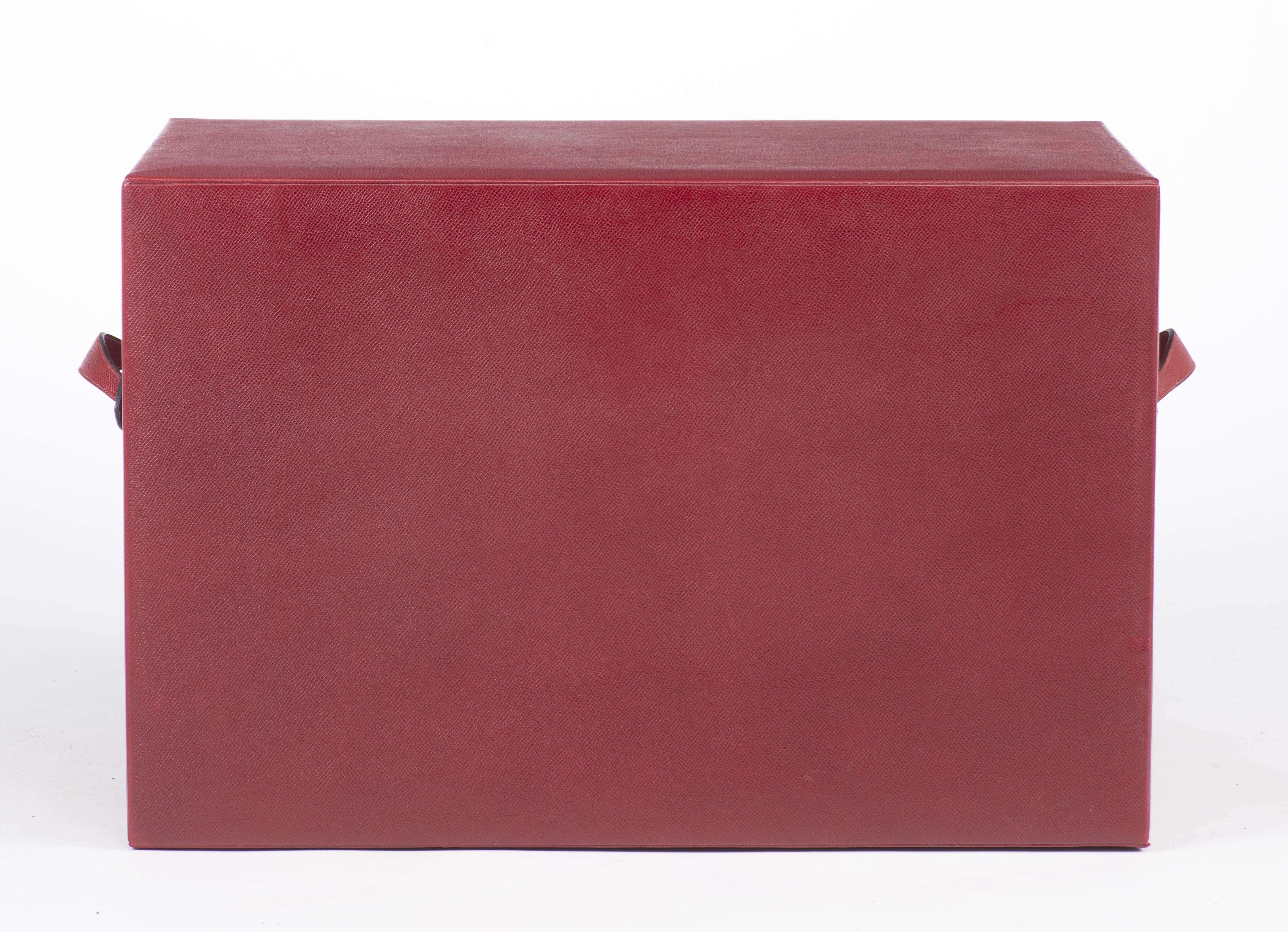 Boîte de rangement de petits objets pour le dressing en cuir gainé rouge à l'extérieur et jaune à l'intérieur, à 6 tiroirs.