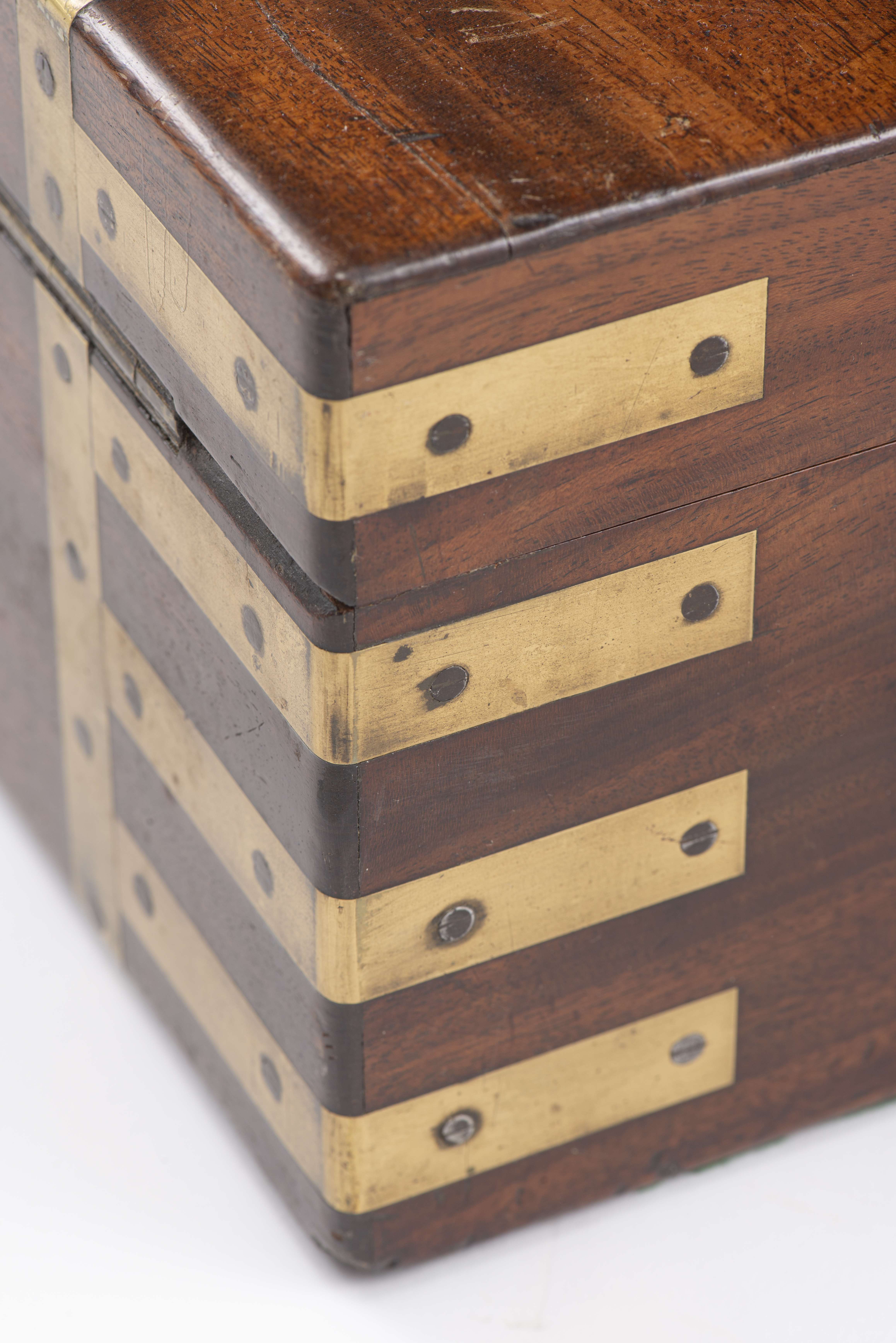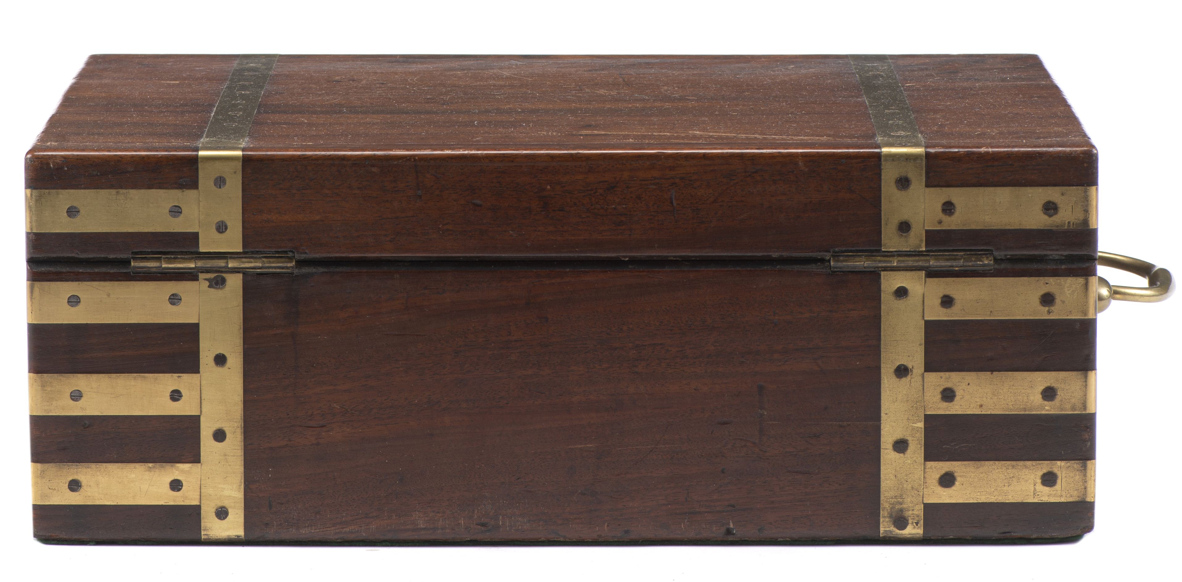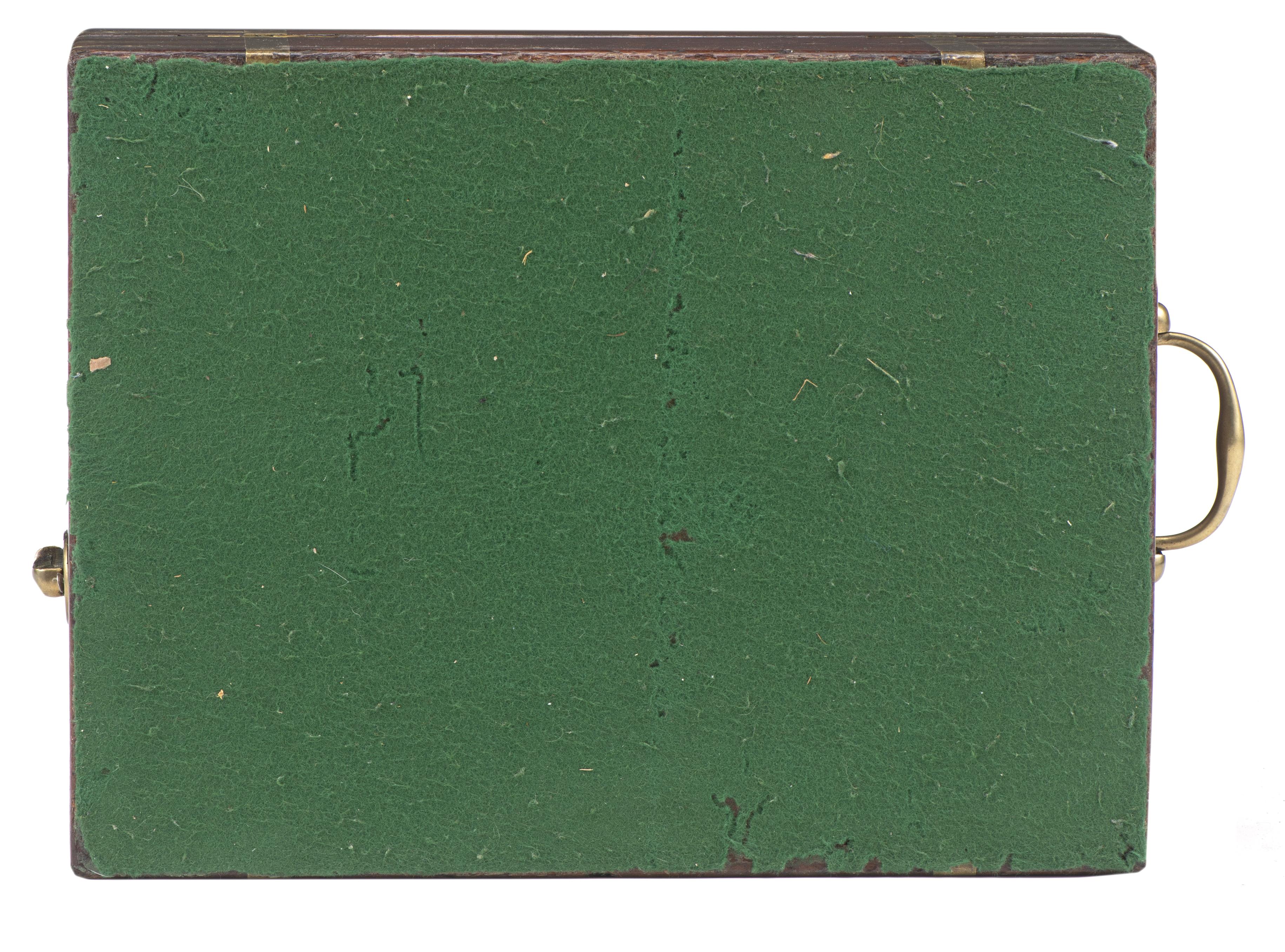 Boîte à documents en bois de rose et laiton. Intérieur garni de papier huilé.