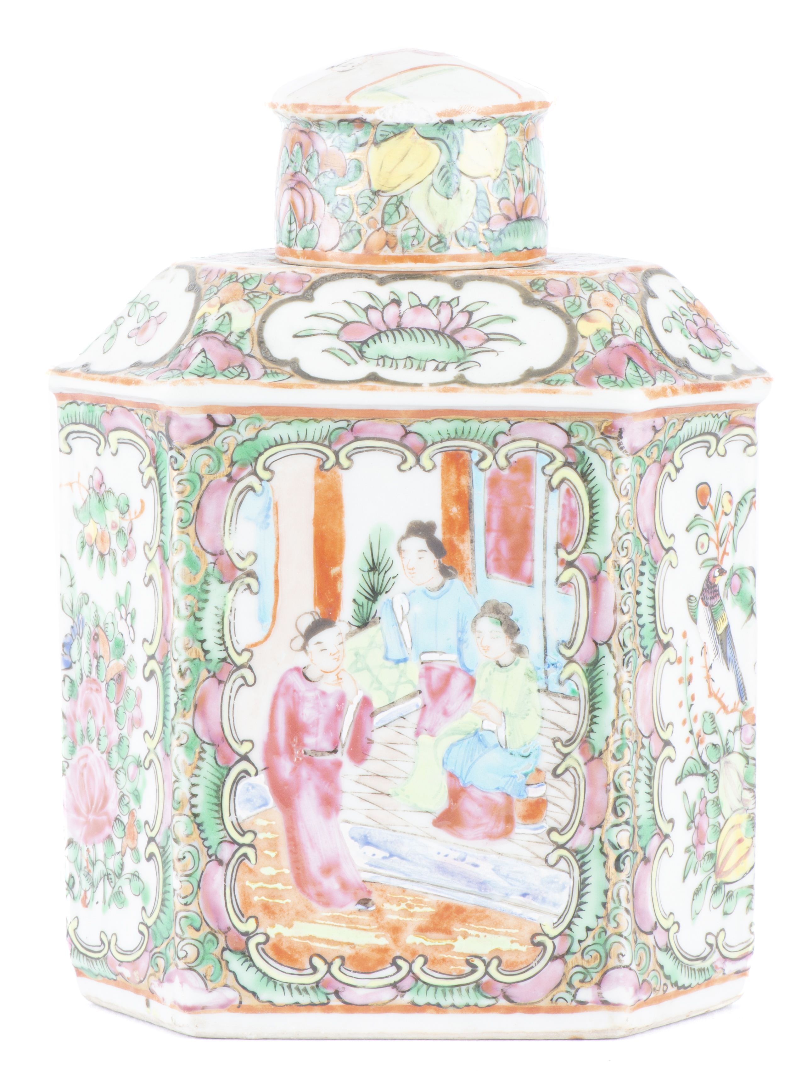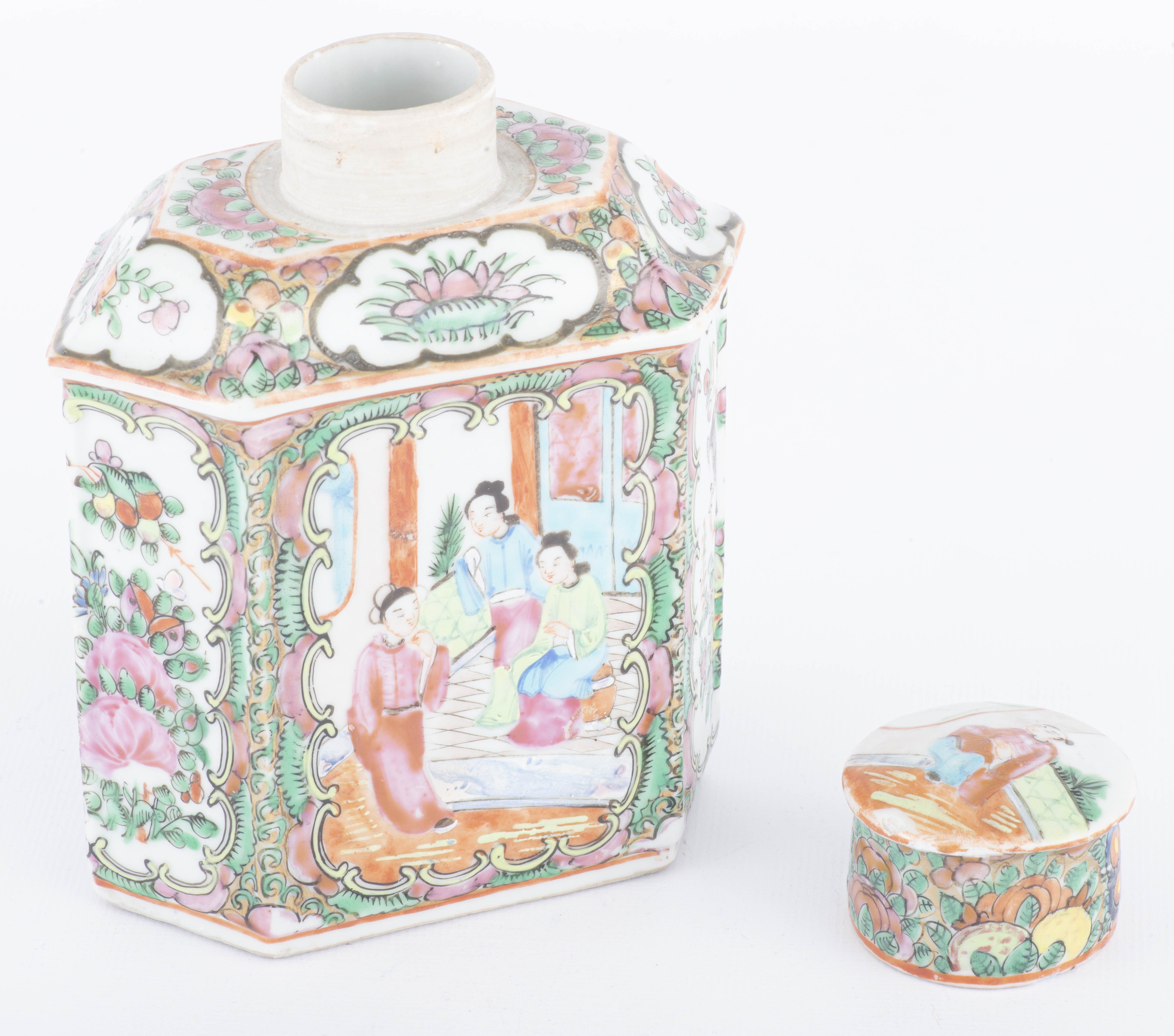 Boîte à thé en porcelaine de Canton vers 1870.