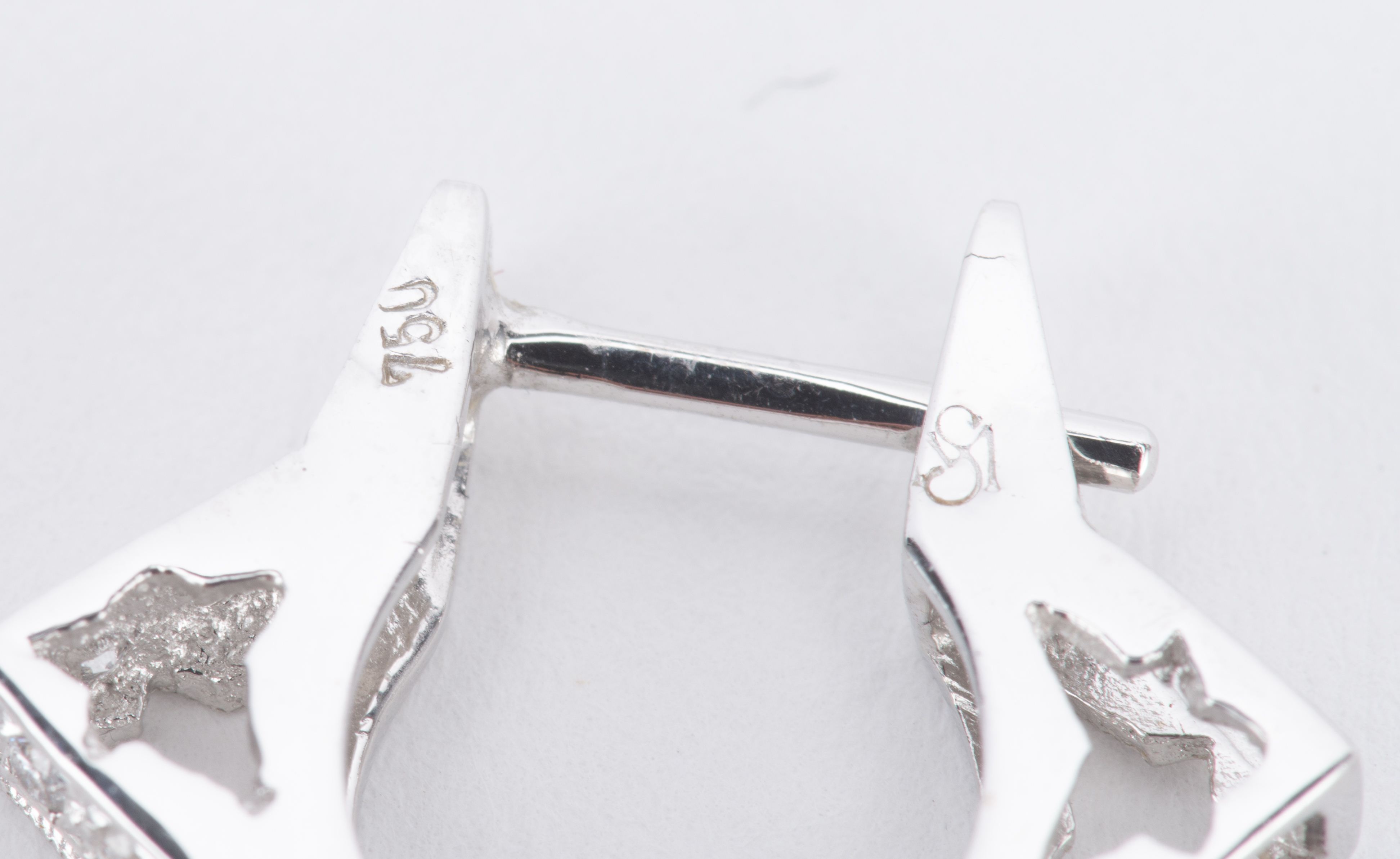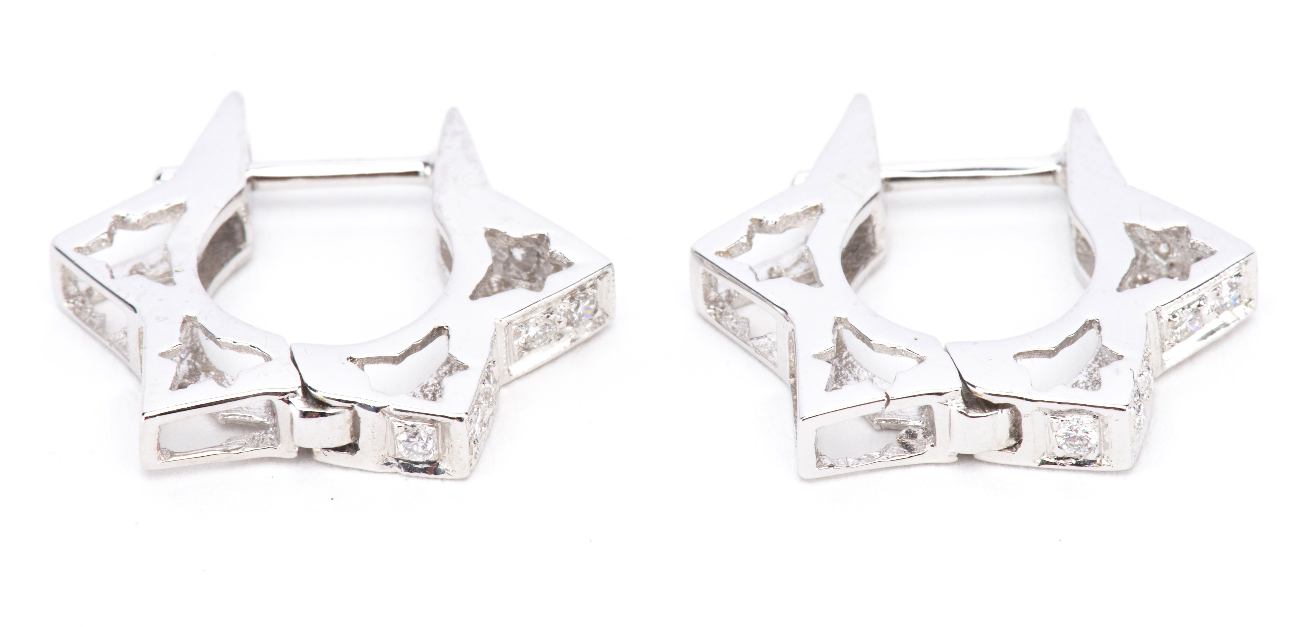 Paire de boucles d'oreilles étoile en or gris .750 et 18 diamants pour 0.18 ct.