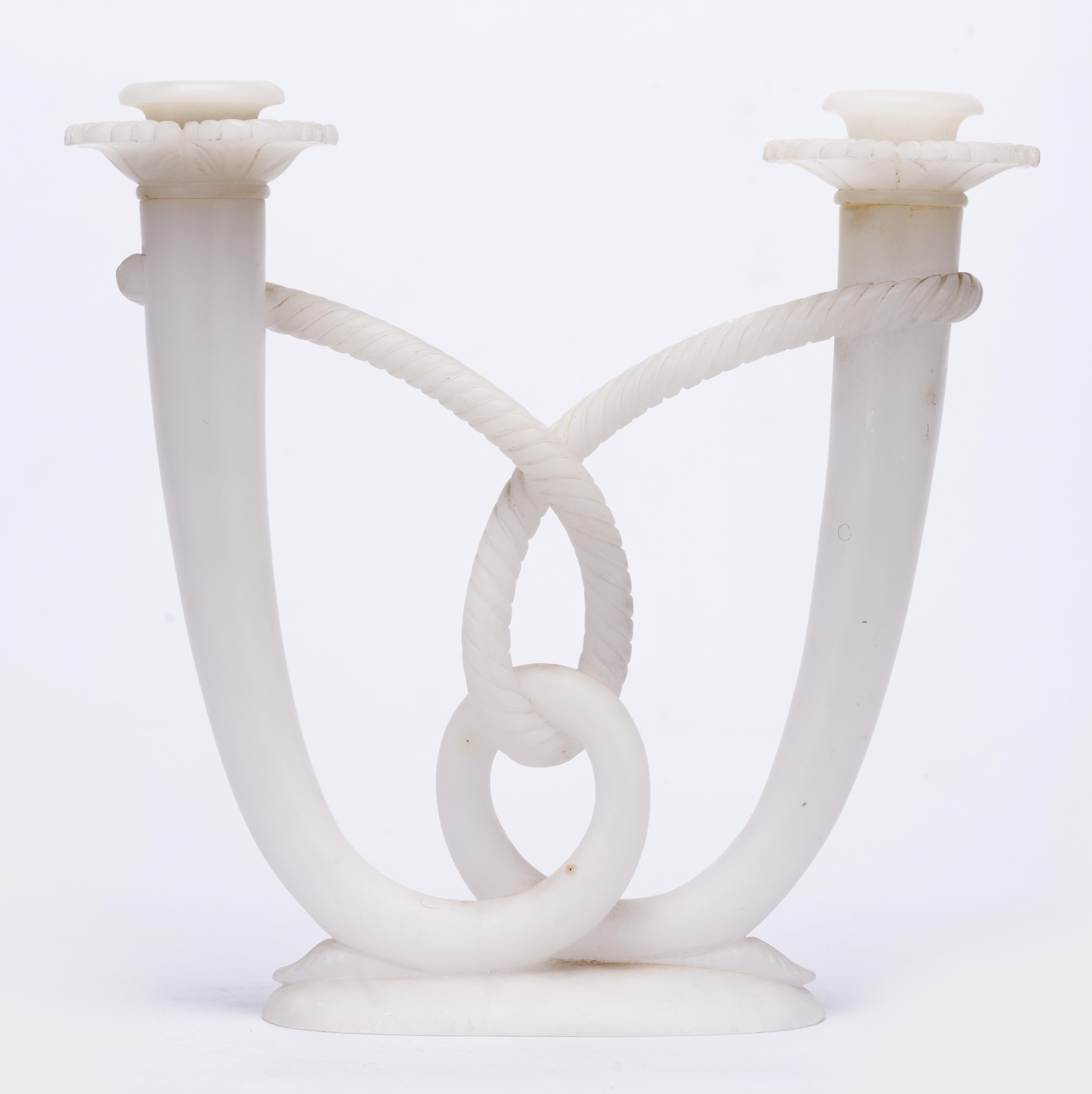 Bougeoir double en albâtre Art déco, vers 1930.