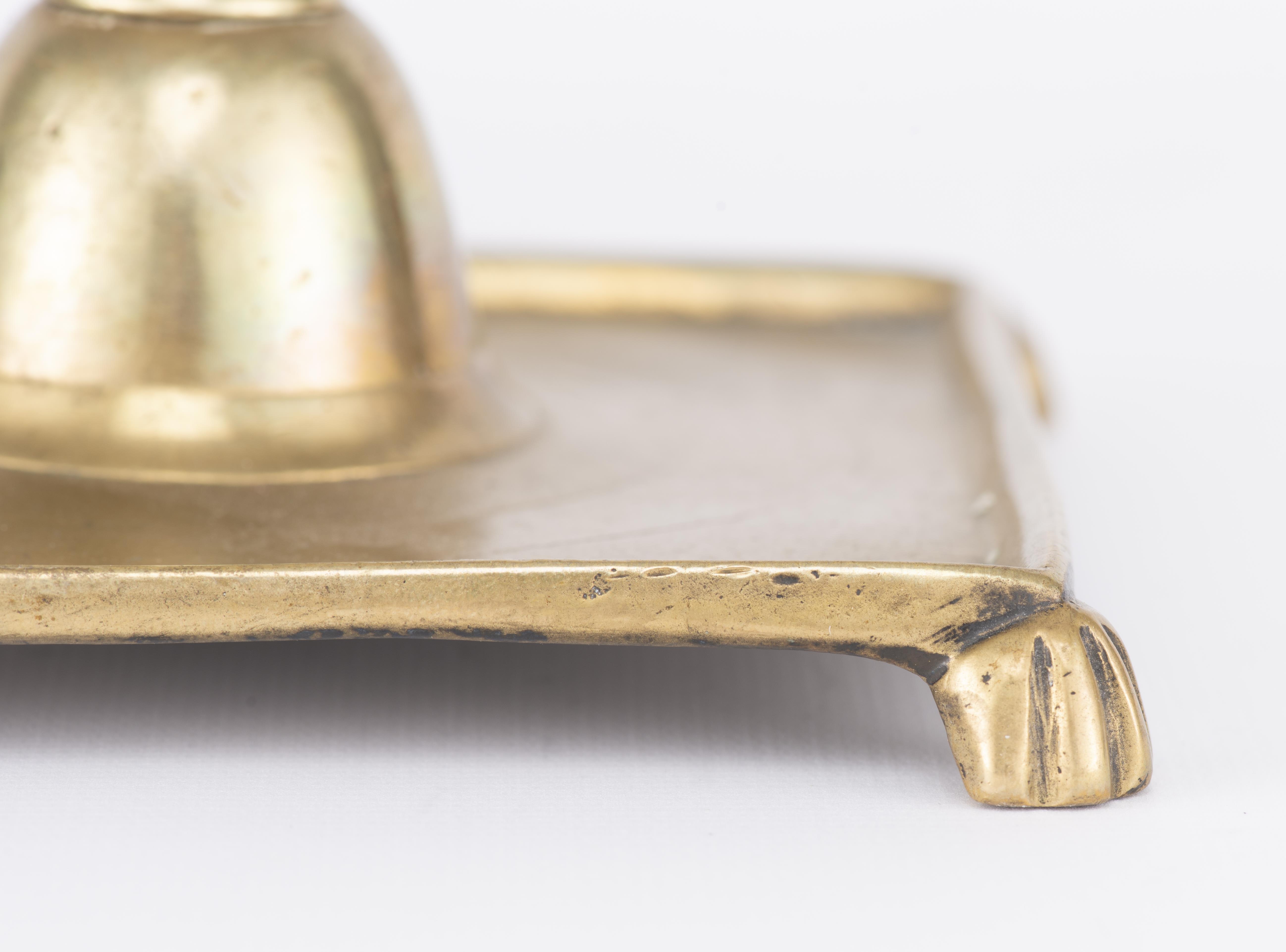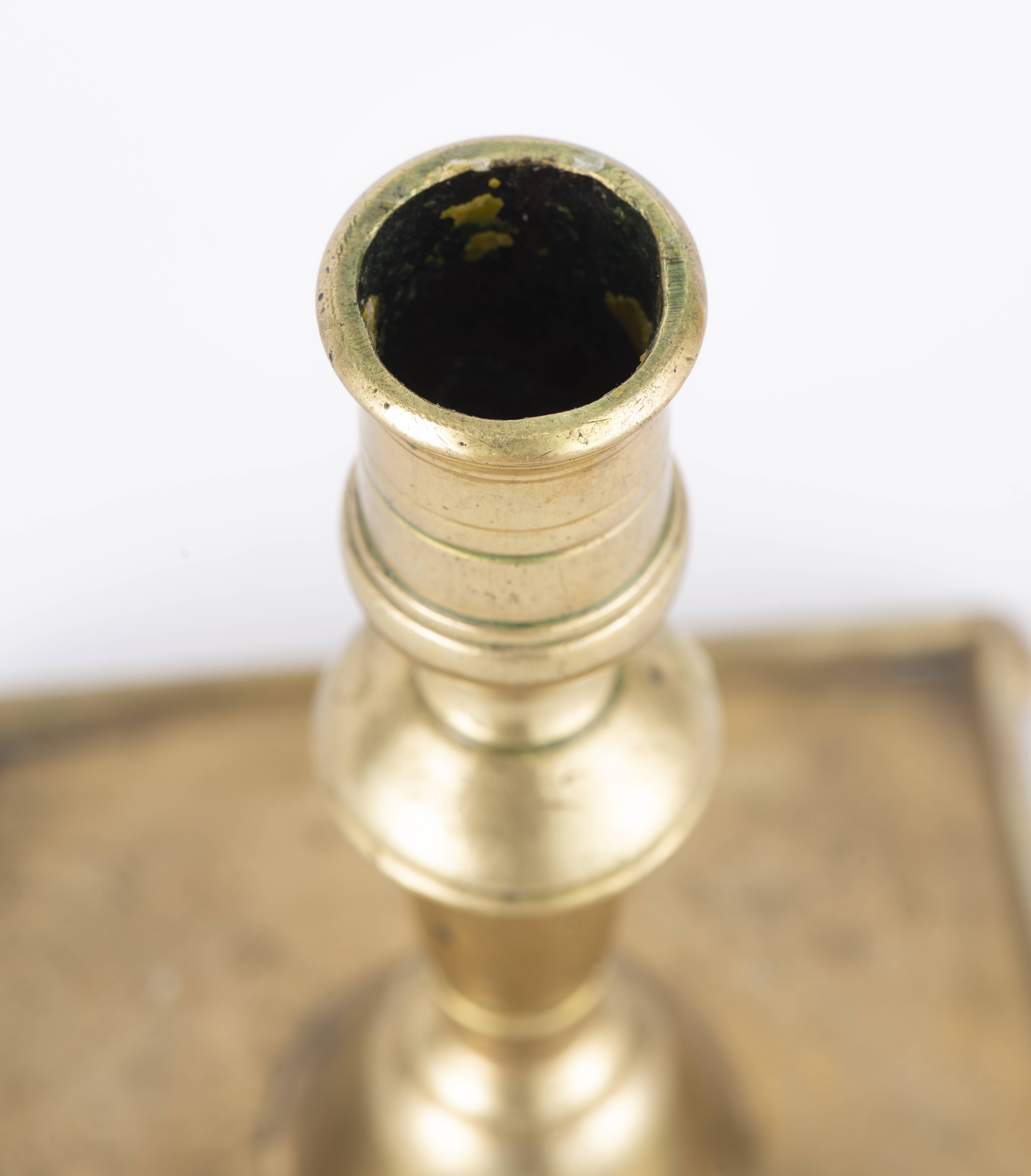 Bougeoir en bronze Haute époque à base carrée surmontée par quatre pieds griffes stylisés. XVIIe.