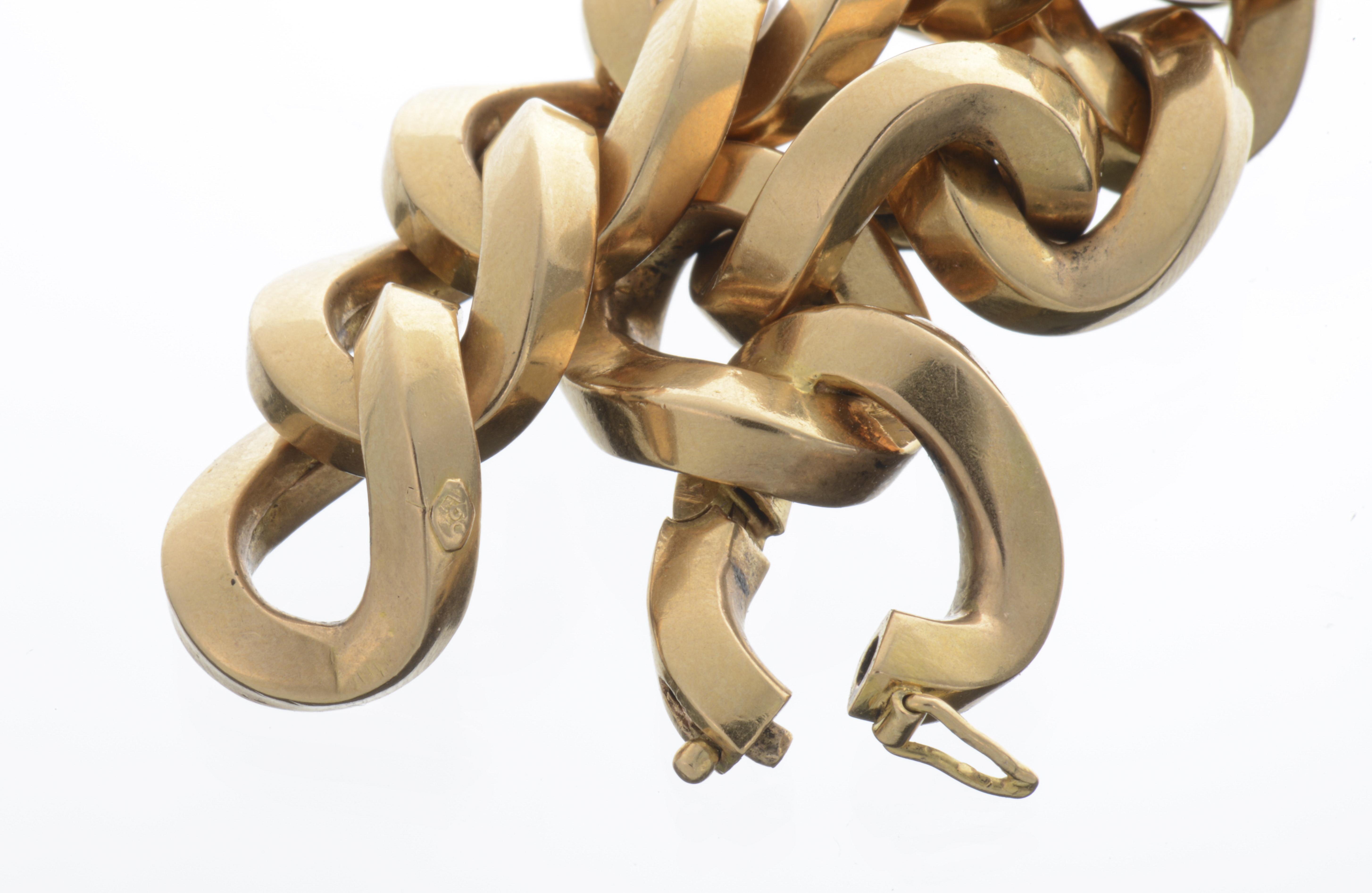 Bracelet gourmette ouverte en or jaune .750 à maillon ovale torsadé à section carrée.