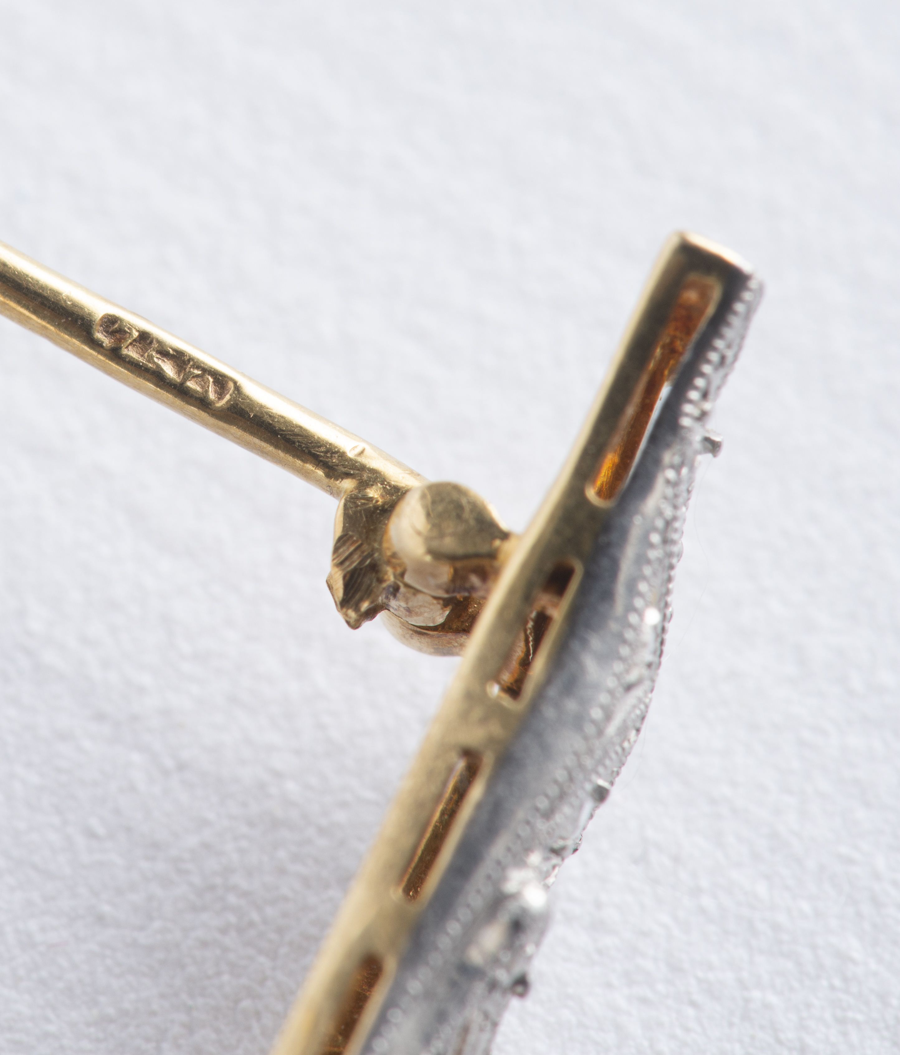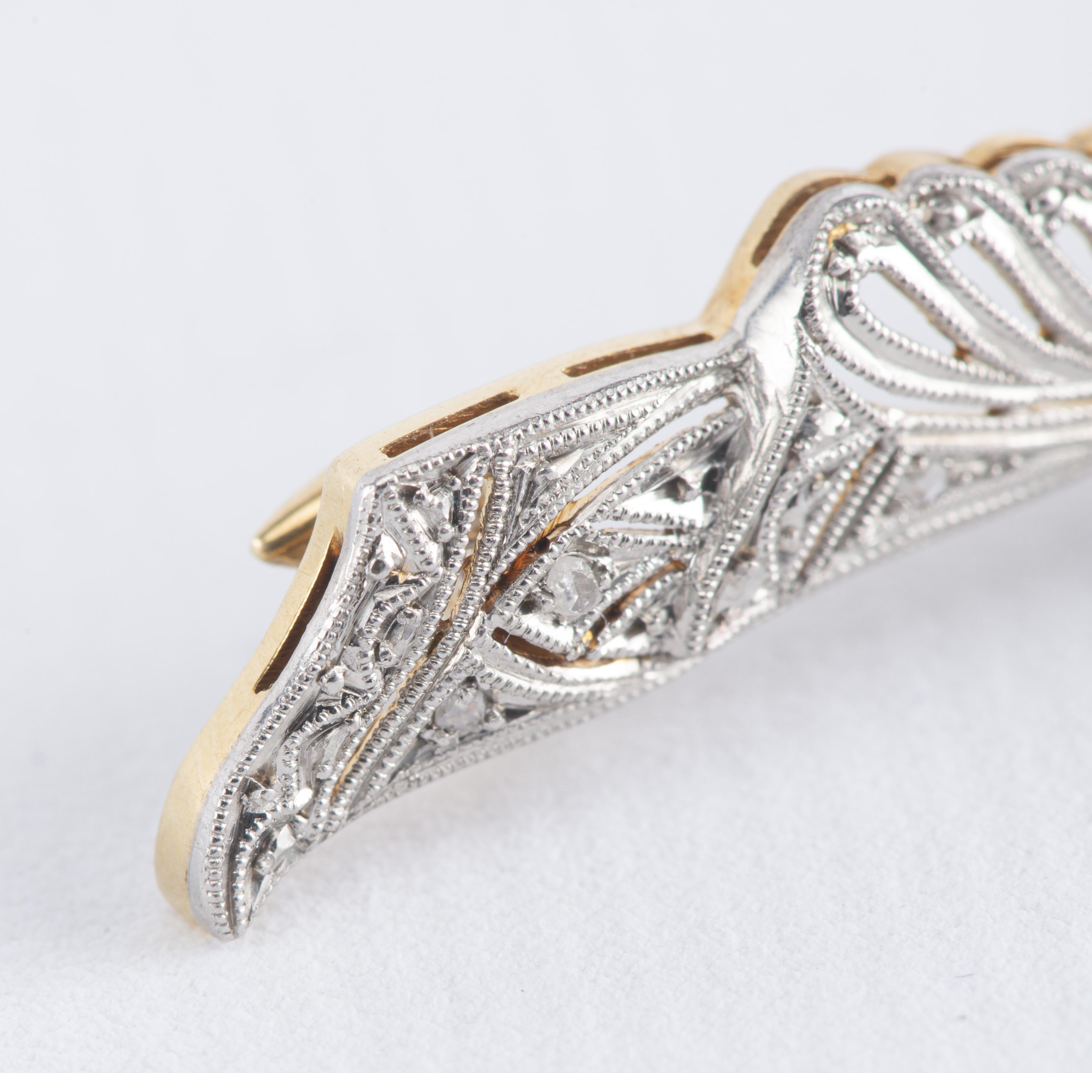 Broche nœud Art nouveau en or jaune .750 avec 6 diamants de taille rose pour 0.06 ct.