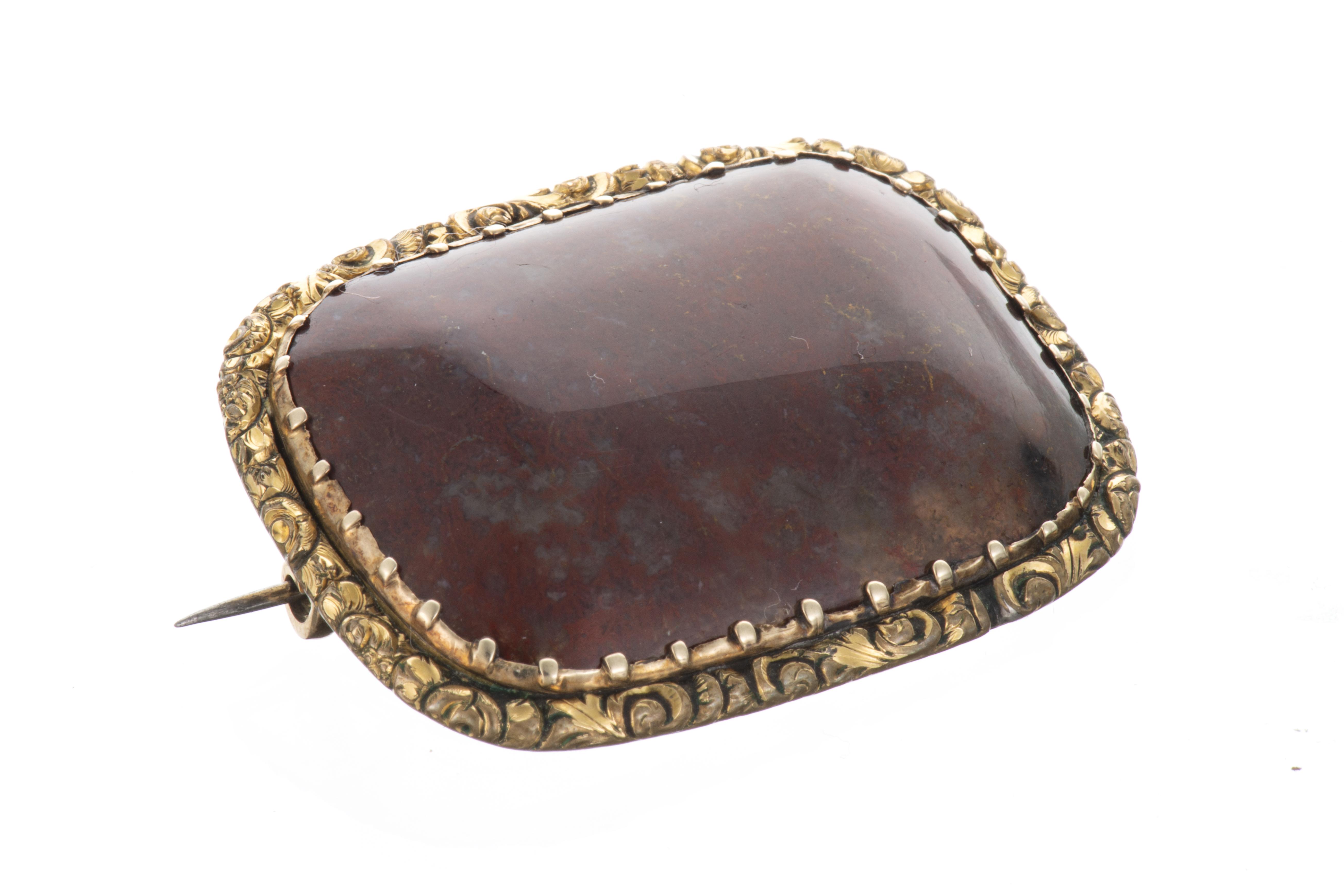 Broche-pendentif victorienne en or jaune avec une agate Moss coussin cabochon